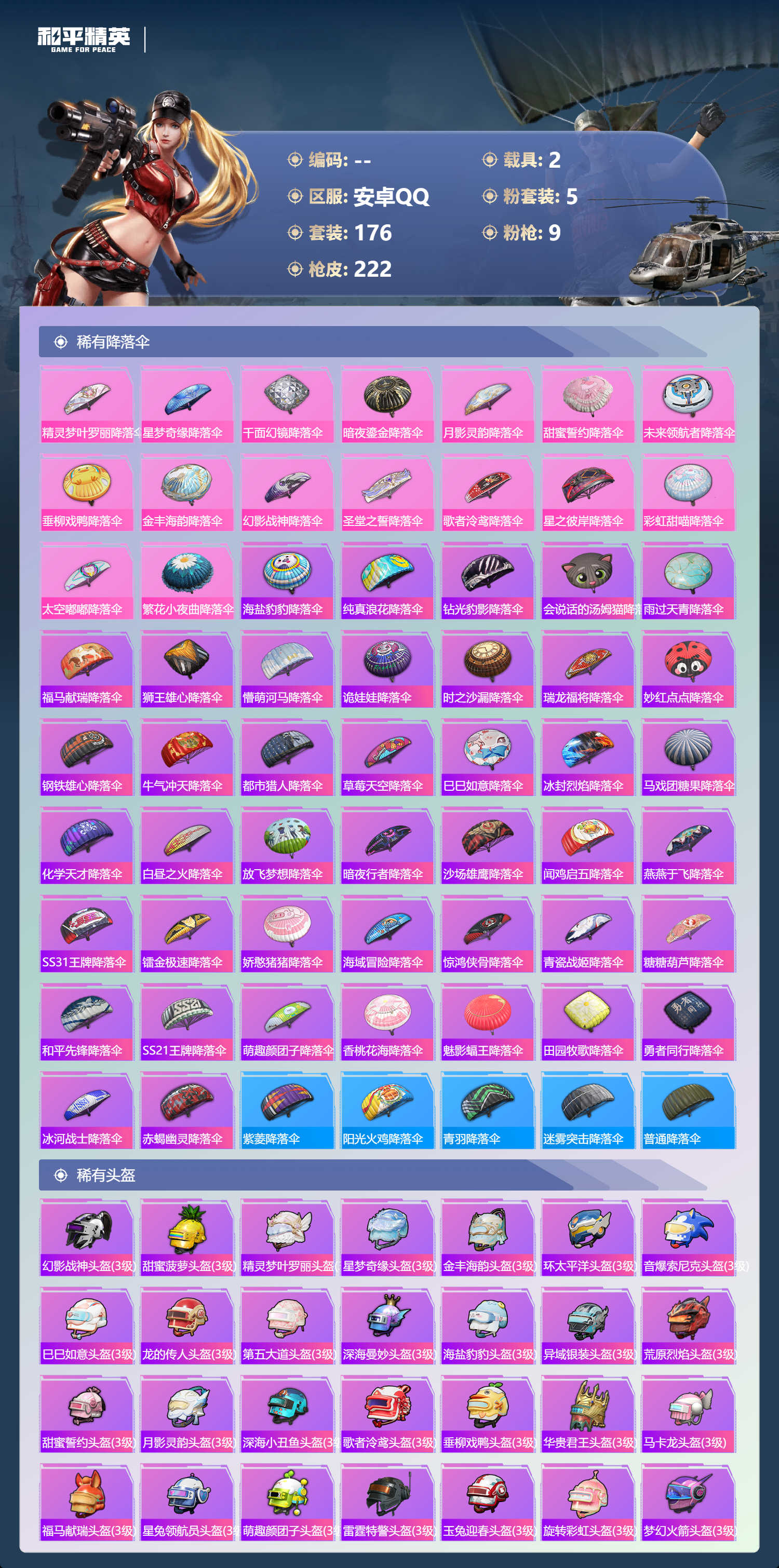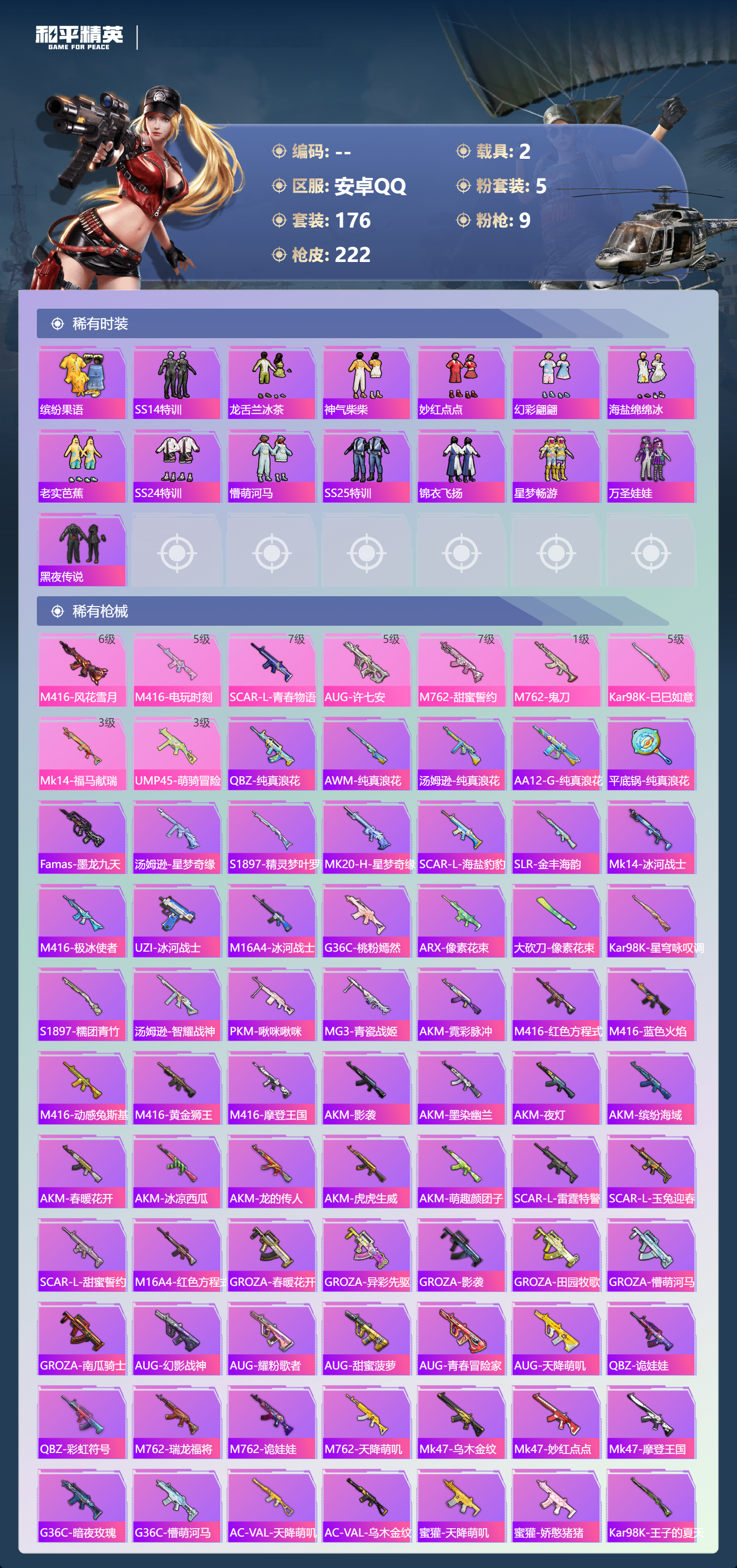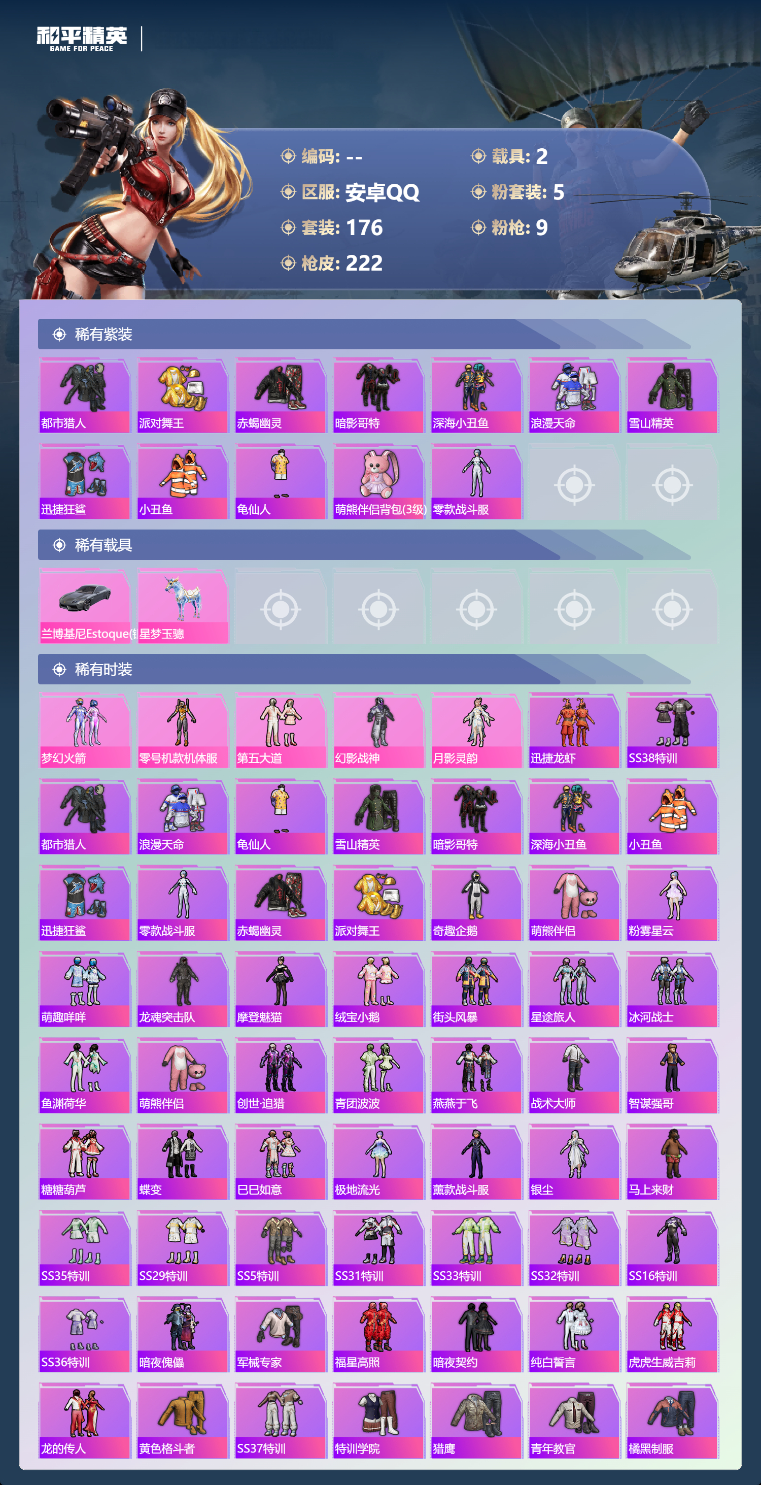 PX_2546020-,安卓手Q-3王牌印记-5粉装-9特效枪-2载具-72391热力值-176套装-222枪皮