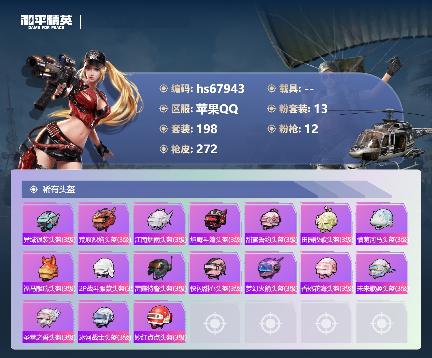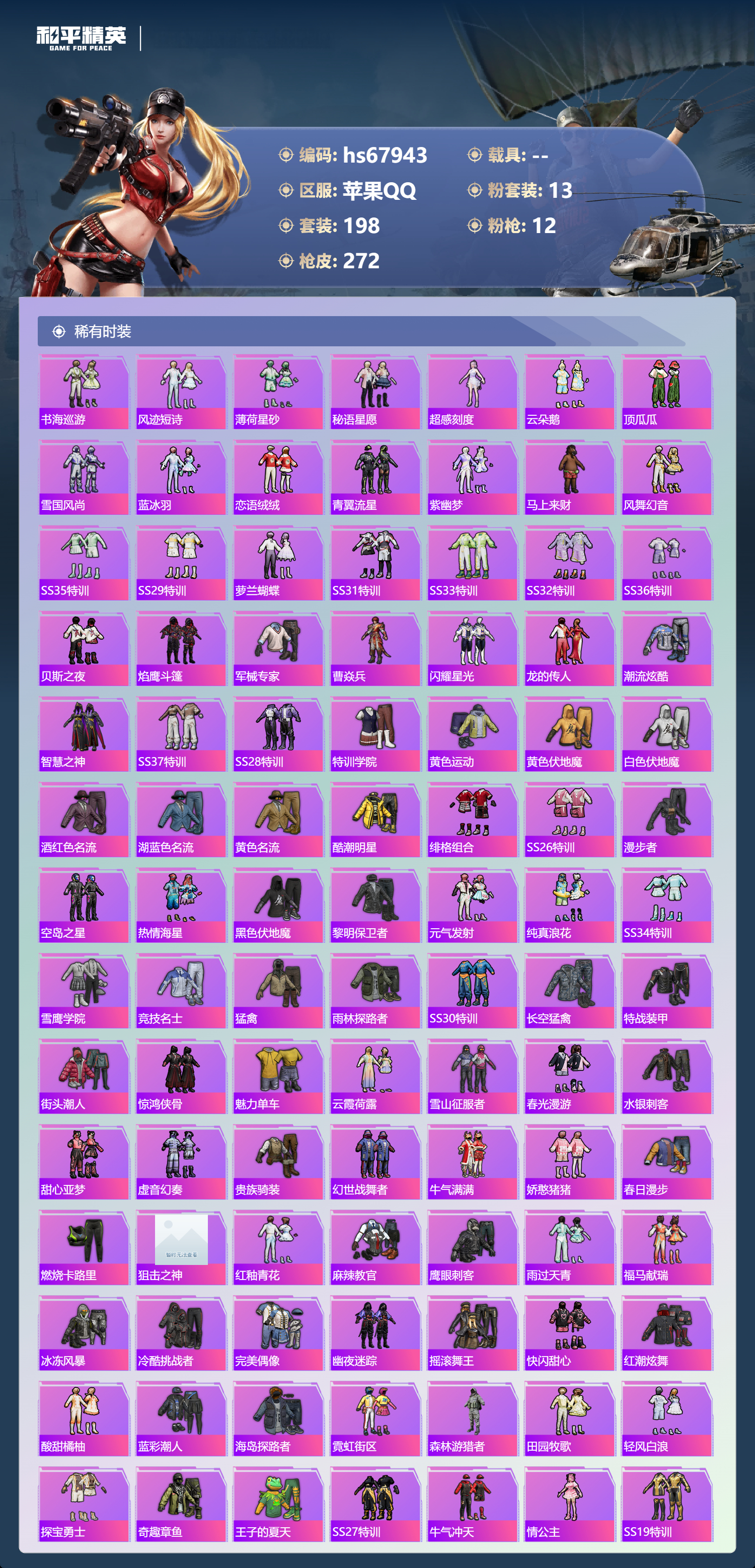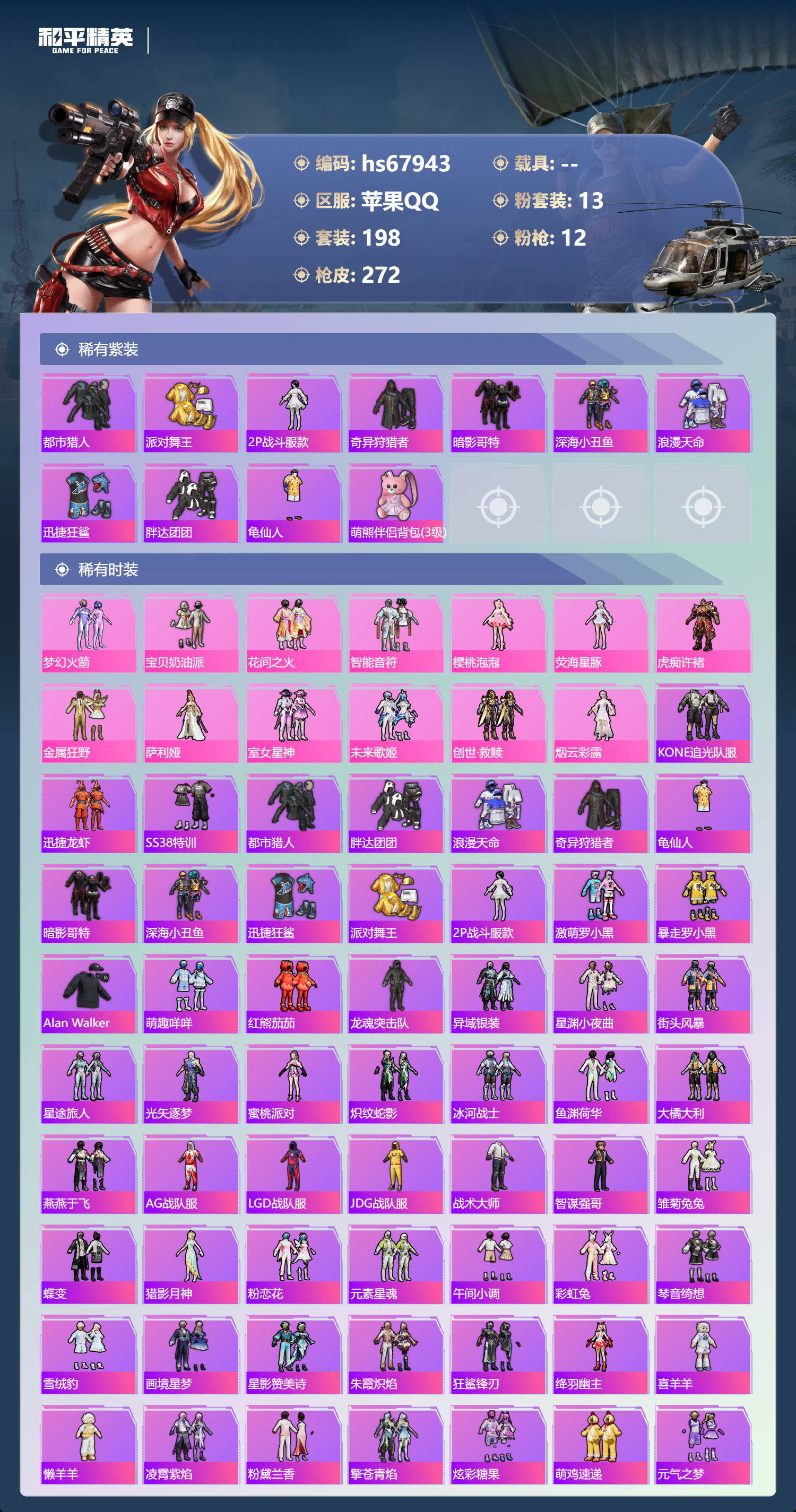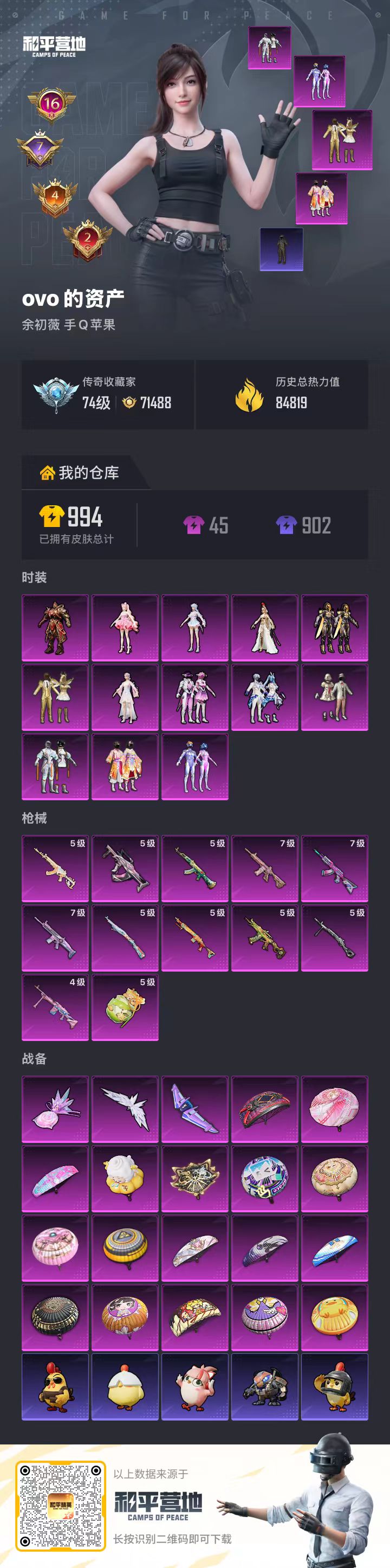 PX_2546767-,苹果手Q-16王牌印记-有战神框-13粉装-12特效枪-84819热力值-198套装-272枪皮-7卓越印记-4传奇印记