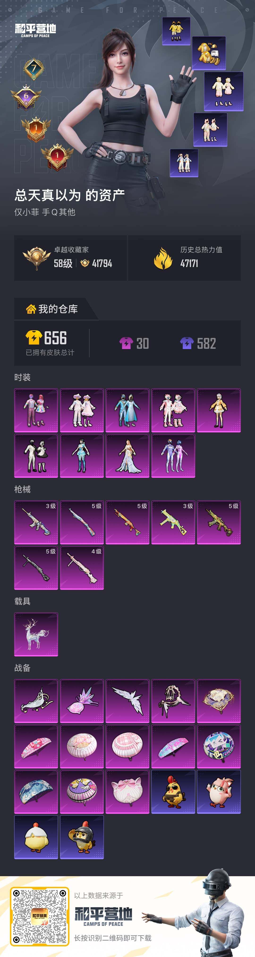 PX_2560599-不可二次-安卓Q-4稀有1载具9粉装7特效枪11热门【极品公主萌妹号,3级M4灵猫,雪国,火箭少女,小狐,星月云朵,呆萌,彩虹糖,金鞋,糯粉咩咩,小黄鸭,浅蓝色牛仔衬衣,兔兔白日梦,粉团憨憨,萌趣绒叽,晶辉守护,暖暖麦兜,顽皮橙,枫露凝珀,红眼罩,天命,菠萝头,千金淑猫背包头盔,9款飞行器】143套装172枪皮,47171热力值,7印记,历史卓越王牌16星,【4稀有】,AKM-缤纷海域,浪漫天命,派对舞王,派对舞王(金靴子),【1载具】,九霄玄鹿,【9粉装】,梦幻火箭,雪国幻梦,天使彩虹糖,异瞳寒姬,呆萌星弥,智耀战神,星月云朵,冰川幽秘,甜梦小狐,【7特效枪】,M416-灵猫魔法师,(3级),AKS-74U-森灵之息,(5级),Kar98K-巳巳如意,(5级),DP-28-千金淑猫,(4级),DP-28-豹影疾电,(5级),Mk14-福马献瑞,(5级),UMP45-萌骑冒险,(3级),【11热门】,潮萌小黄鸭,晶辉守护,糯粉咩咩,鹰眼刺客,兔兔白日梦,奶芙汪汪,恶魔喵喵,暗影哥特,漫步者,破蛋小黄鸡,极速红龙,【1飞行器】,镜光幻境飞行翼,【1头盔】,雪国精灵头盔,【3背包】,梦幻火箭背包,雪国精灵背包,深海小丑鱼背包,营地ID:975610583