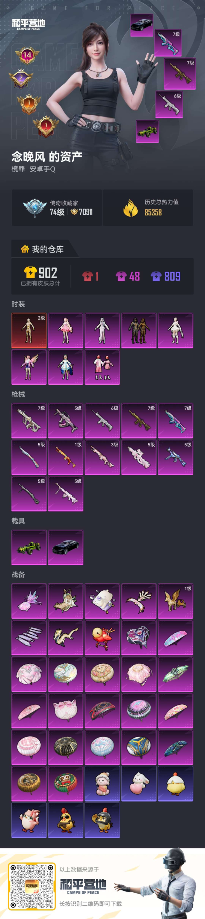 PX_2560771-2载具-167套装-264枪皮-1红装2载具7粉装12特效枪12热门167套装264枪皮,85358热力值,14印记,历史绝世王牌19星,【1红装】,沙丘之主-图卡盟,(2级),【2载具】,玛莎拉蒂Q蓝色,合金龙骨绿色,【7粉装】,脉冲星,千金淑猫,洛天依,樱桃泡泡,冷漠罗丽,飒粉甜心,繁龙极客,【12特效枪】,M416-五爪金龙,(7级),SCAR-L-纯梦嫁纱,(6级),P90-冷漠罗丽,(5级),Kar98K-巳巳如意,(5级),DP-28-豹影疾电,(5级),AUG-许七安,(7级),PKM-江南烟雨,(5级),UMP45-量子极限,(5级),Mk14-盛世惊鸿,(3级),GROZA-镜光银凌,(5级),AKM-梦之光华,(7级),Mk14-福马献瑞,(1级),【12热门】,龟仙人,雪山精英,梦魇先生,绯红秘境,浪漫波比,金羽特工,团圆交子,瑞龙福将,军刀雅典娜,M762-奇异狩猎者,M762-瑞龙福将,M24-奇异狩猎者,【3飞行器】,绝色倾城飞行器,黄族统领飞行器,歌者泠鸢飞行器,营地ID: