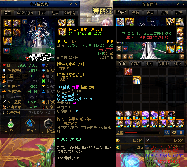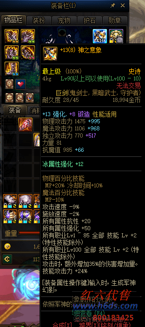 D10006.跨3B西南一区.+13武器全身红10多套时装希洛克红队宗妹,小号双12武器剑豪,满级*11( 二手号) 999R