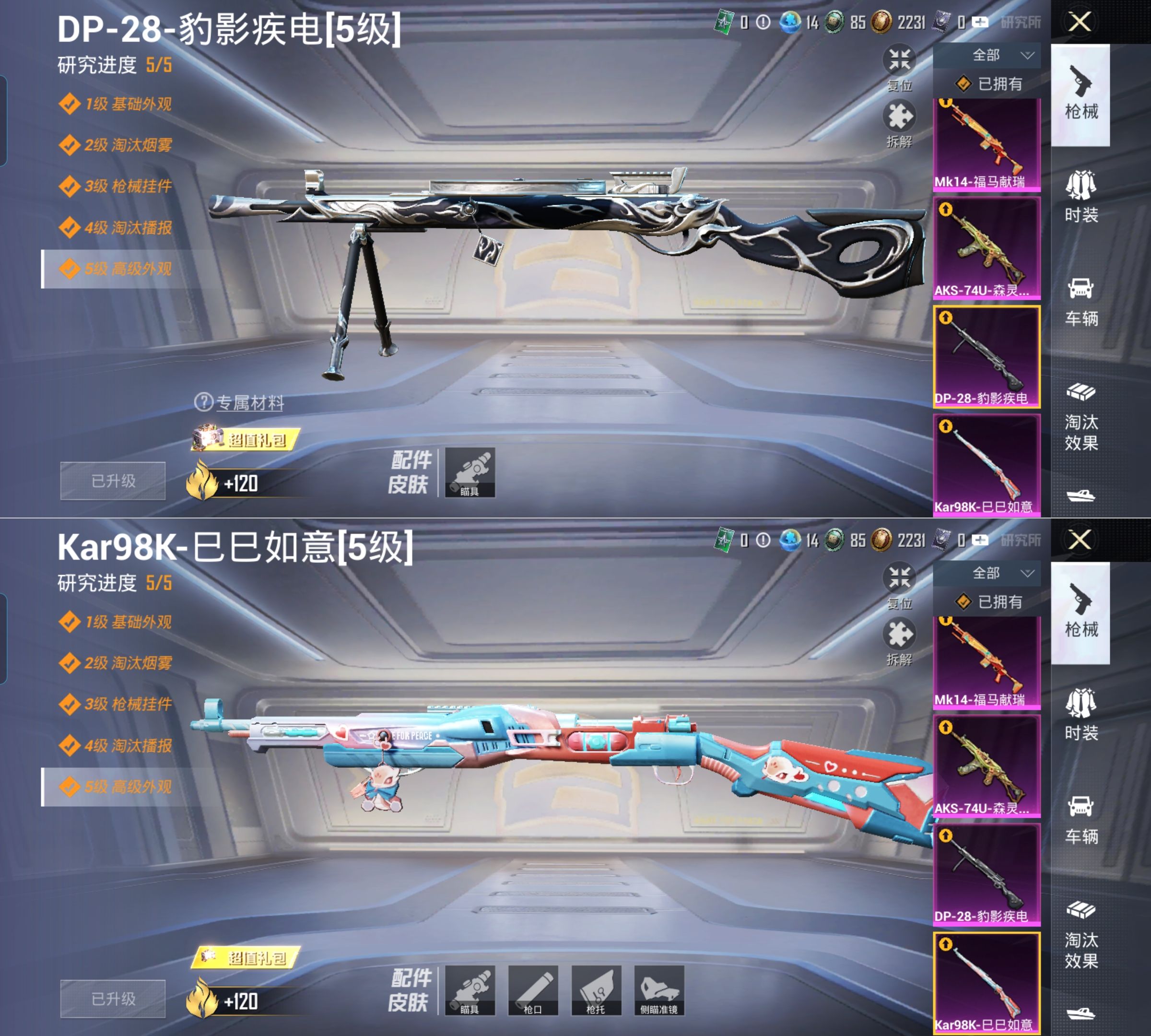 PX_2559213-款身法号1粉装-6特效枪暗影哥特,深海小丑鱼,都市猎人,浪漫天命】安卓手Q-1粉装-6特效枪-81套装-98枪皮-4王牌印记-荣耀皇冠Ⅴ-26745热力值【1粉装】星之彼岸【6特效枪】Kar98K-巳巳如意[5级],DP-28-豹影疾电[5级],AKS-74U-森灵之息[5级],Mk14-福马献瑞[5级],UMP45-萌骑冒险[2级],ACE32-萌骑漫游[4级]【4稀有】暗影哥特,深海