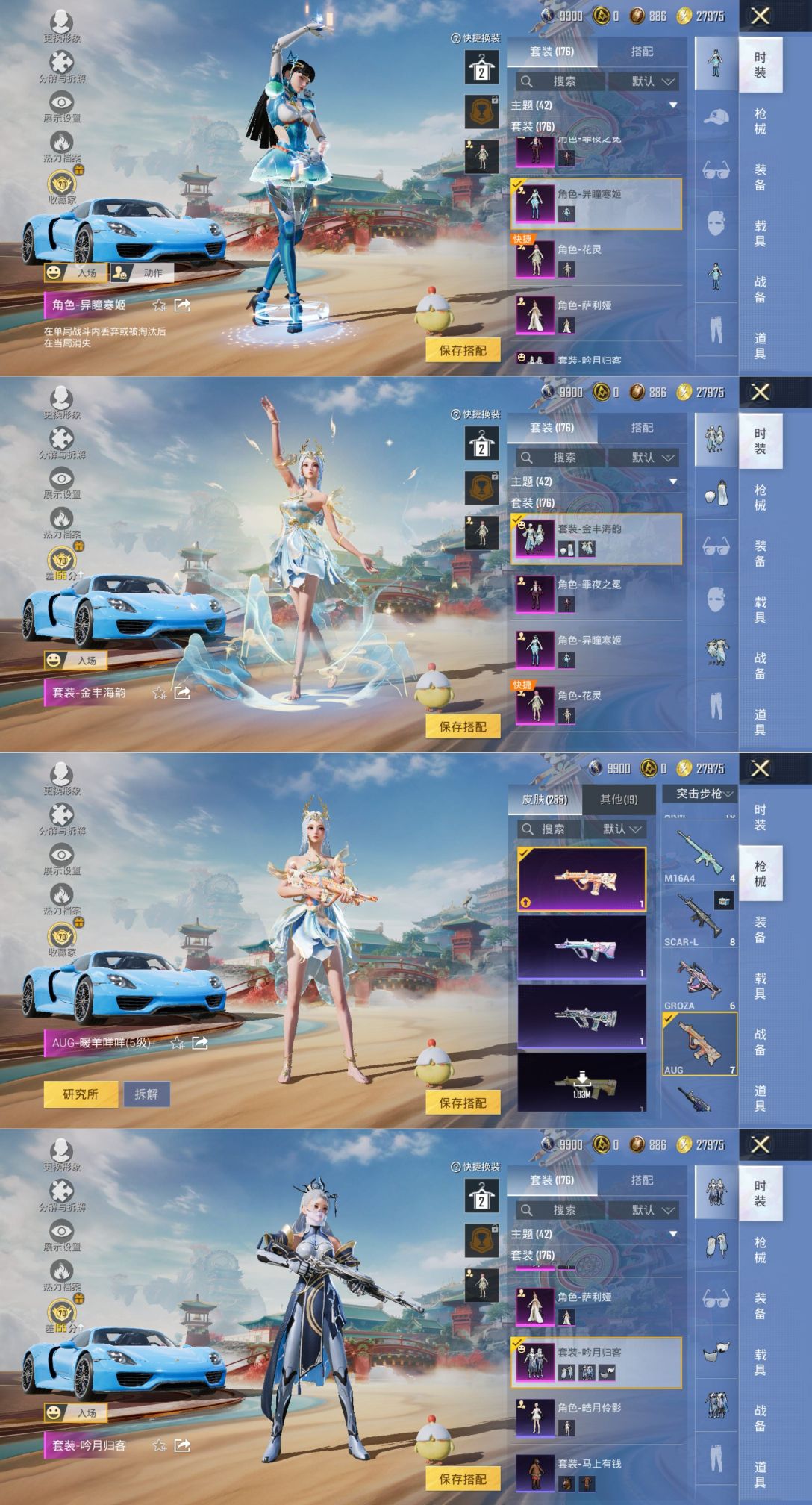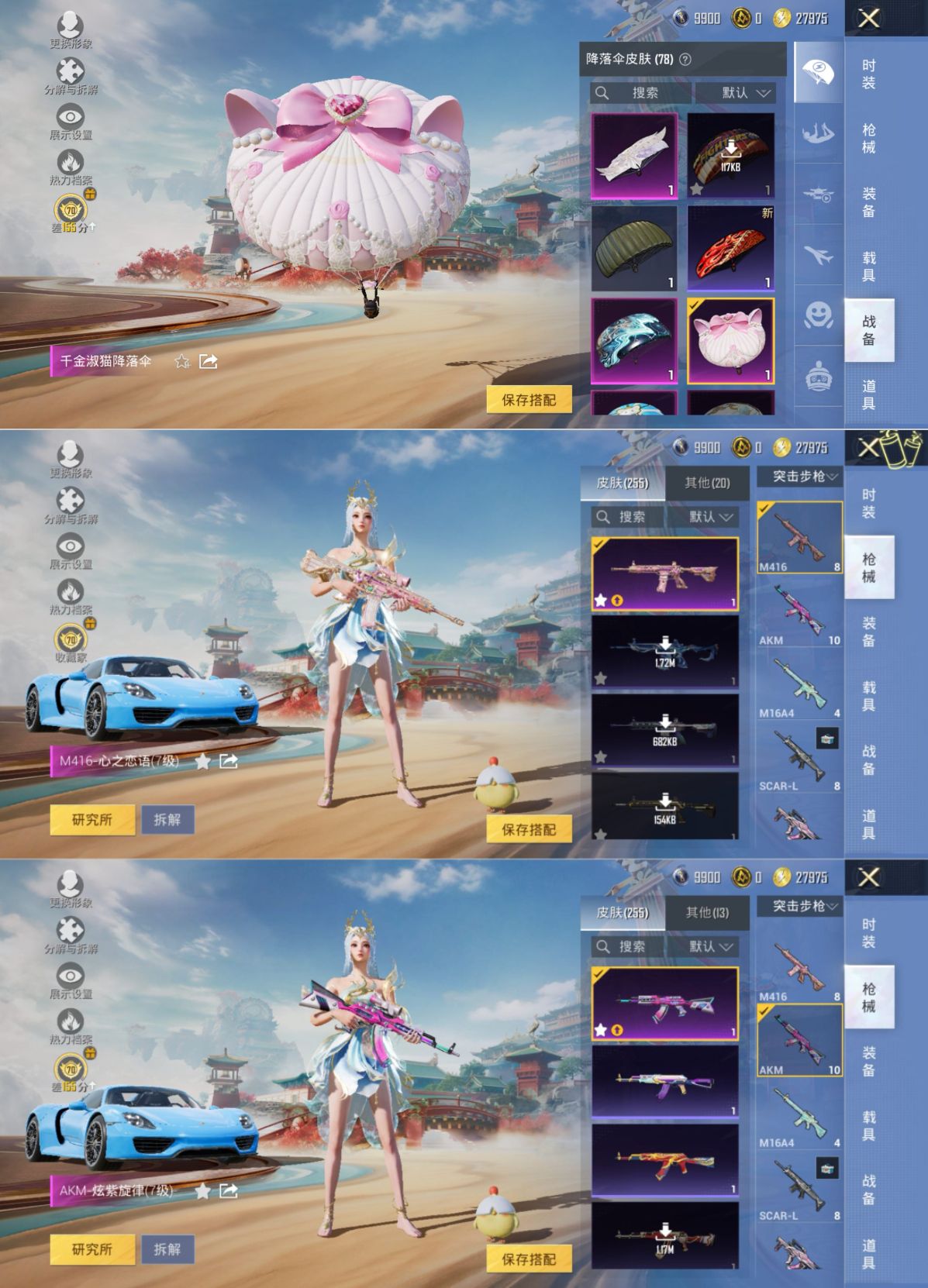 PX_2559212-载具-6粉装-13特效枪暗影哥特,浪漫天命,AKM-炫紫旋律[7级],M416-心之恋语[7级],AUG-暖羊咩咩[5级]】无二次安卓手Q-1载具-6粉装-13特效枪-176套装-255枪皮-11王牌印记-不朽星钻Ⅱ-79637热力值【1载具】保时捷918,Spyder(沉静蓝)【6粉装】角色-萨利娅,角色-花灵,角色-异瞳寒姬,吟月归客,金丰海韵,角色-罪夜之冕【13特效枪】ACE32