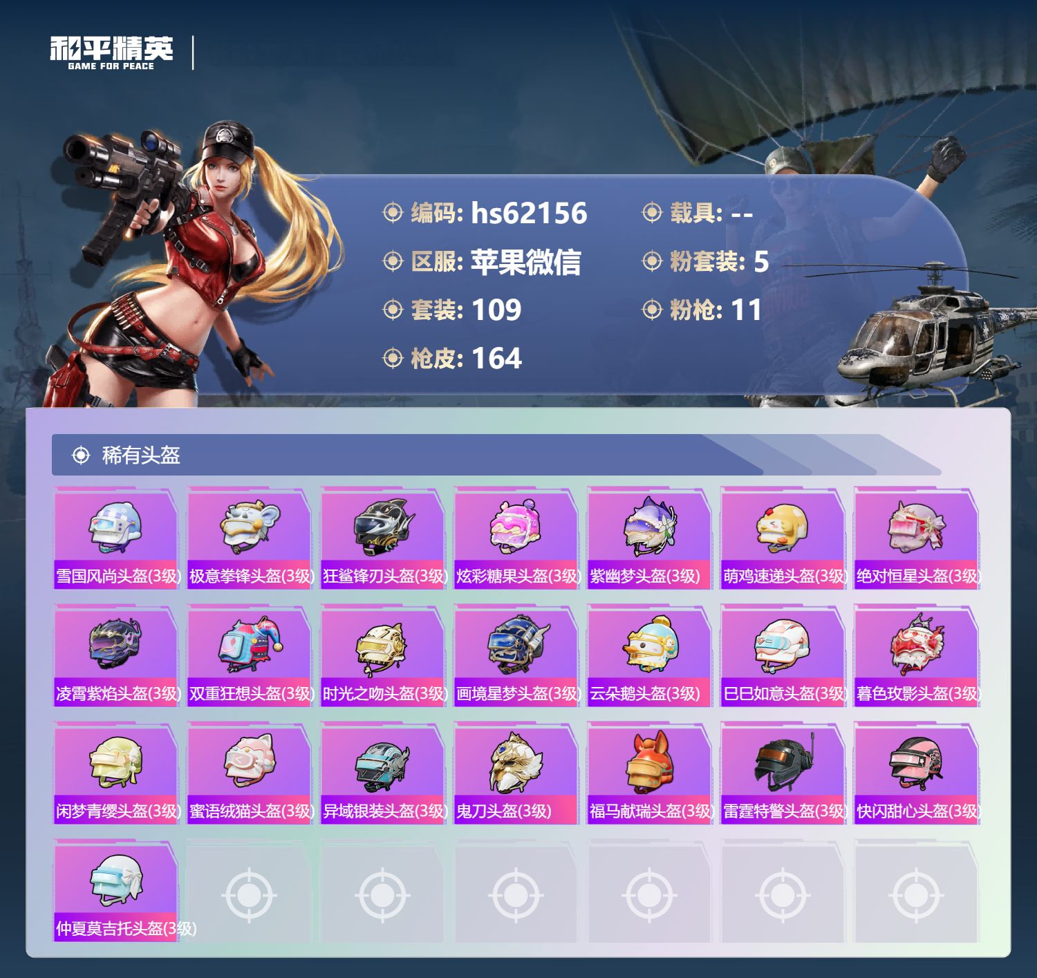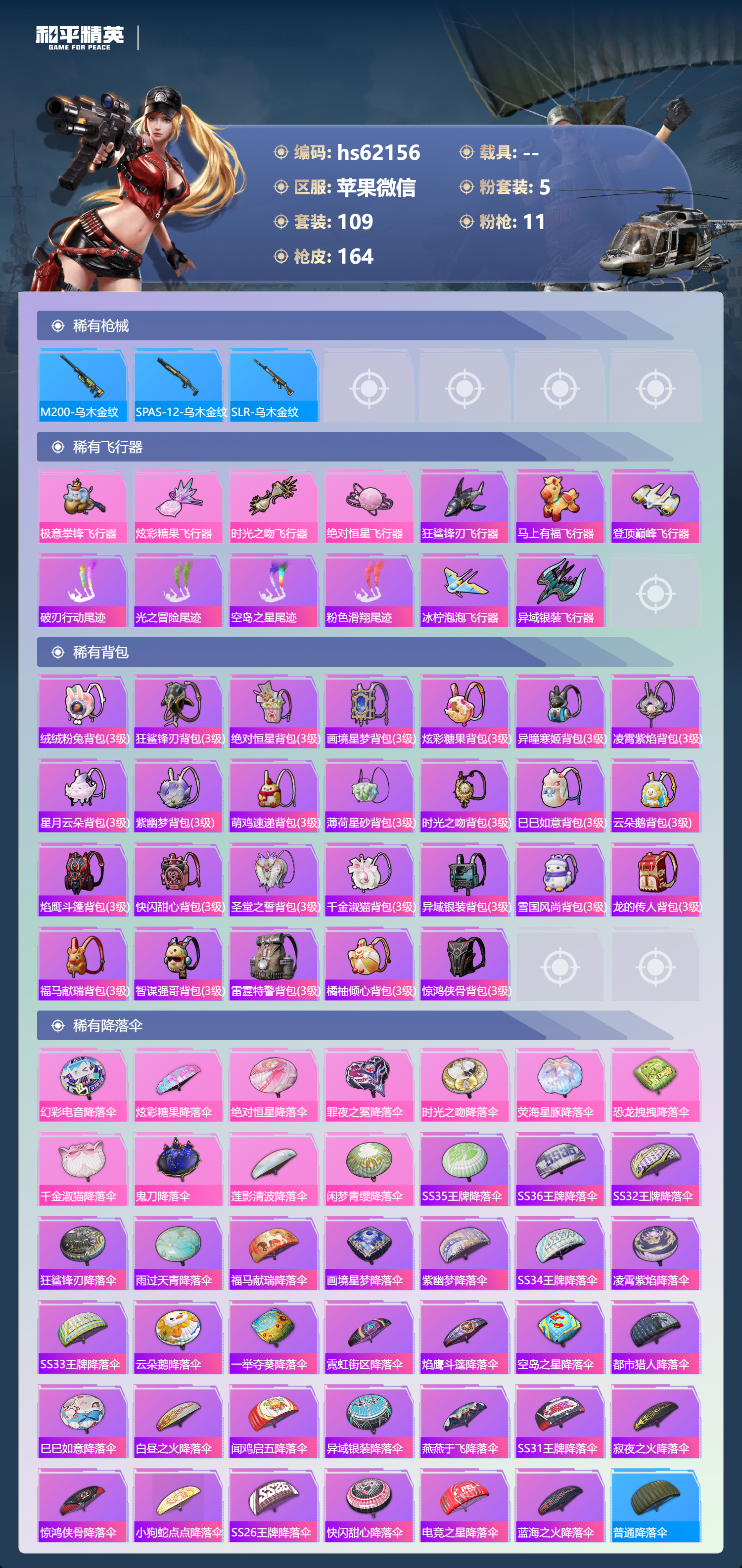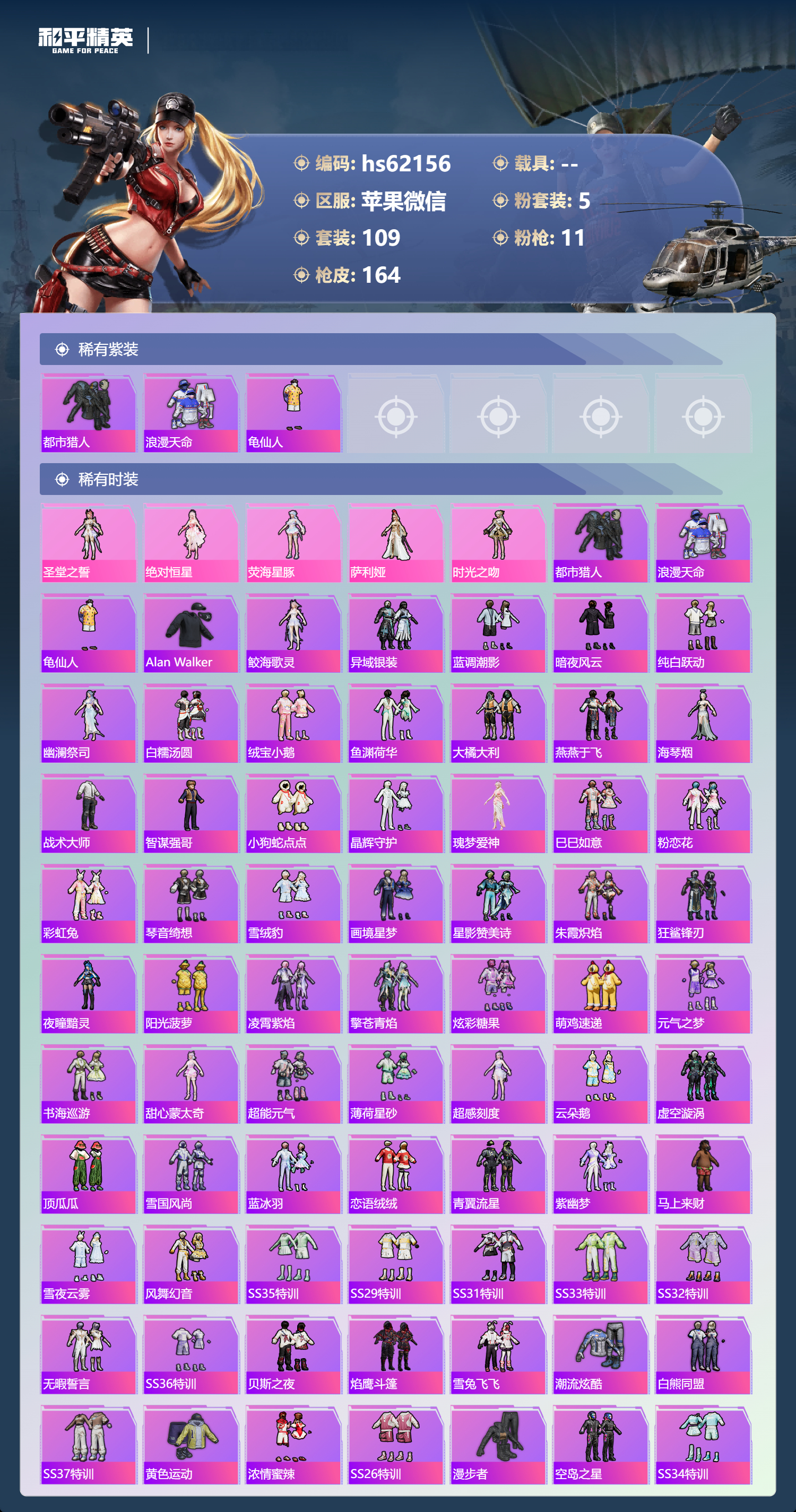 PX_2552929-,苹果微信-8王牌印记-5粉装-11特效枪-48583热力值-109套装-164枪皮-3卓越印记-2传奇印记
