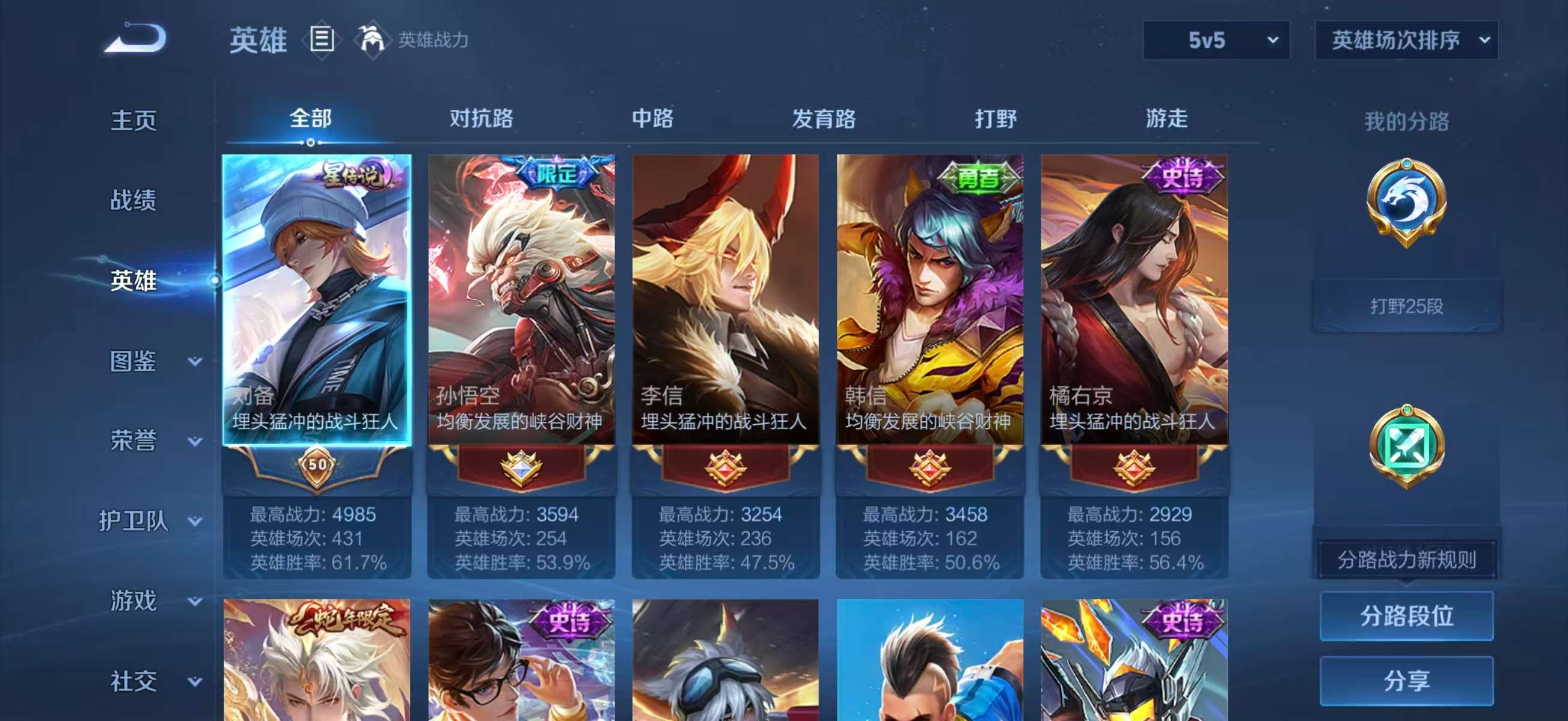【8,稀有英雄】嬴政,不知火舞,橘右京,夏洛特,娜可露露,韩信,艾琳,赵云,