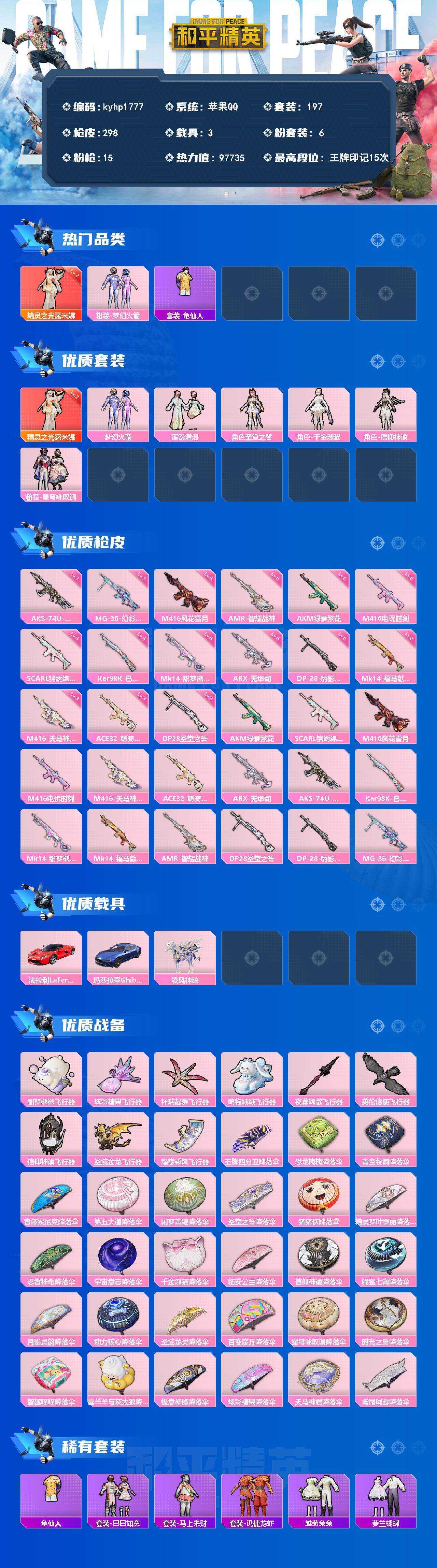 PX_2561671--1神装-6粉装-15特效枪-3载具-10粉色飞行器-97735热力值-15王牌印记-197套装-298枪皮