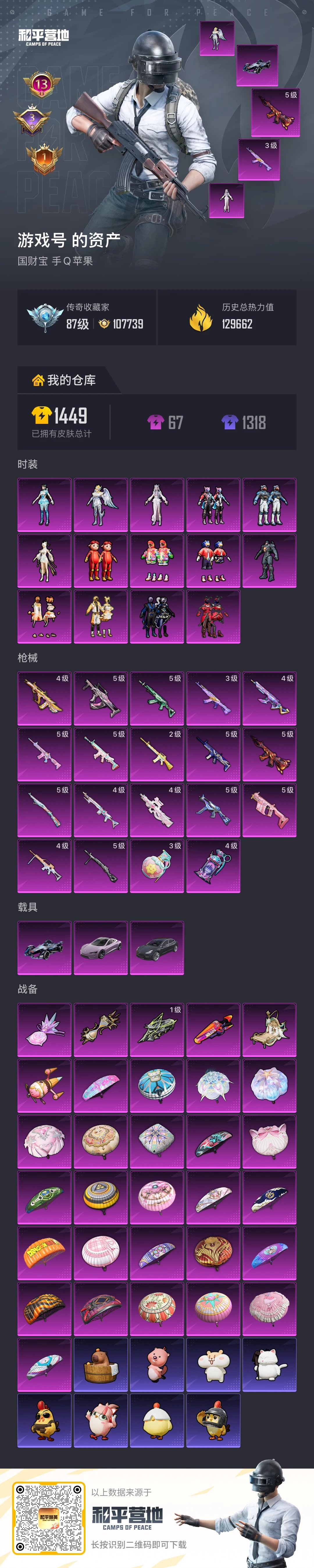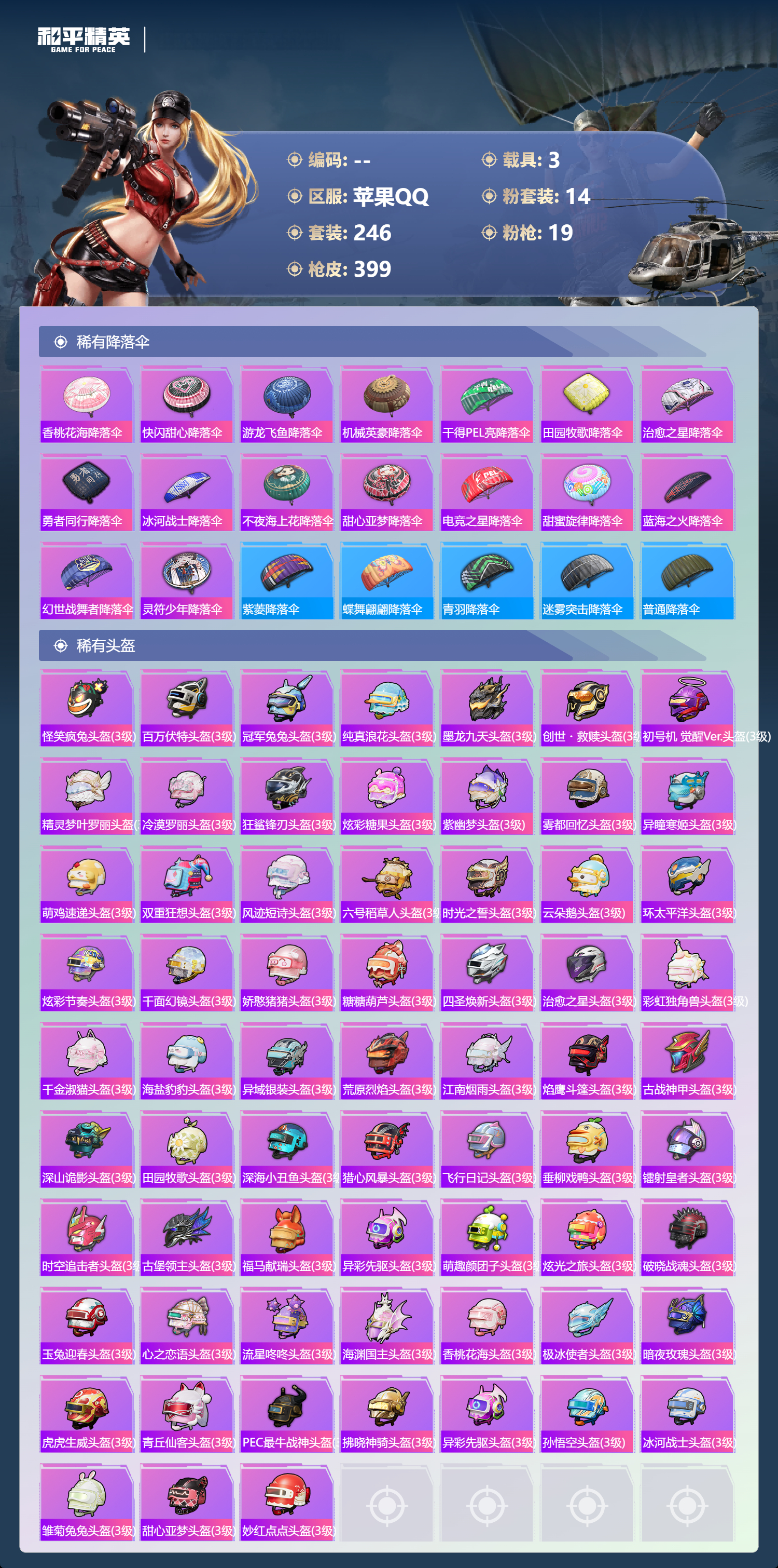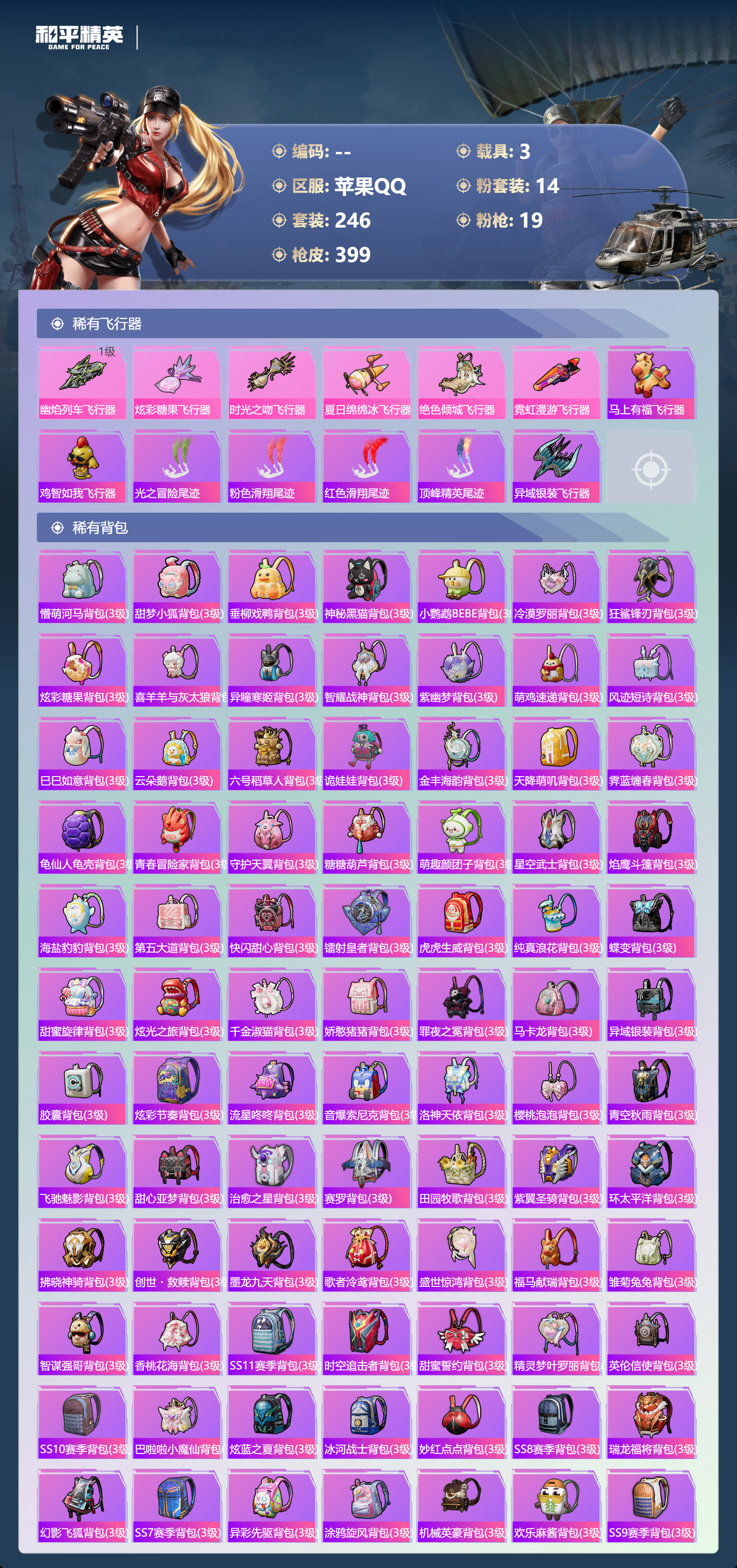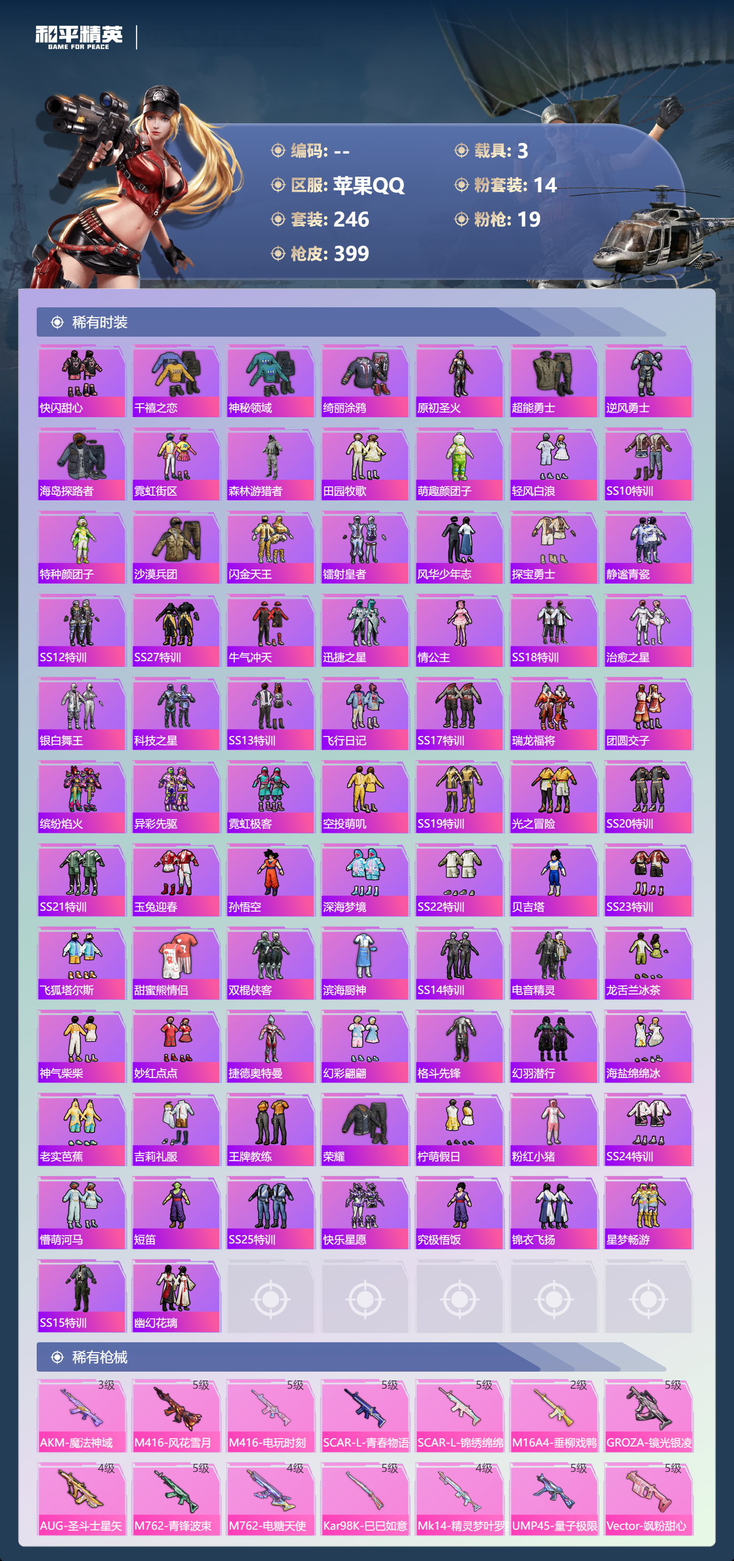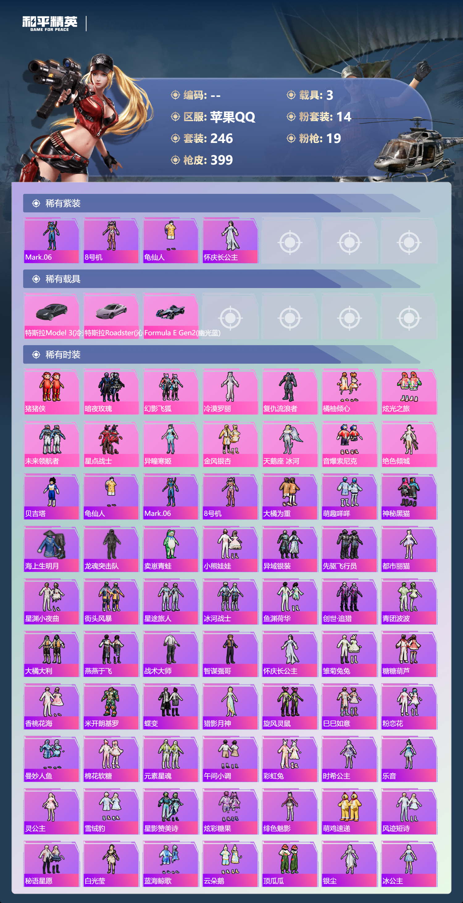 PX_2556557-,苹果手Q-13王牌印记-14粉装-19特效枪-3载具-热力值-246套装-399枪皮-3卓越印记-1传奇印记