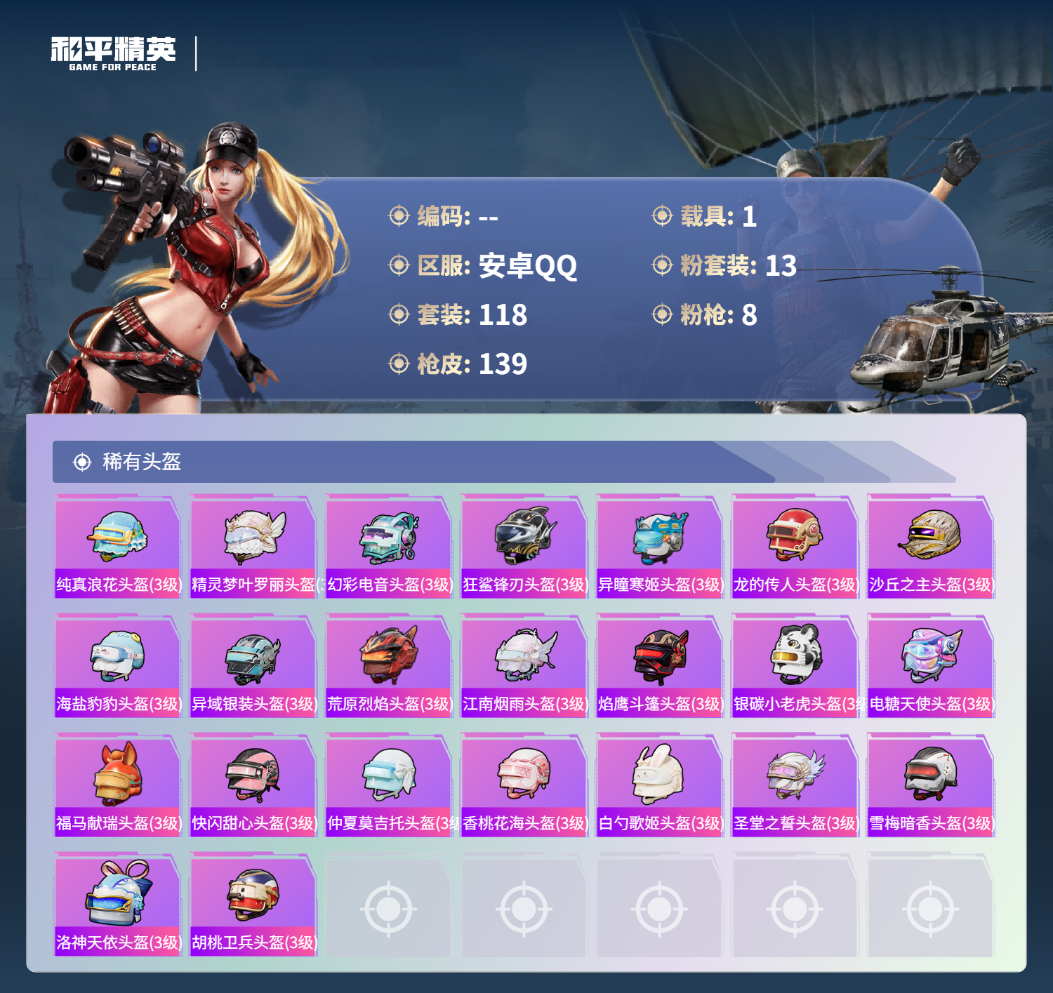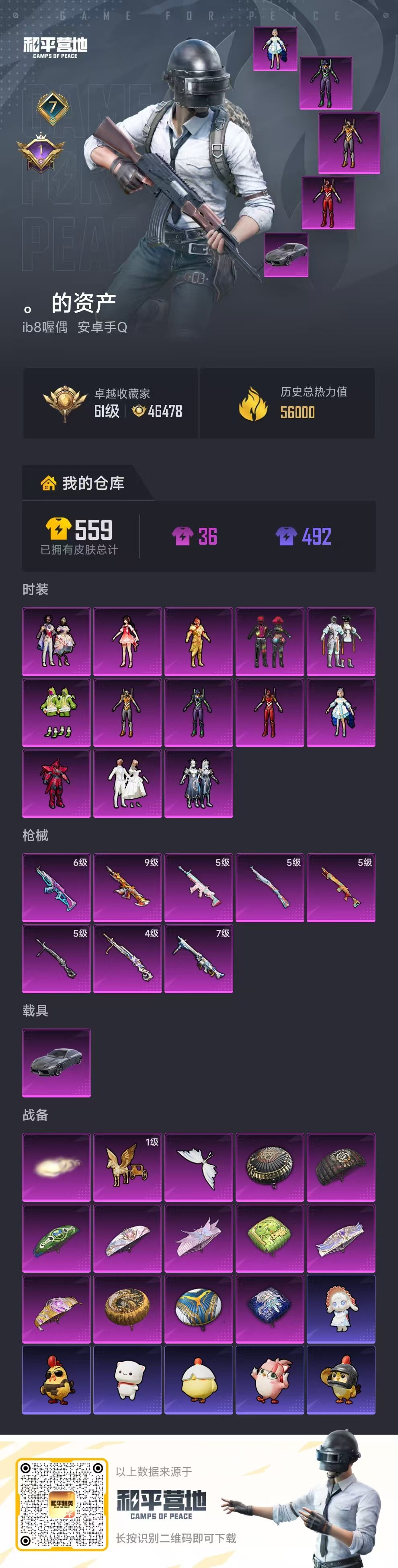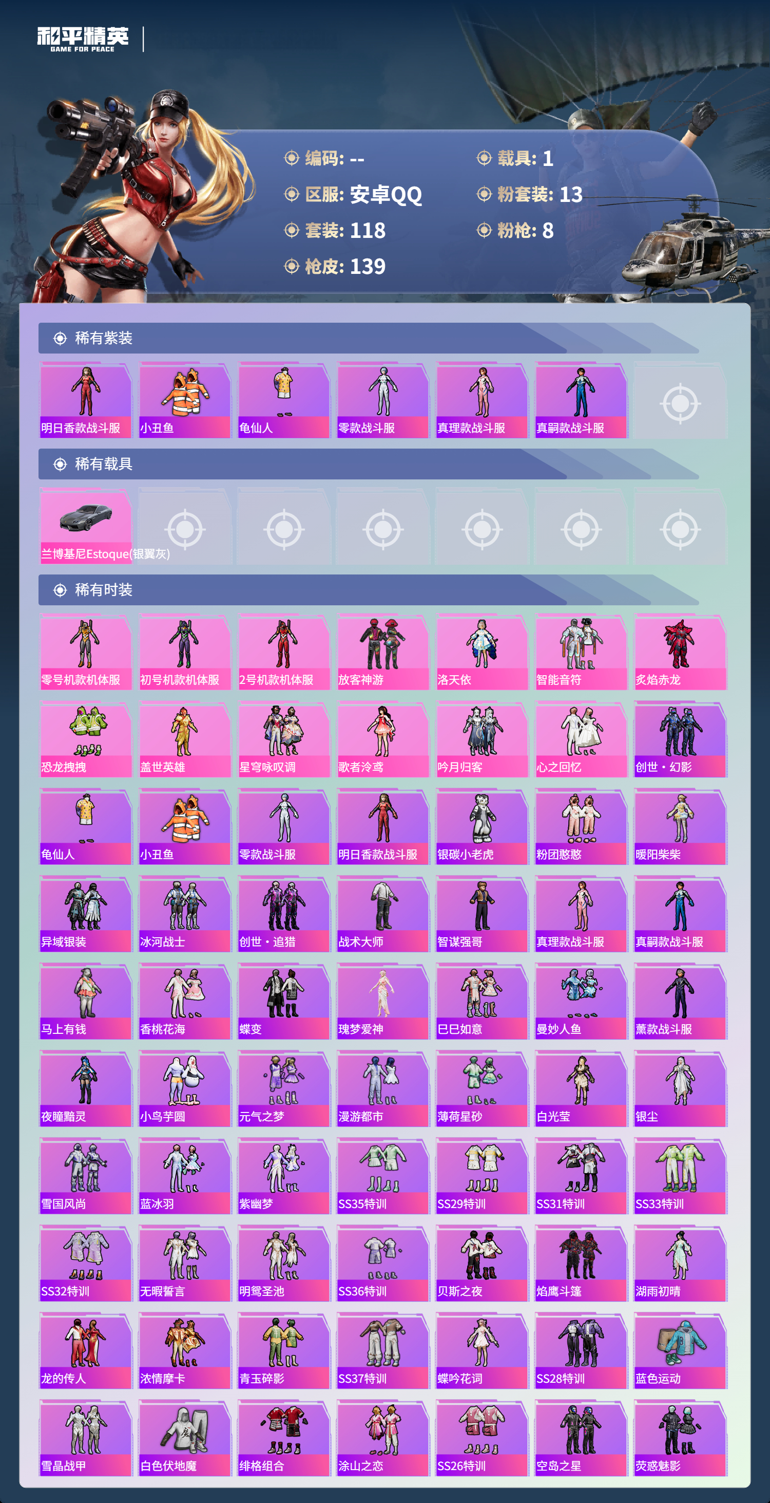 PX_2559678-,安卓手Q-7王牌印记-13粉装-8特效枪-1载具-56000热力值-118套装-139枪皮-1卓越印记