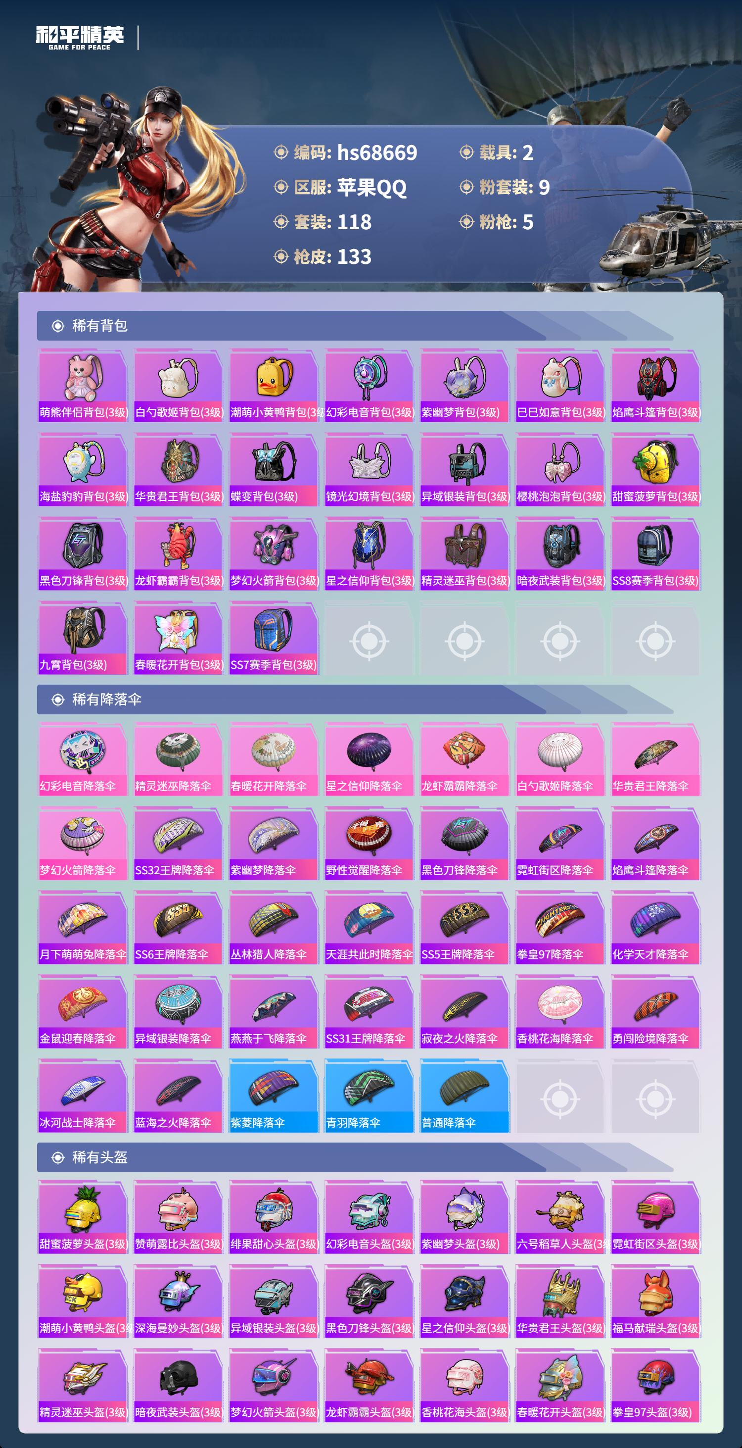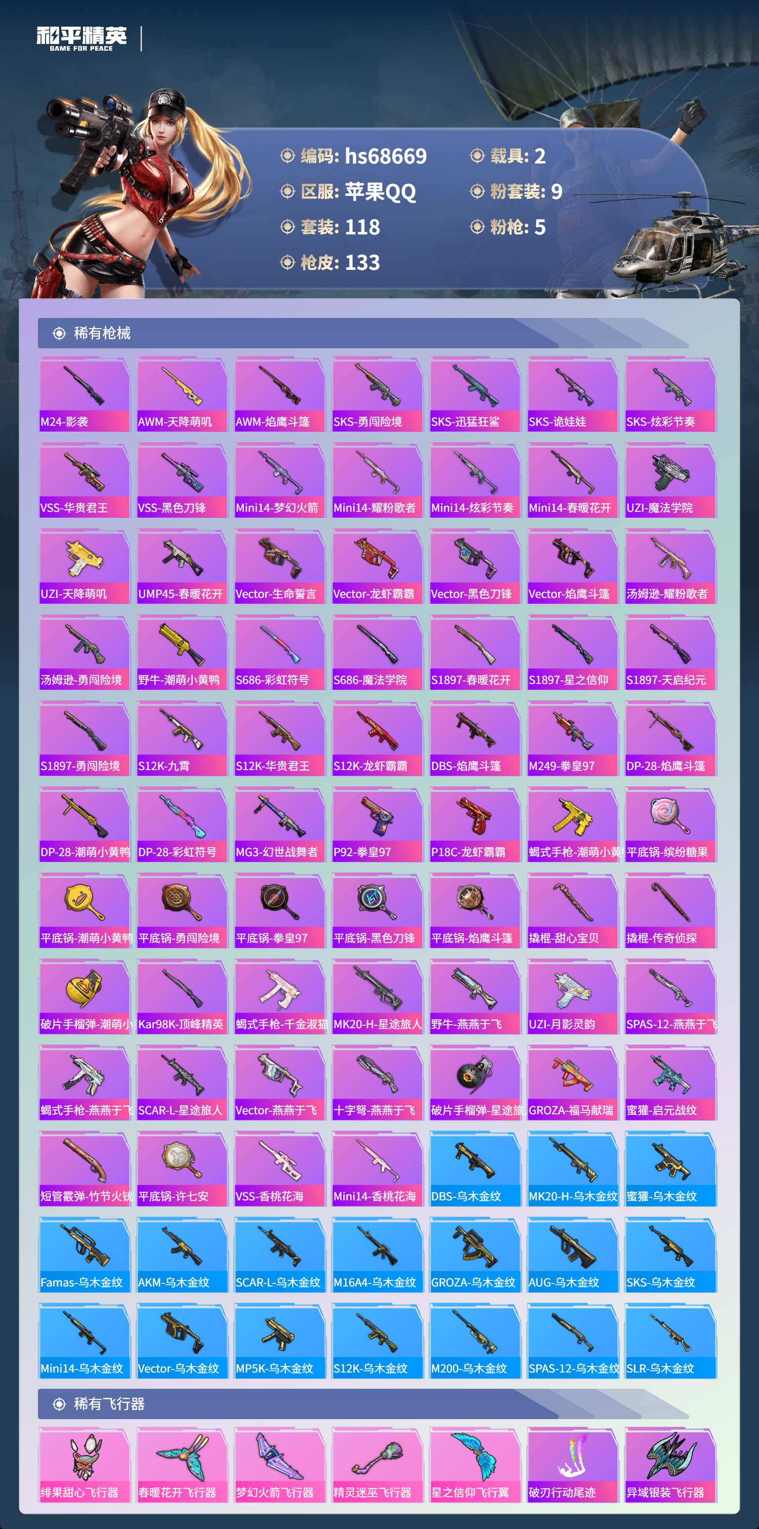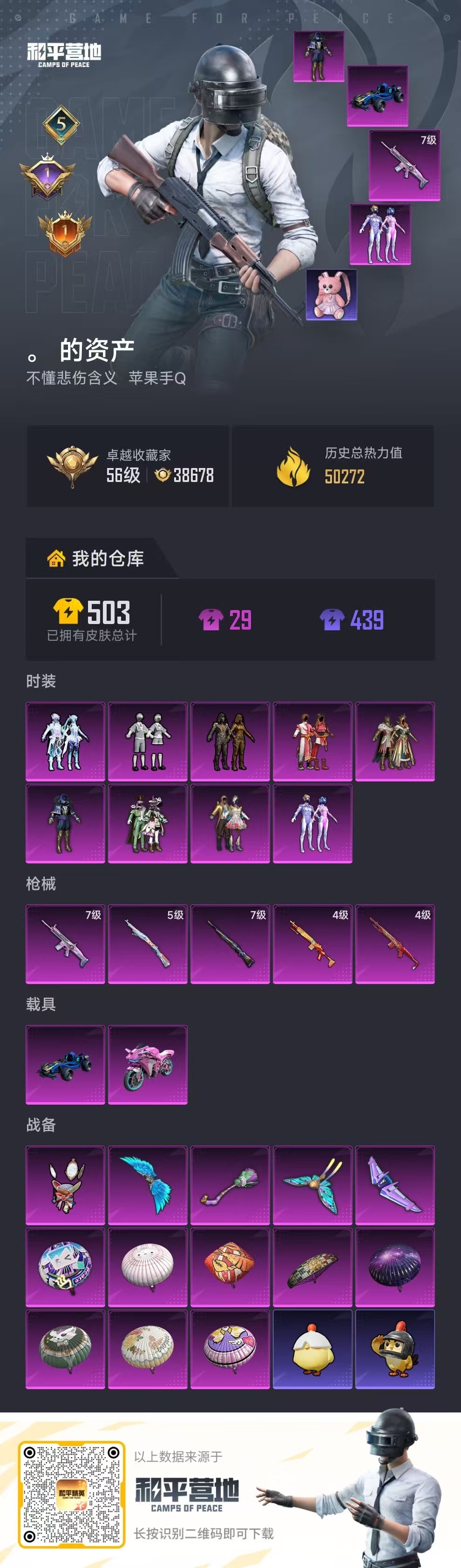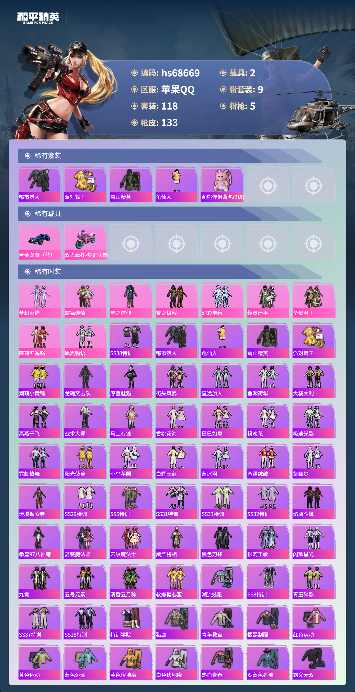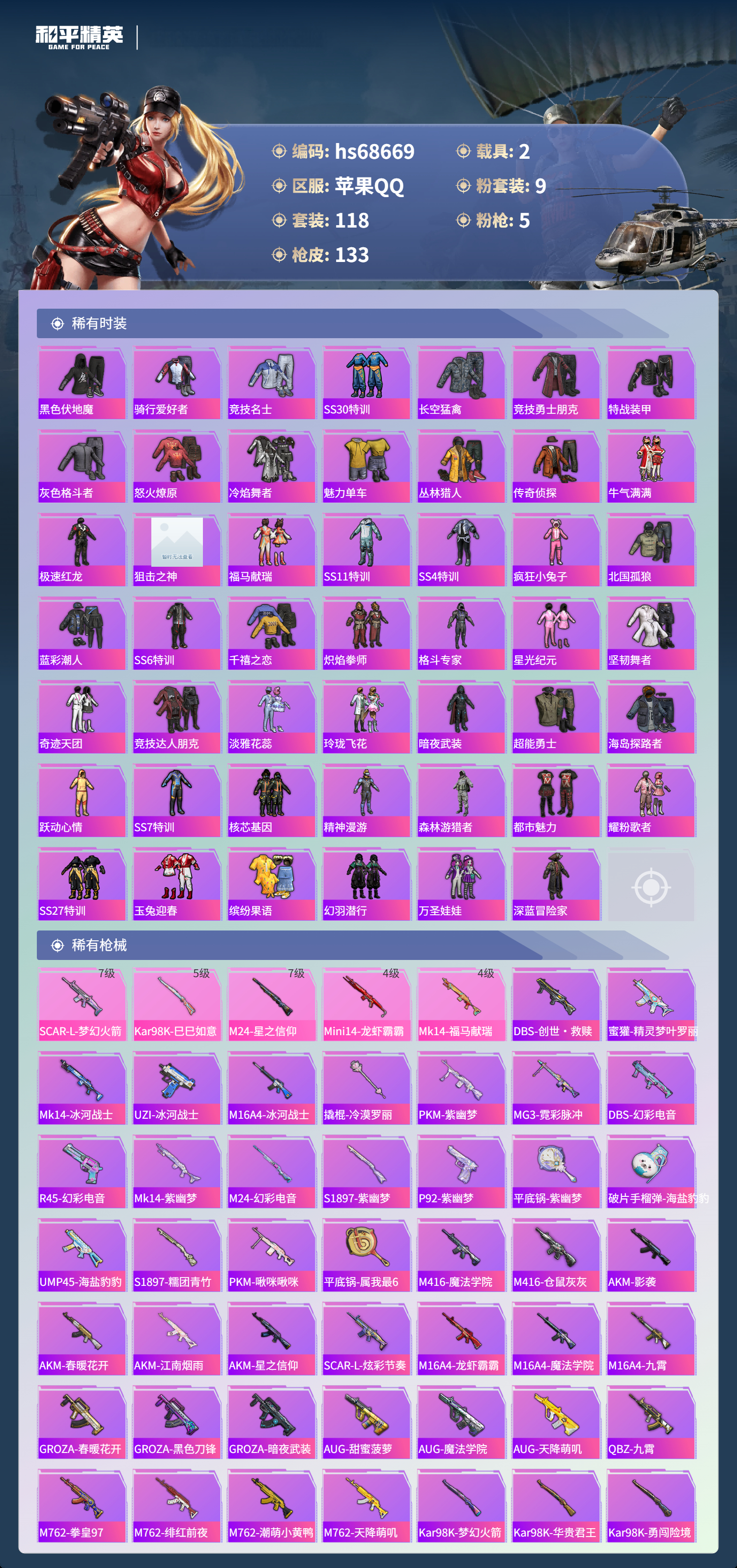 PX_2556560-,苹果手Q-5王牌印记-9粉装-5特效枪-2载具-50272热力值-118套装-133枪皮-1卓越印记-1传奇印记