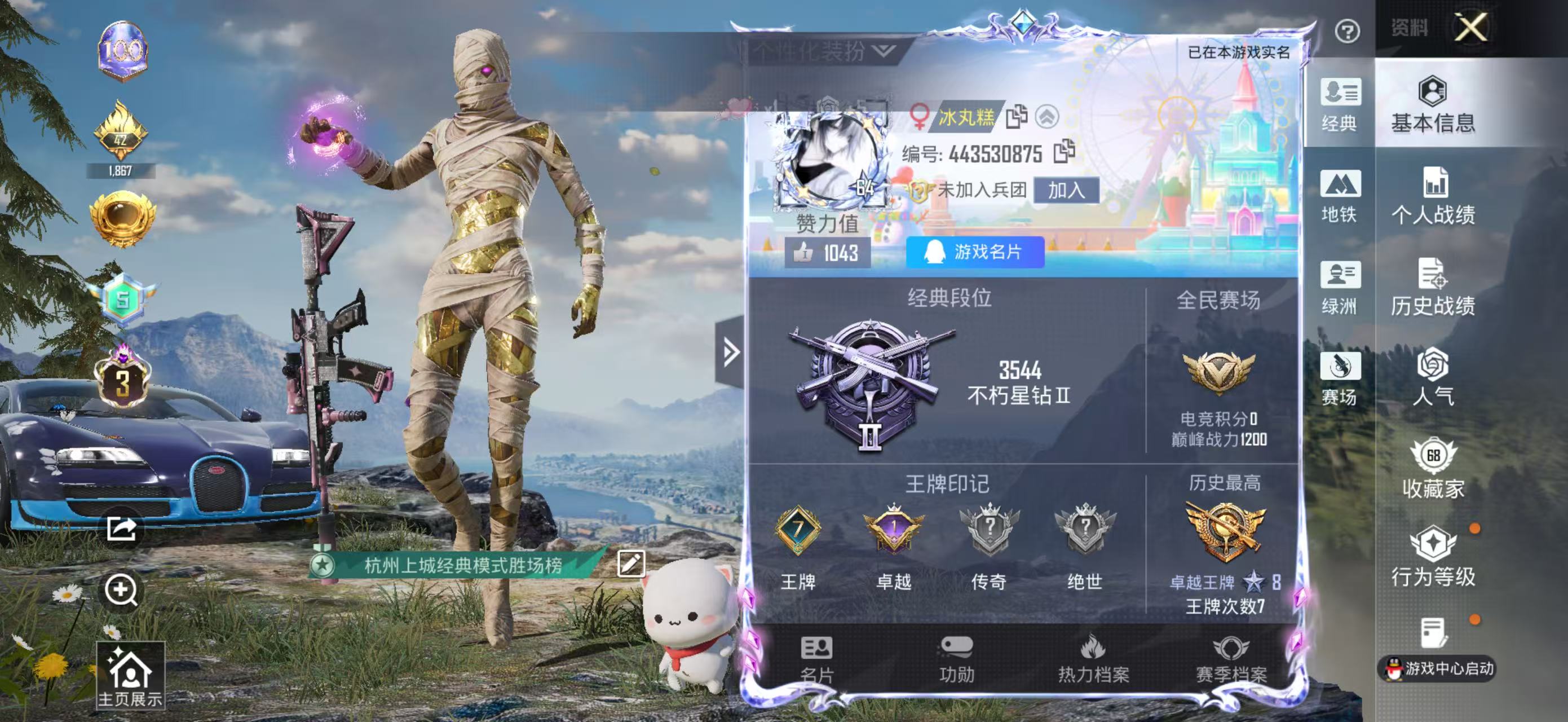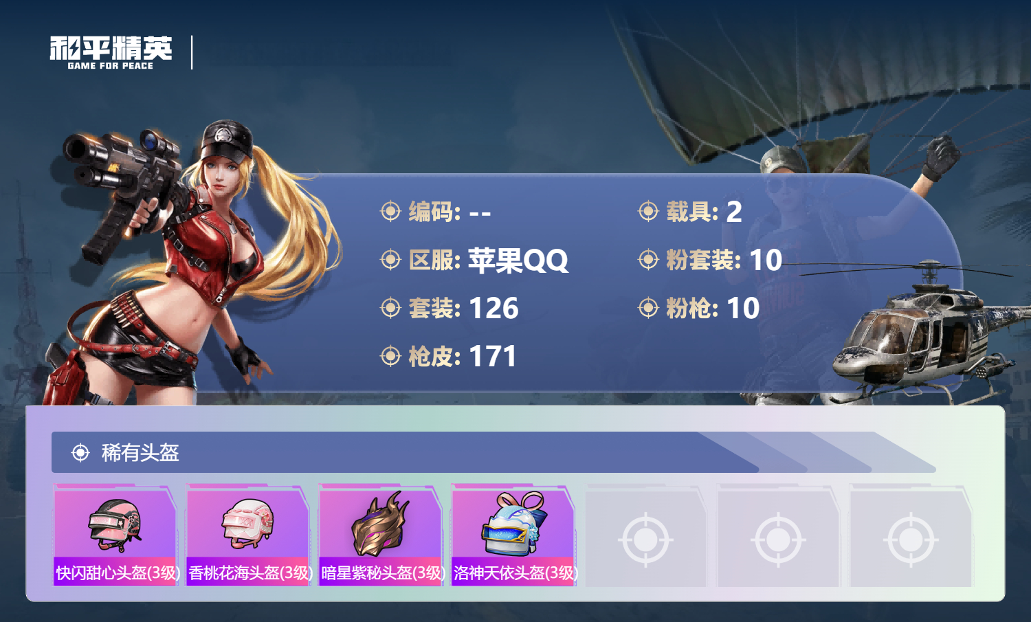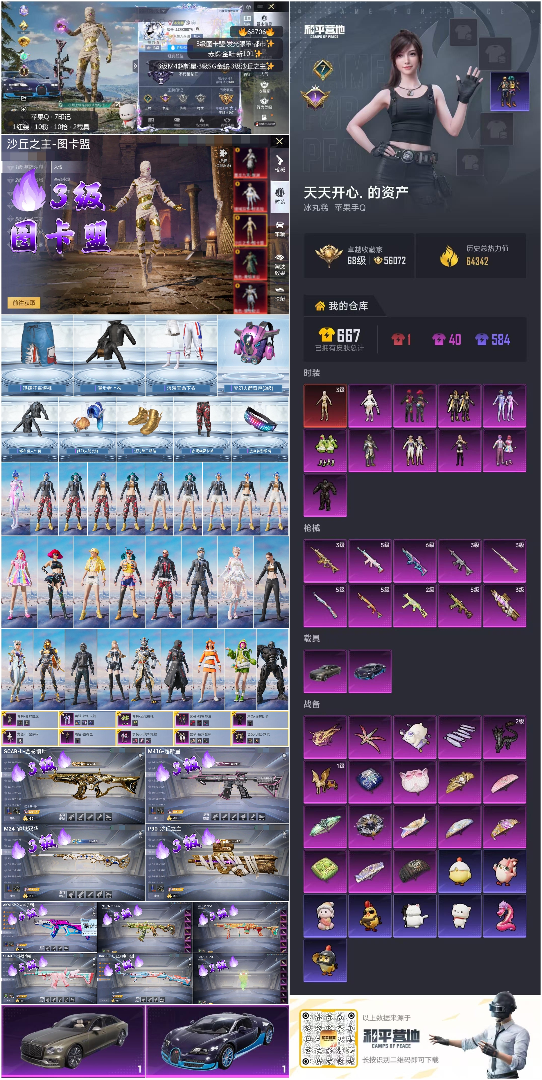 PX_2556558-,苹果手Q-7王牌印记-1红装-10粉装-10特效枪-2载具-64342热力值-126套装-171枪皮-1卓越印记