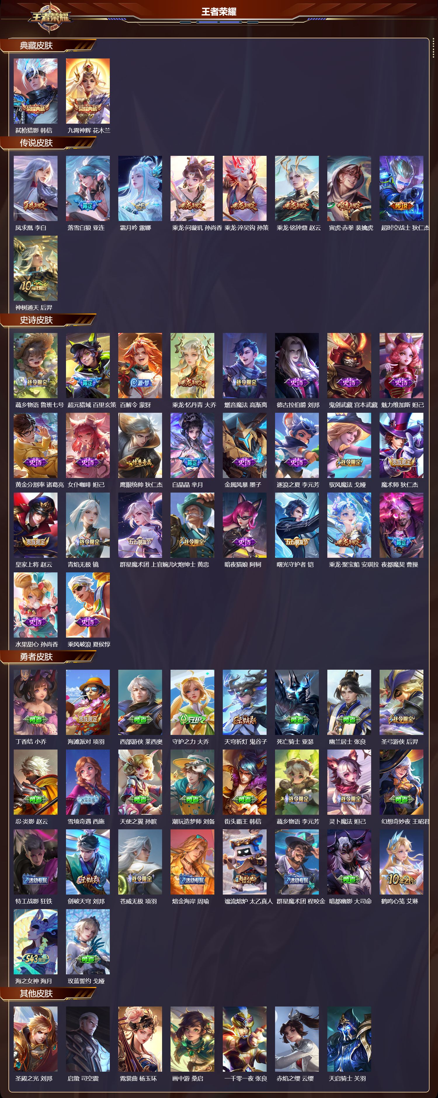 PX_2561885-??信/荣耀黄金/70皮肤/97英雄/2典藏/0珍品无双/0无双/0珍品传说/9传说/26史诗/6稀有英雄
