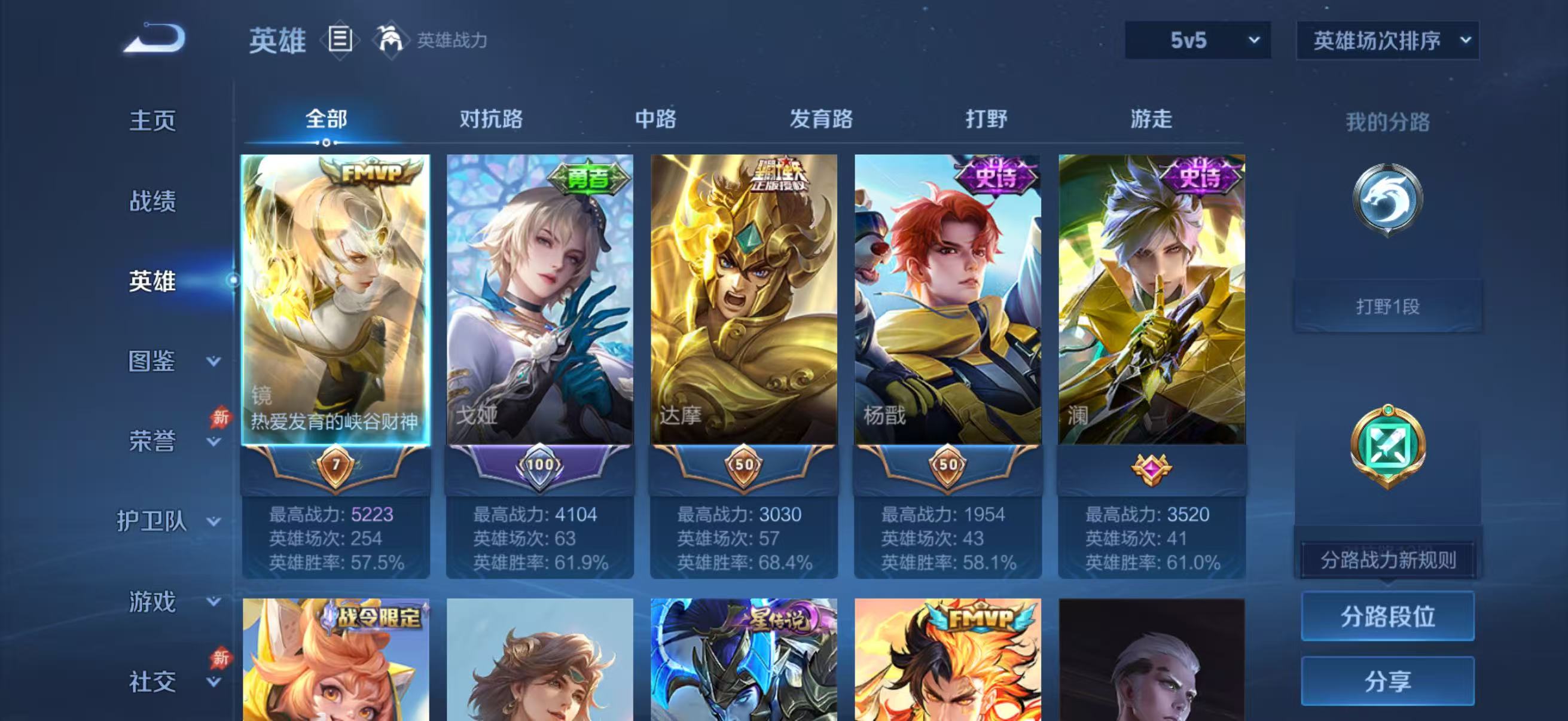 【6,稀有英雄】嬴政,不知火舞,橘右京,夏洛特,韩信,艾琳,