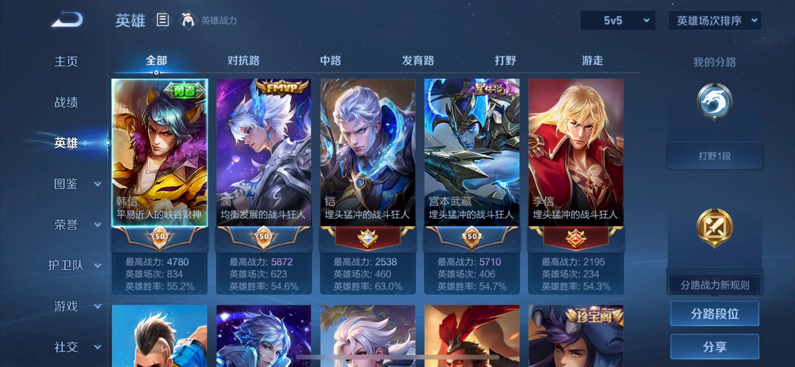 【4,稀有英雄】橘右京,娜可露露,韩信,赵云,