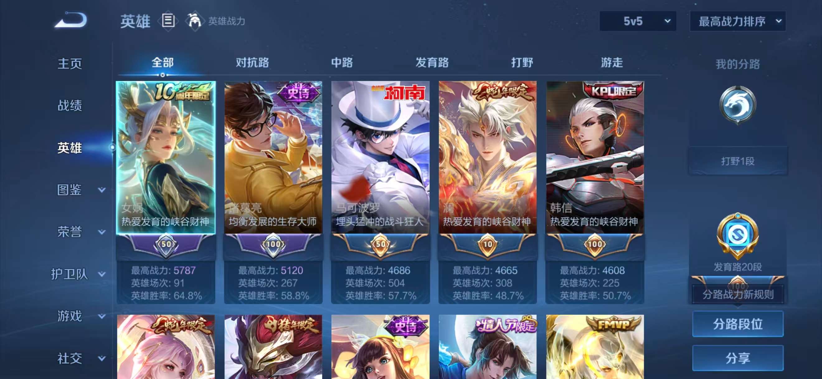 【8,稀有英雄】嬴政,不知火舞,橘右京,夏洛特,娜可露露,韩信,艾琳,赵云,