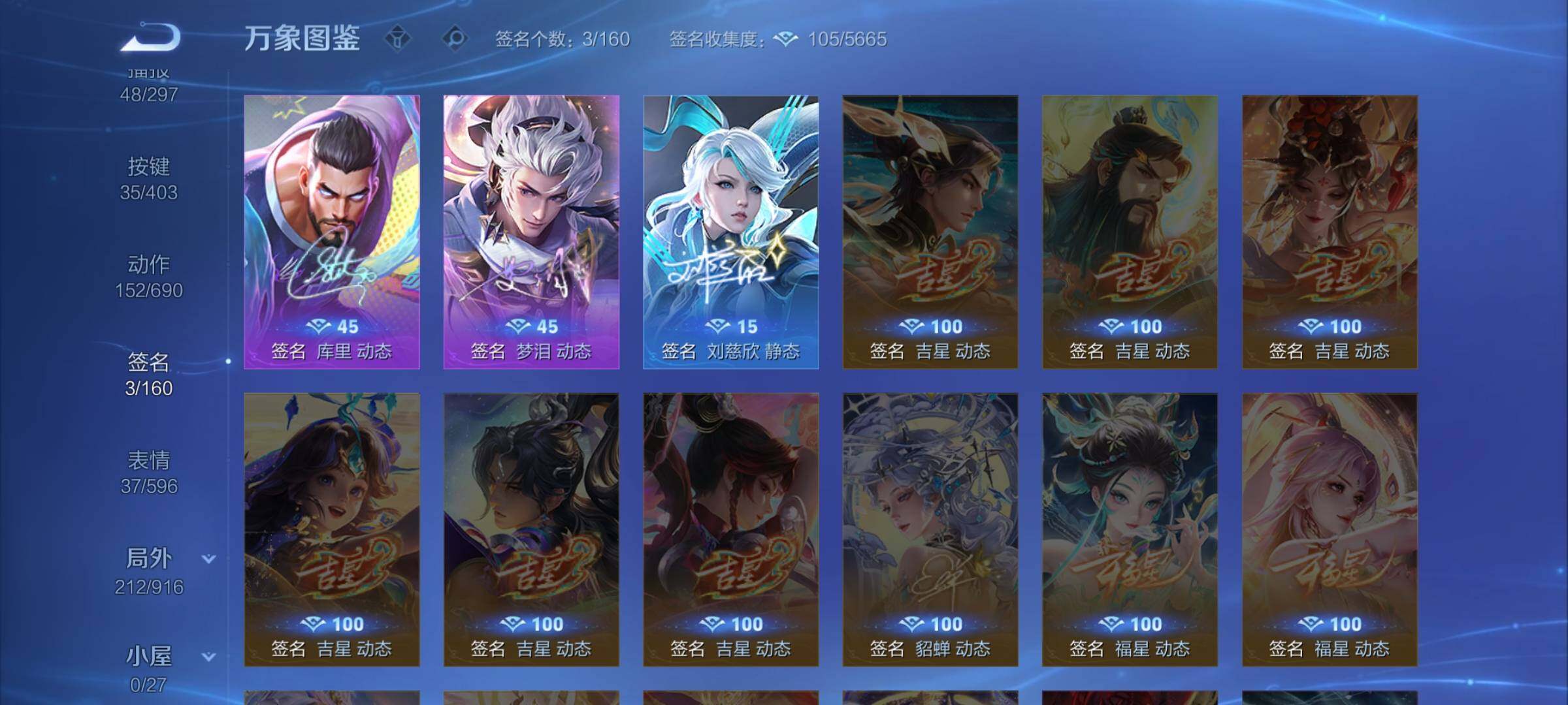 【战令限定】:典韦蓝屏警告,李元芳银河之约,元歌云间偶戏,米莱狄胡桃异想国,黄忠火炮绅士,暃星界游侠,嫦娥暖冬兔眠,司空震地狱燃心,艾琳流音漫舞,高渐离燃音魔法,妲己灵卜魔法,鲁班七号蔬乡物语,李元芳蔬乡物语,镜青焰无极,项羽苍威无极,蔡文姬夏日便利店,虞姬夏日便利店,亚连破空之剑,廉颇撼地雄心,孙悟空神迹守卫,百里守约百相守梦,老夫子百相守梦,孙膑茶境仙,马超访茗客,刘禅鸭鸭历险记,沈梦溪鸭鸭历险记,周瑜百相守梦,孙策百相守梦,莱西奥光弋星穹,明世隐往忆晖光,周瑜线条小狗,小乔线条小狗