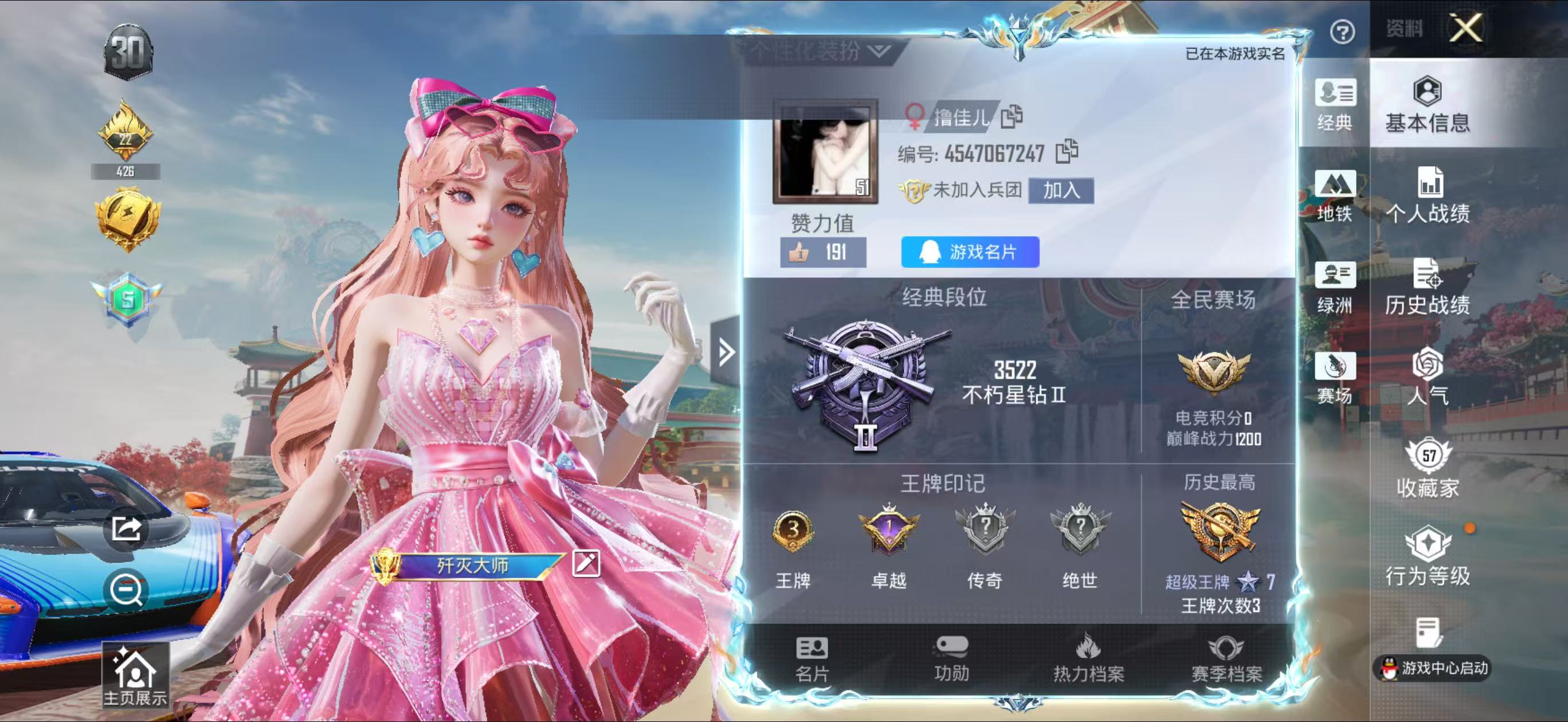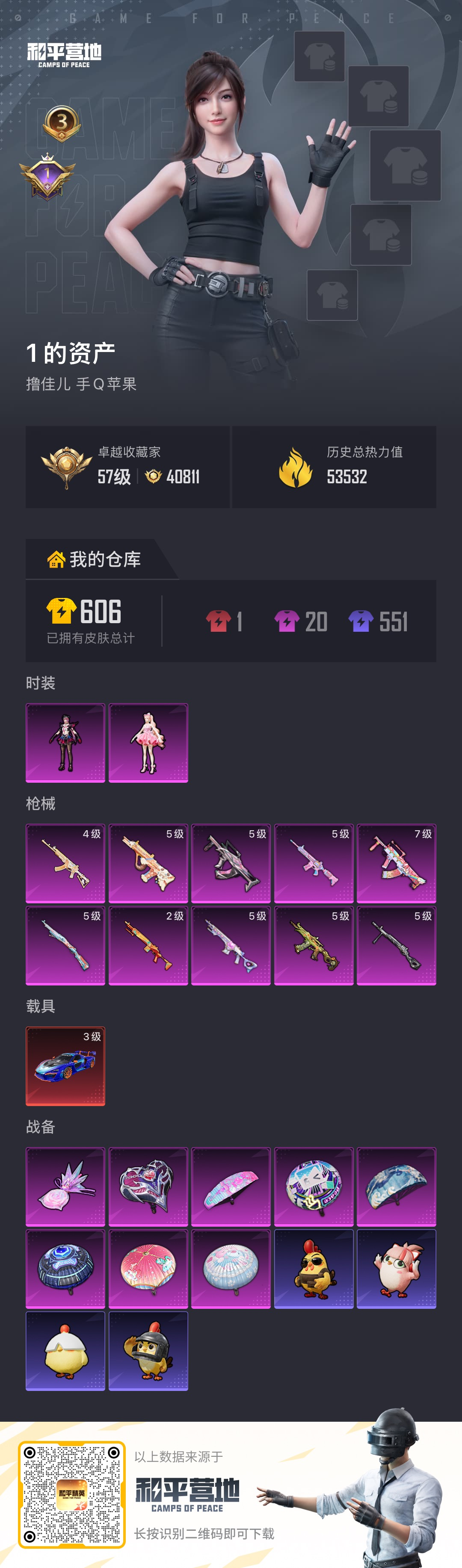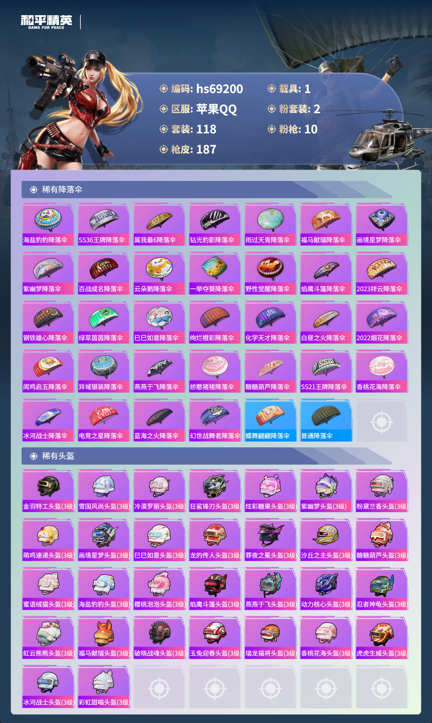 PX_2562271-,苹果手Q-3王牌印记-2粉装-10特效枪-1载具-53532热力值-118套装-187枪皮-1卓越印记