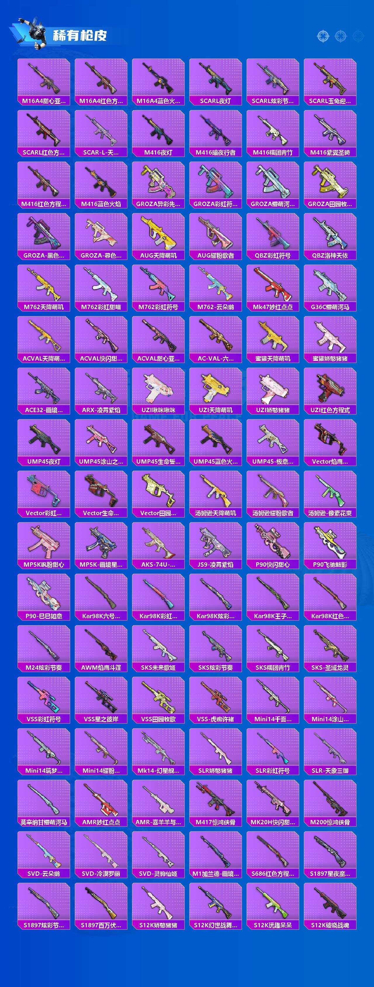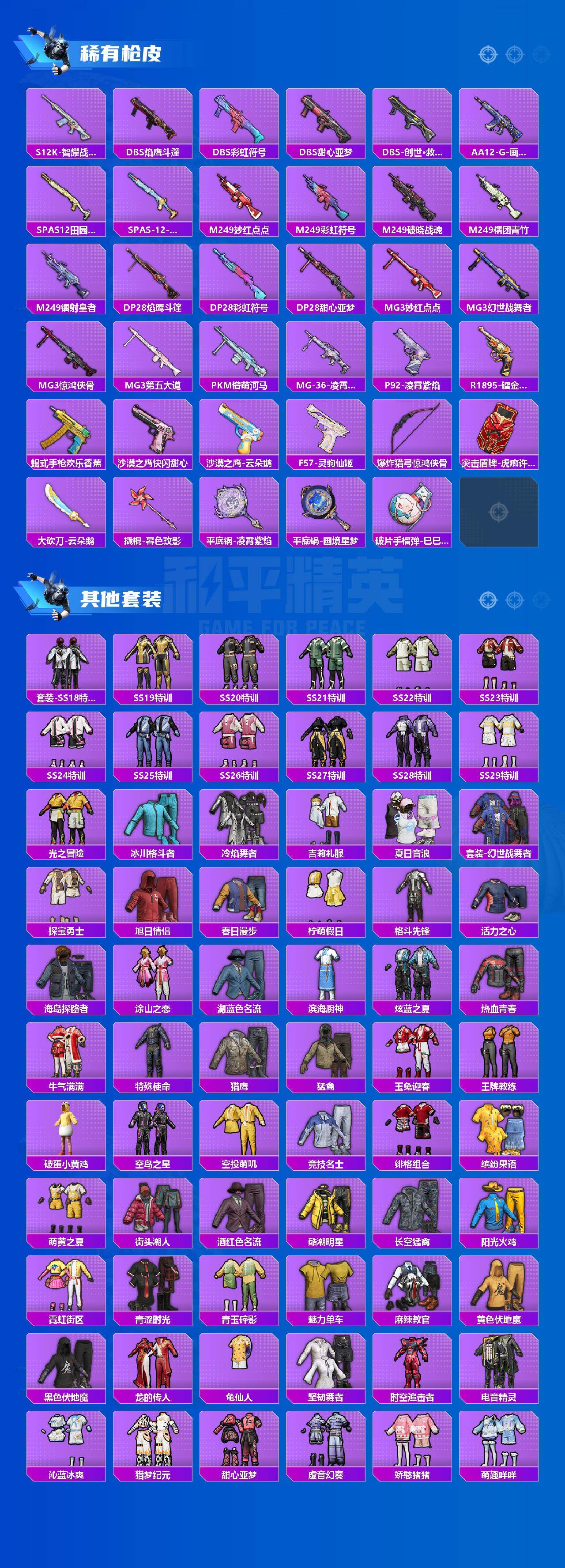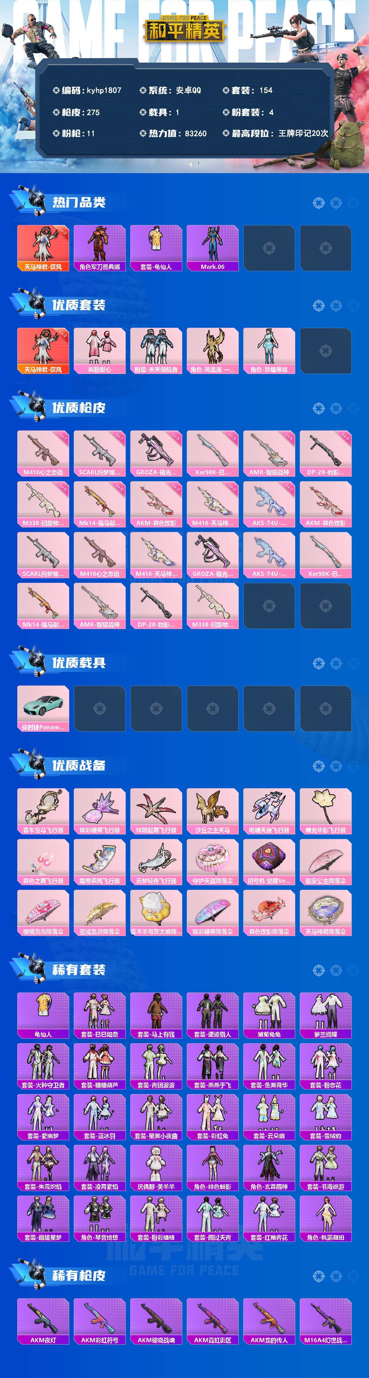 PX_2562341--1神装-4粉装-11特效枪-1载具-9粉色飞行器-83260热力值-20王牌印记-154套装-275枪皮