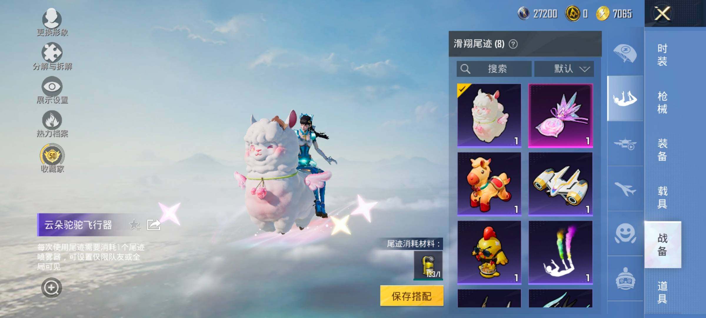 【8特效枪】,AKS-74U-森灵之息,(5级),Kar98K-巳巳如意,(5级),MG-36-沧焰双生,(5级),DP-28-豹影疾电,(5级),Mk14-福马献瑞,(5级),AA12-G-萌骑幻想,(2级),UMP45-萌骑冒险,(2级),ACE32-萌骑漫游,(4级),