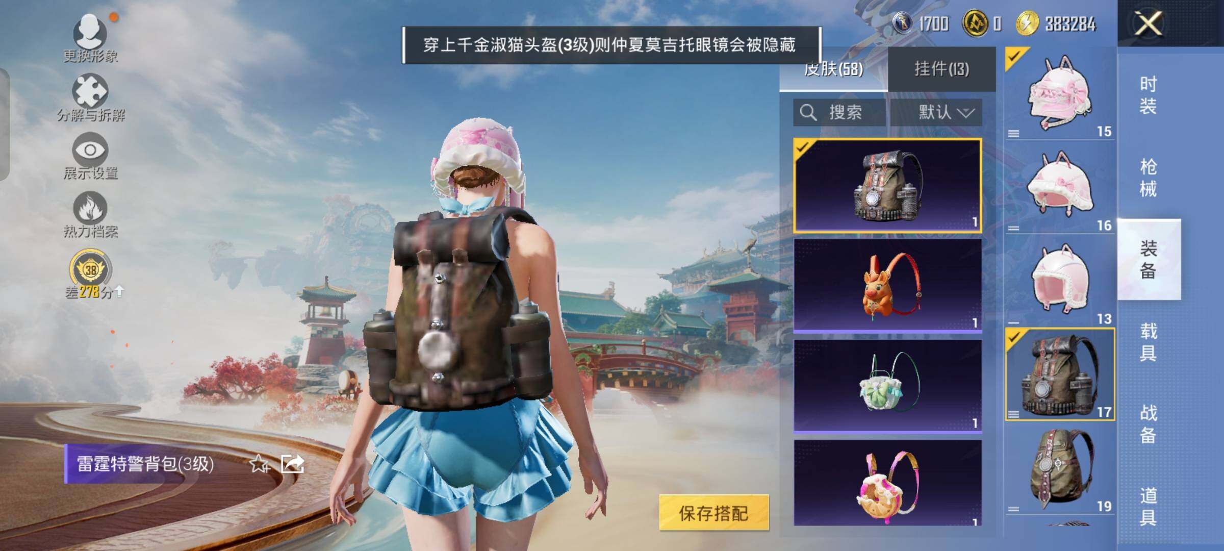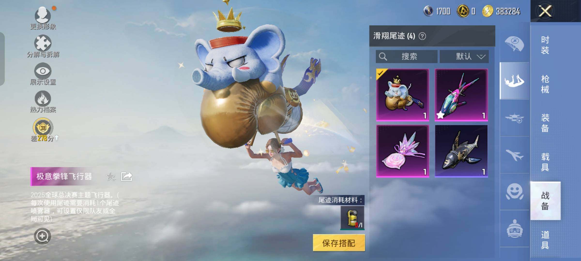 【5特效枪】,AKS-74U-森灵之息,(4级),Kar98K-巳巳如意,(5级),DP-28-豹影疾电,(5级),Mk14-福马献瑞,(3级),UMP45-萌骑冒险,(4级),