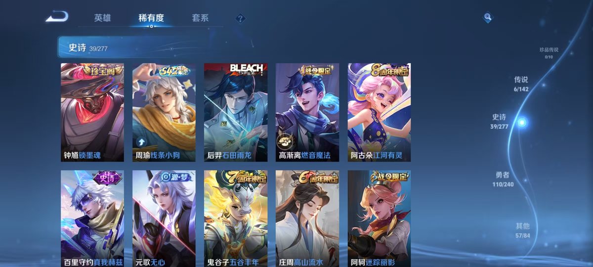 W10022【安卓区V8】可二次实名,英雄104,皮肤161,典藏:李白鸣剑.曳