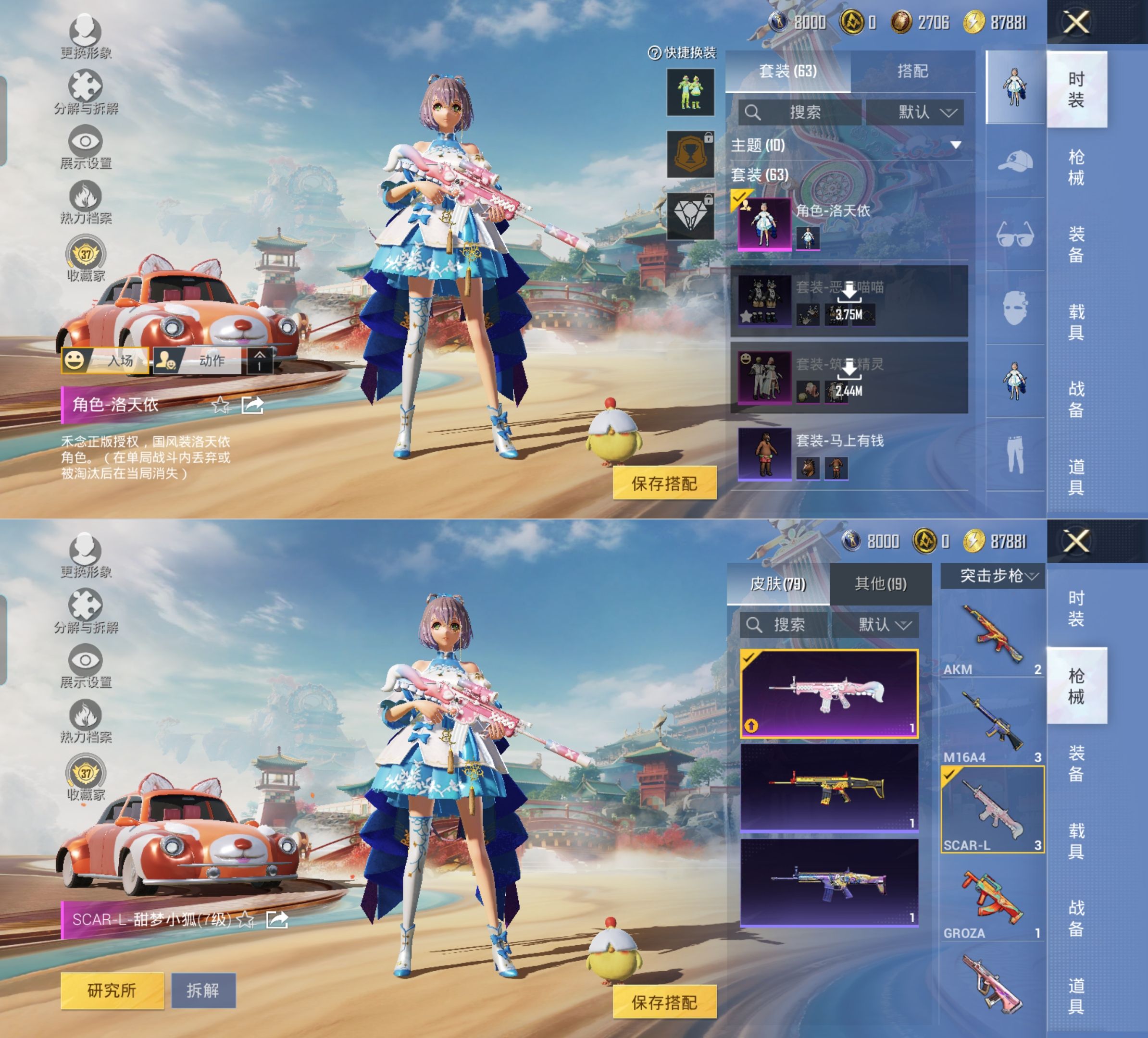 PX_2563045-2粉装-4特效枪洛天依】安卓手Q-1载具-2粉装-4特效枪-63套装-79枪皮-6王牌印记-不朽星钻Ⅳ-27322热力值【1载具】俏皮小熊猫【2粉装】角色-洛天依,筑梦精灵【4特效枪】Mk14-福马献瑞[5级],DP-28-豹影疾电[3级],Kar98K-巳巳如意[2级],SCAR-L-甜梦小狐[7级]【1飞行器】星夜魔法师飞行翼【136其它衣服和枪皮】战术大师,天籁歌者,牛气满满,猎梦