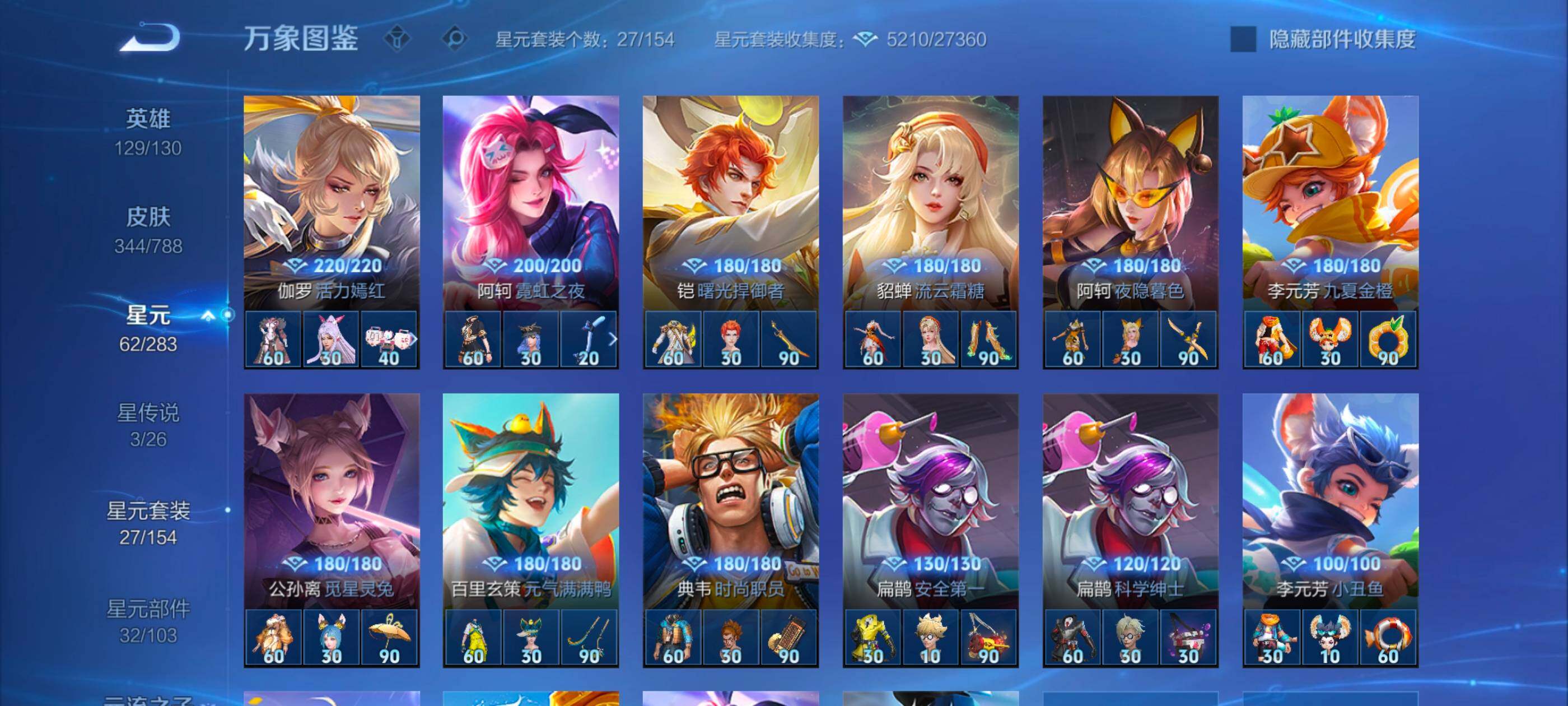 【战令限定】:嬴政白昼王子,吕布猎兽之王,典韦蓝屏警告,女娲朔望之晖,兰陵王驯魔猎人,周瑜赤莲之焰,阿轲迷踪丽影,刘邦夺宝奇兵,马可波罗暗影游猎,猪八戒西部大镖客,蒙犽狂想玩偶喵,雅典娜单词大作战,狂铁电玩高手,王昭君午后时光,暃星界游侠,嫦娥暖冬兔眠,扁鹊奇幻香踪,杨戬潮玩骑兵,戈娅驭风魔法,西施玲珑珍味,蔡文姬夏日便利店,虞姬夏日便利店,周瑜线条小狗