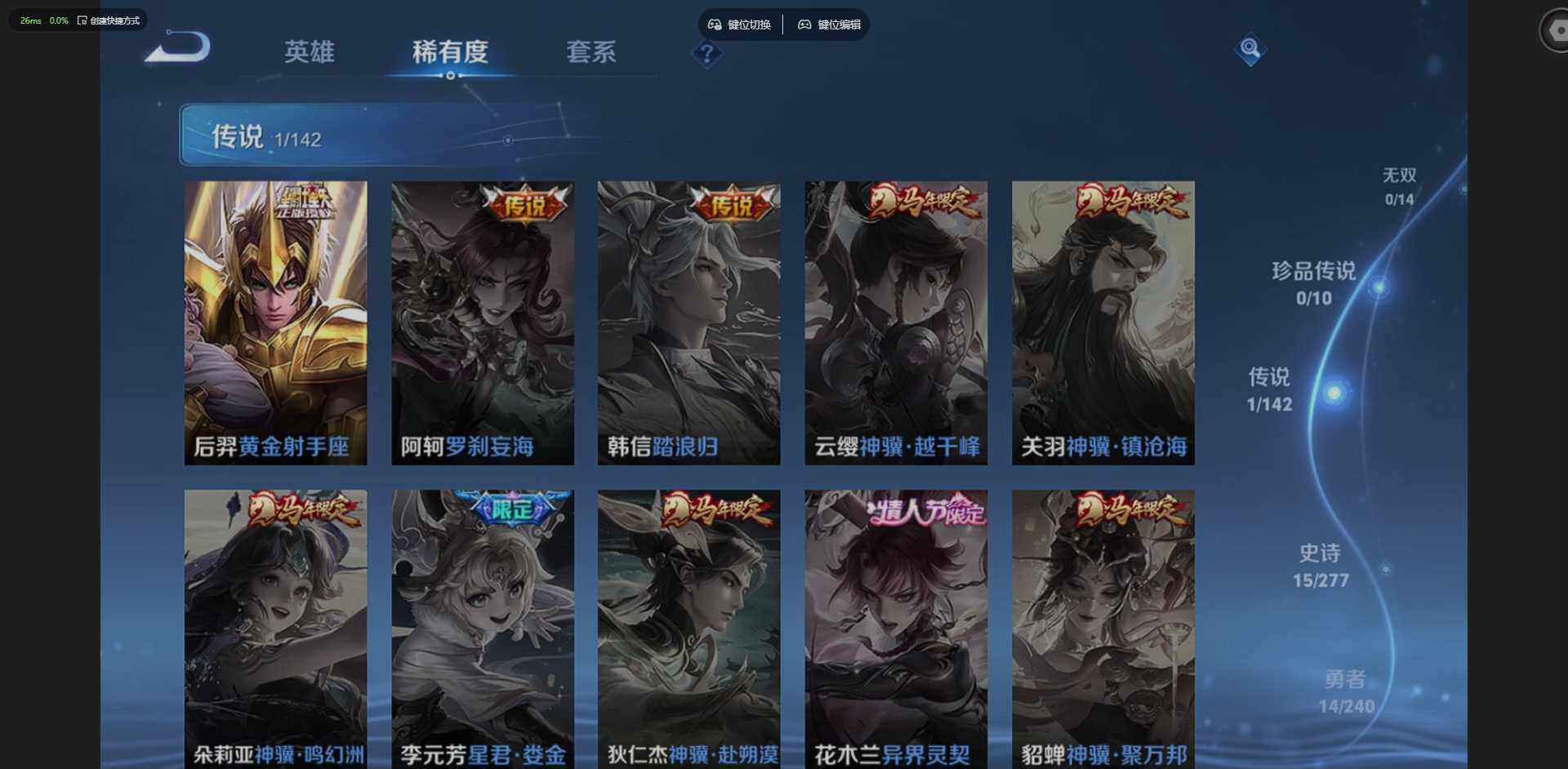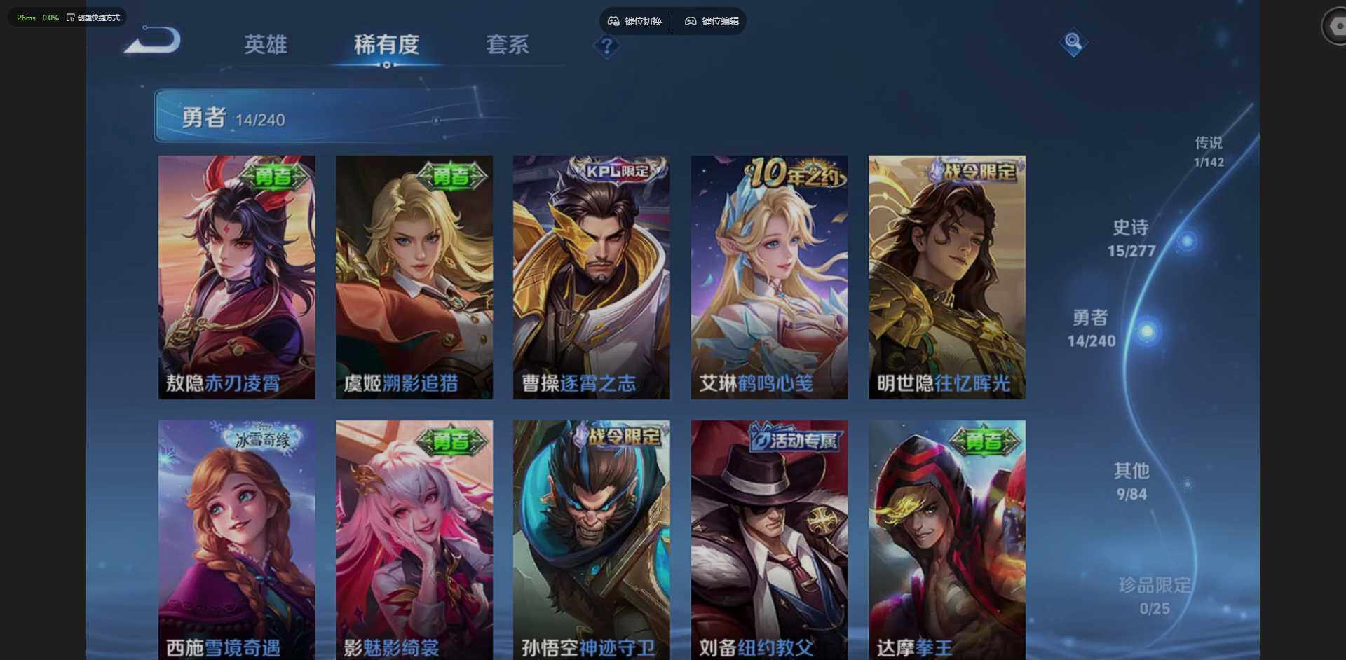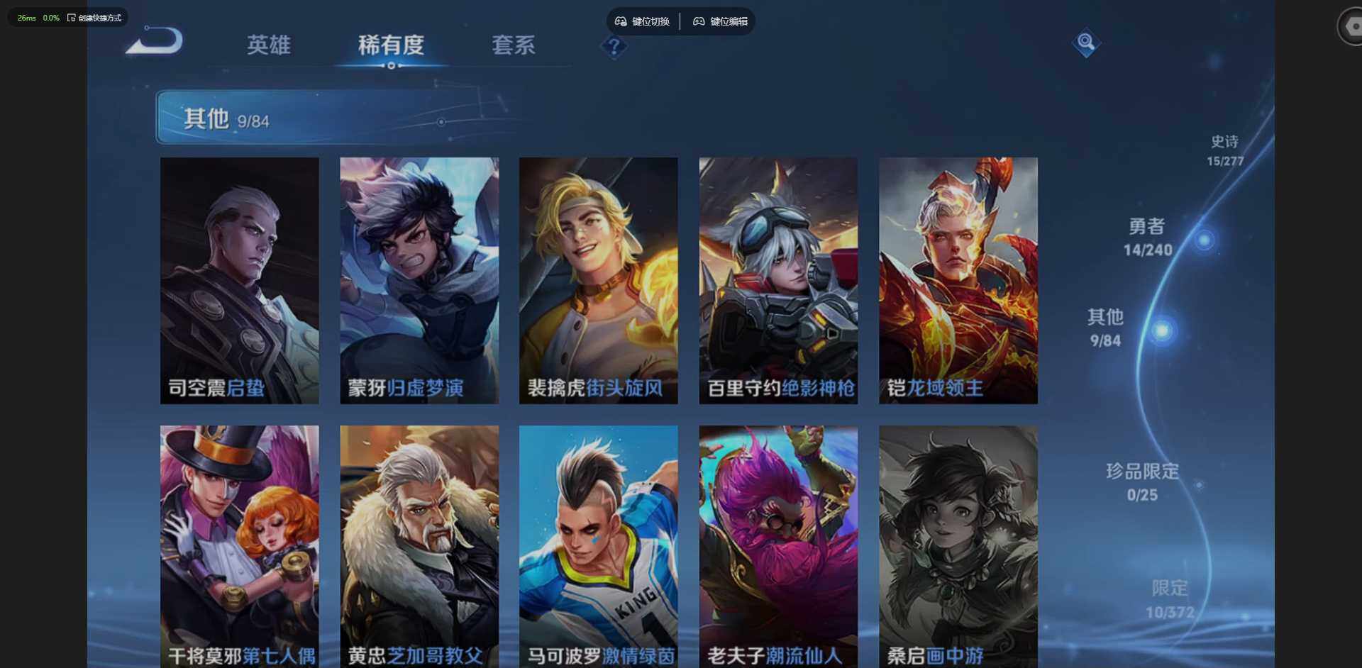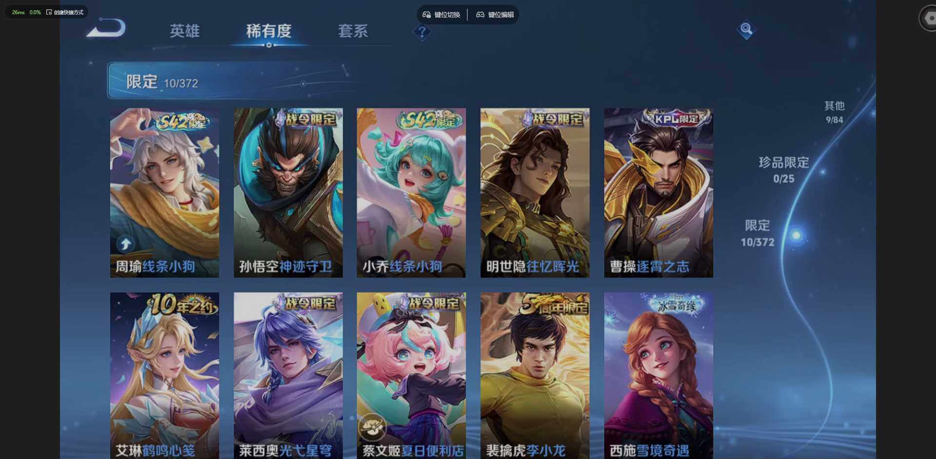 W10005,【安卓QQ】,V8,英雄84,皮肤93,典藏:全息碎影,凤求凰,(