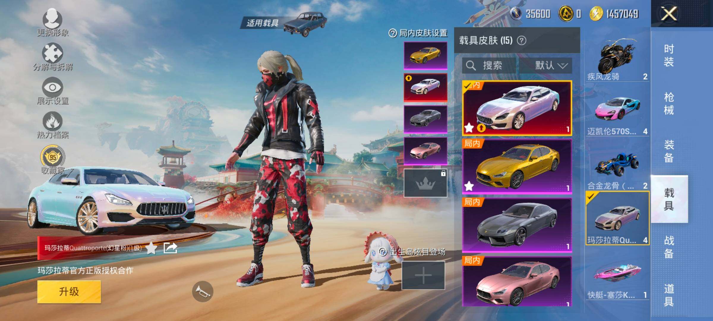 【16载具】,玛莎拉蒂Q幻星粉,(1级),玛莎拉蒂金色,玛莎拉蒂M白色,迈凯伦570S炫冰蓝,(1级),玛莎拉蒂粉色,兰博轿车灰色,兰博SUV黄色,兰博SVJ绿色,合金龙骨蓝色,幻影随行,疾风龙骑,焰龙咆哮,特斯拉X银色,塞莎霓虹粉,(1级),极速兔兔车,空客蔚蓝之翼僚机,