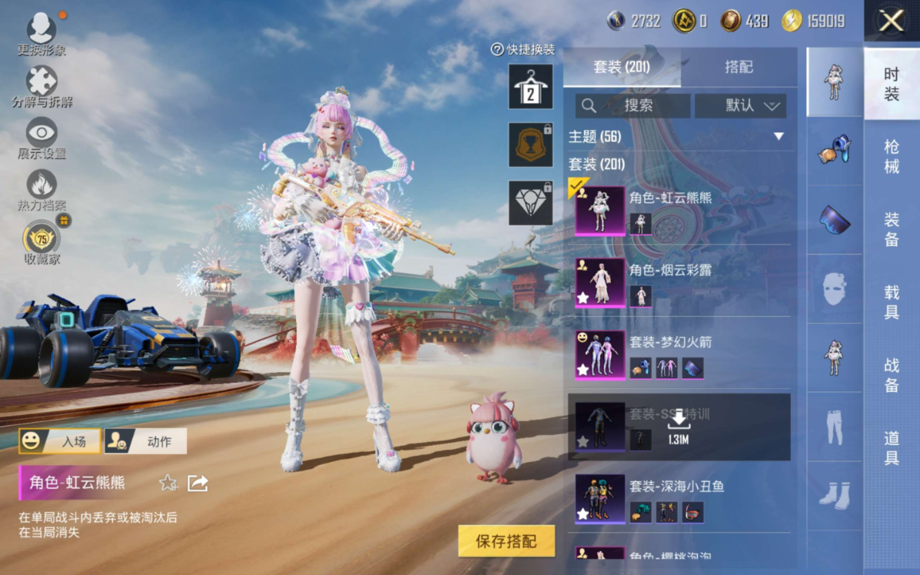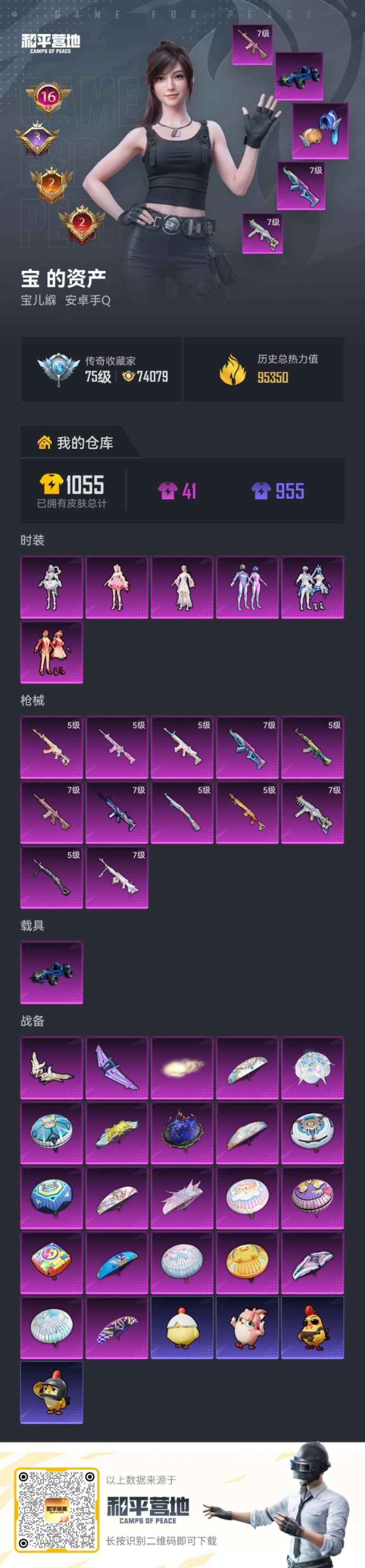 PX_2563206-1载具-201套装-297枪皮-2稀有1载具6粉装12特效枪13热门201套装297枪皮,95350热力值,16印记,历史绝世王牌15星,【2稀有】,AKM-百万伏特,浪漫天命,【1载具】,合金龙骨蓝色,【6粉装】,梦幻火箭,虹云熊熊,烟云彩露,樱桃泡泡,未来歌姬,妙趣可丽,【12特效枪】,SCAR-L-锦绣绵绵,(5级),M416-心之恋语,(7级),M416-电玩时刻,(5级),AKM-绿萝繁花,(5级),Kar98K-巳巳如意,(5级),DP-28-豹影疾电,(5级),PKM-江南烟雨,(7级),UMP45-相思残雪,(7级),AKM-梦之光华,(7级),Mk14-福马献瑞,(5级),ACE32-萌骑漫游,(5级),SCAR-L-青春物语,(7级),【13热门】,龟仙人,雪山精英,呆萌铁蟹,激萌罗小黑,迅捷狂鲨,深海小丑鱼,团圆交子,瑞龙福将,粉红小猪,狂沙舞者,破蛋小黄鸡,弄潮海豚,M762-瑞龙福将,【2飞行器】,梦幻火箭飞行器,齐天大圣飞行器,【1头盔】,深海小丑鱼头盔,【2背包】,梦幻火箭背包,深海小丑鱼背包,营地ID: