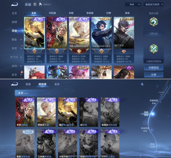 W10022【安卓区V8】可二次实名,英雄104,皮肤161,典藏:李白鸣剑.曳