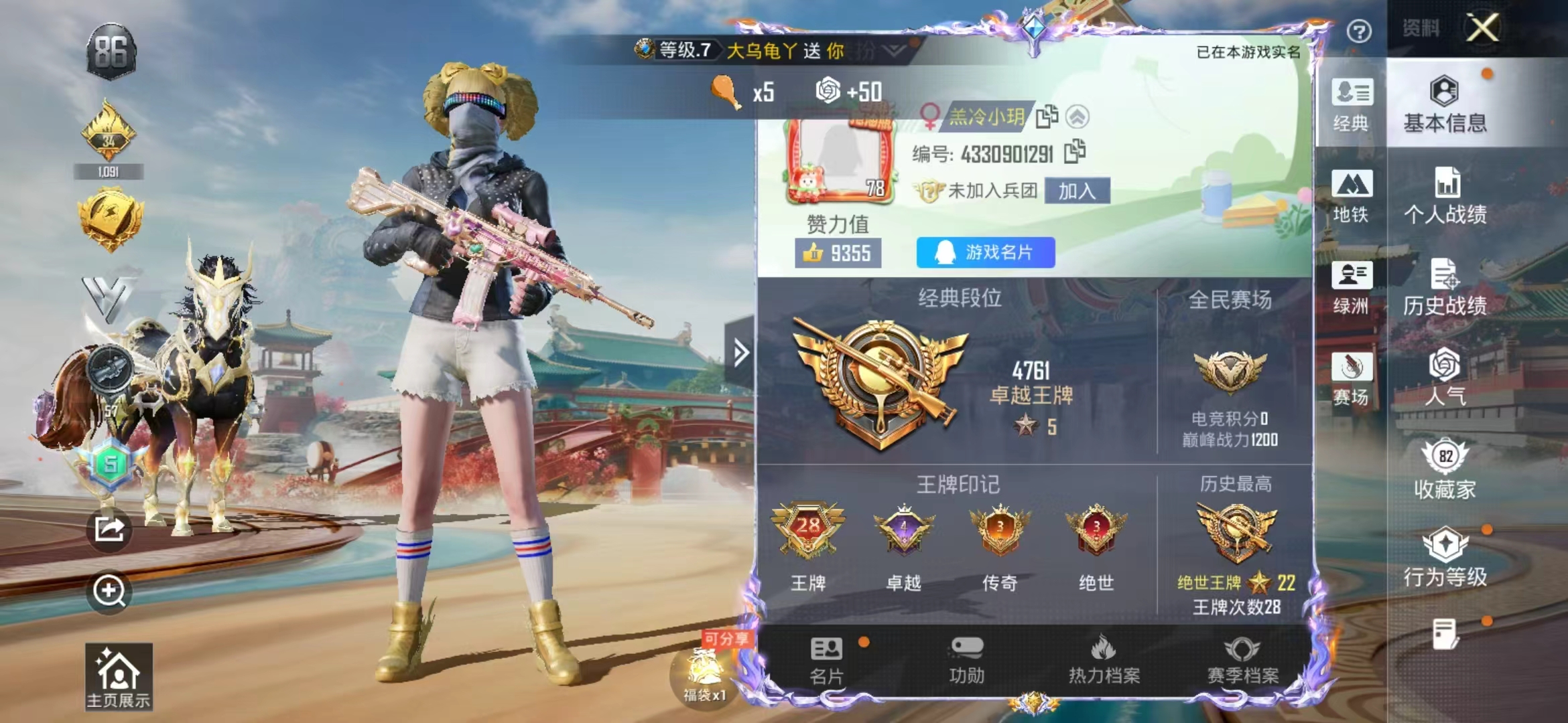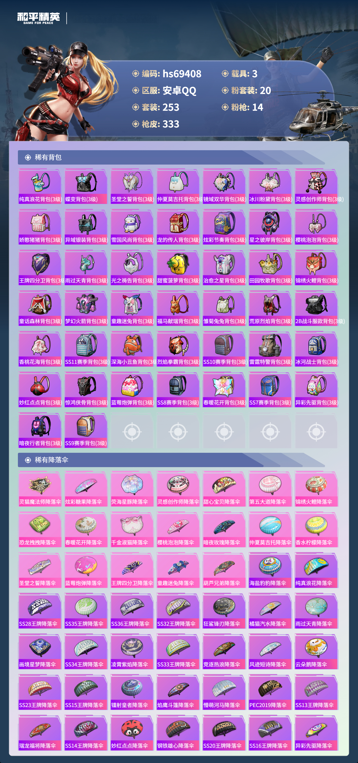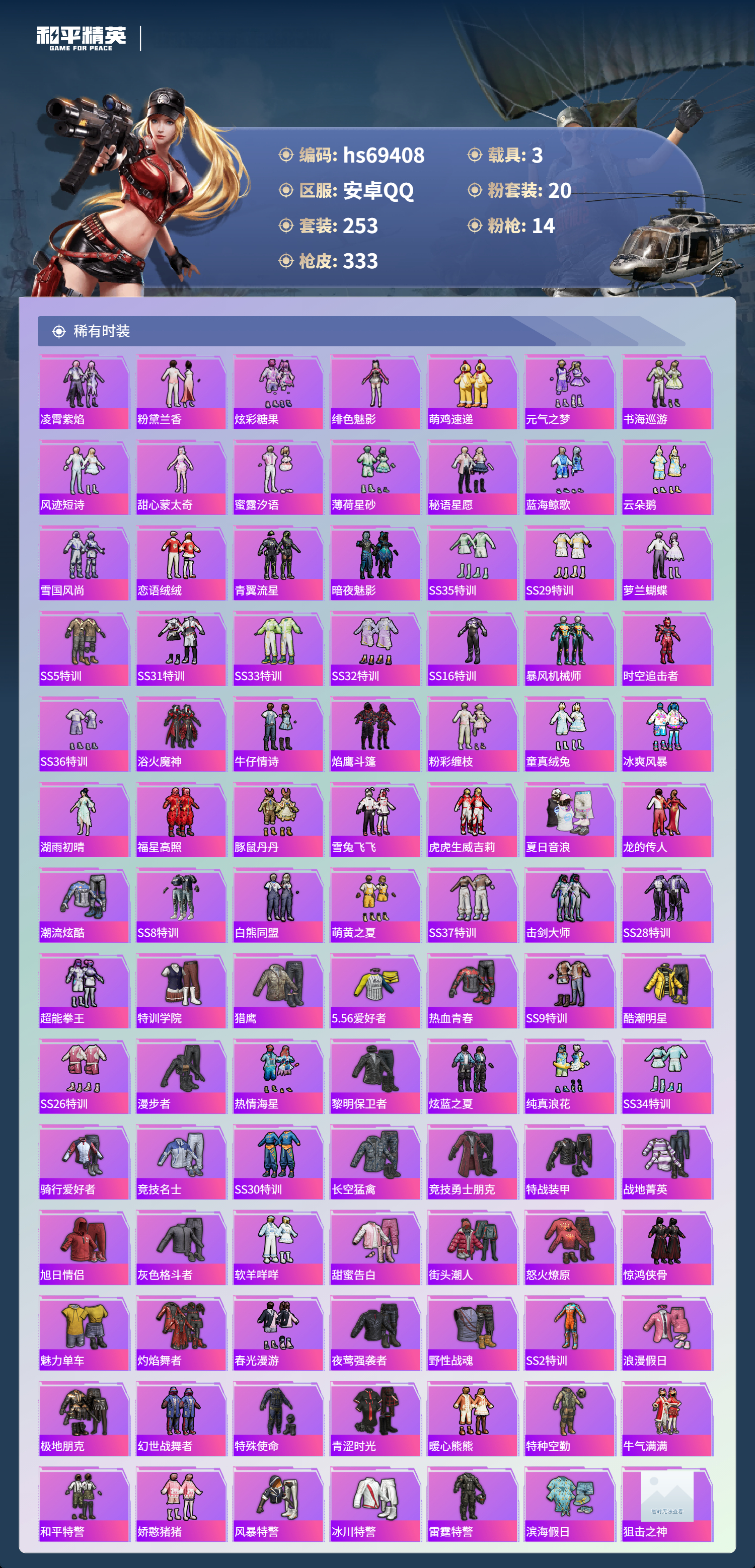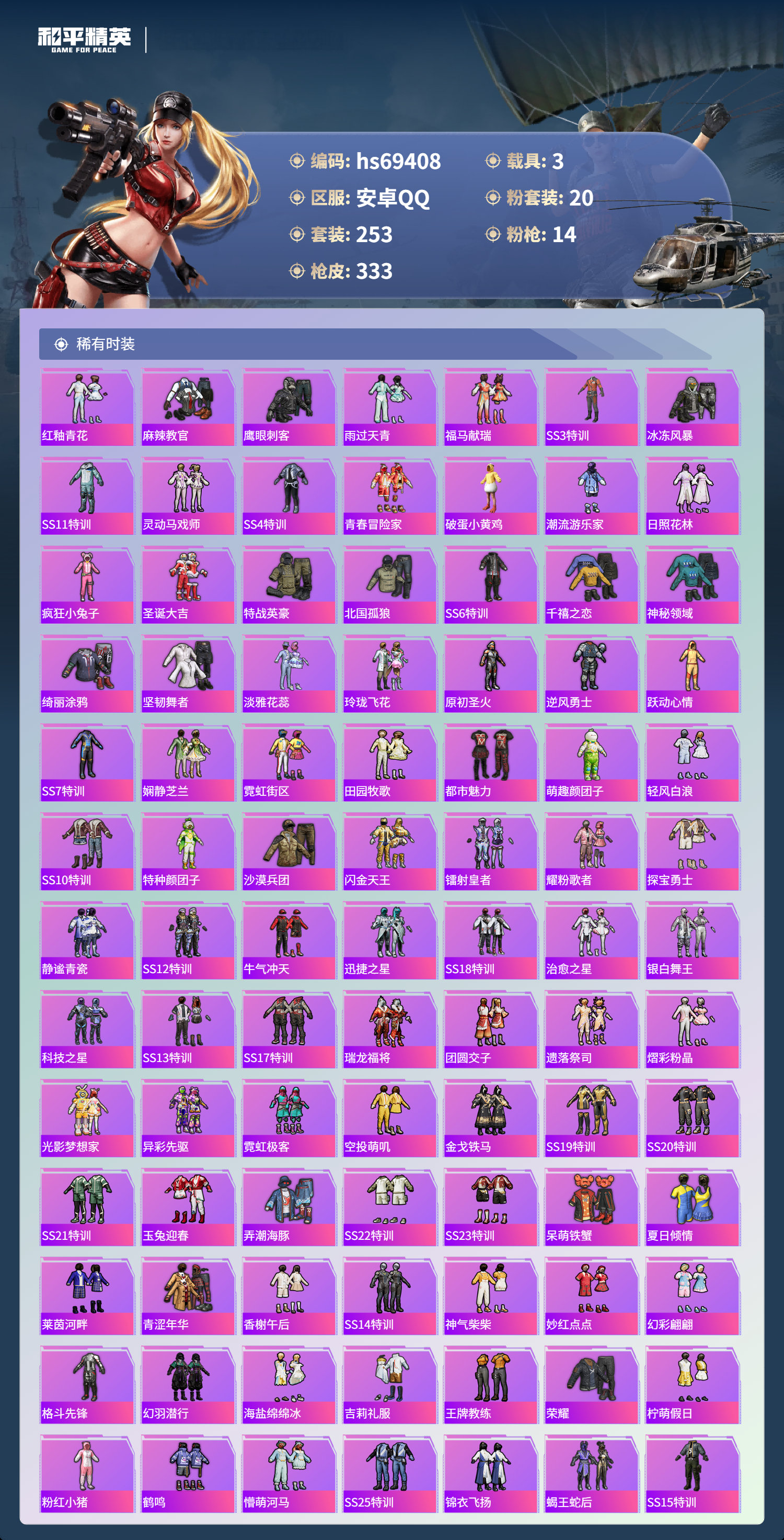 PX_2563361-,安卓手Q-28王牌印记-20粉装-14特效枪-3载具-热力值-253套装-333枪皮-4卓越印记-3传奇印记