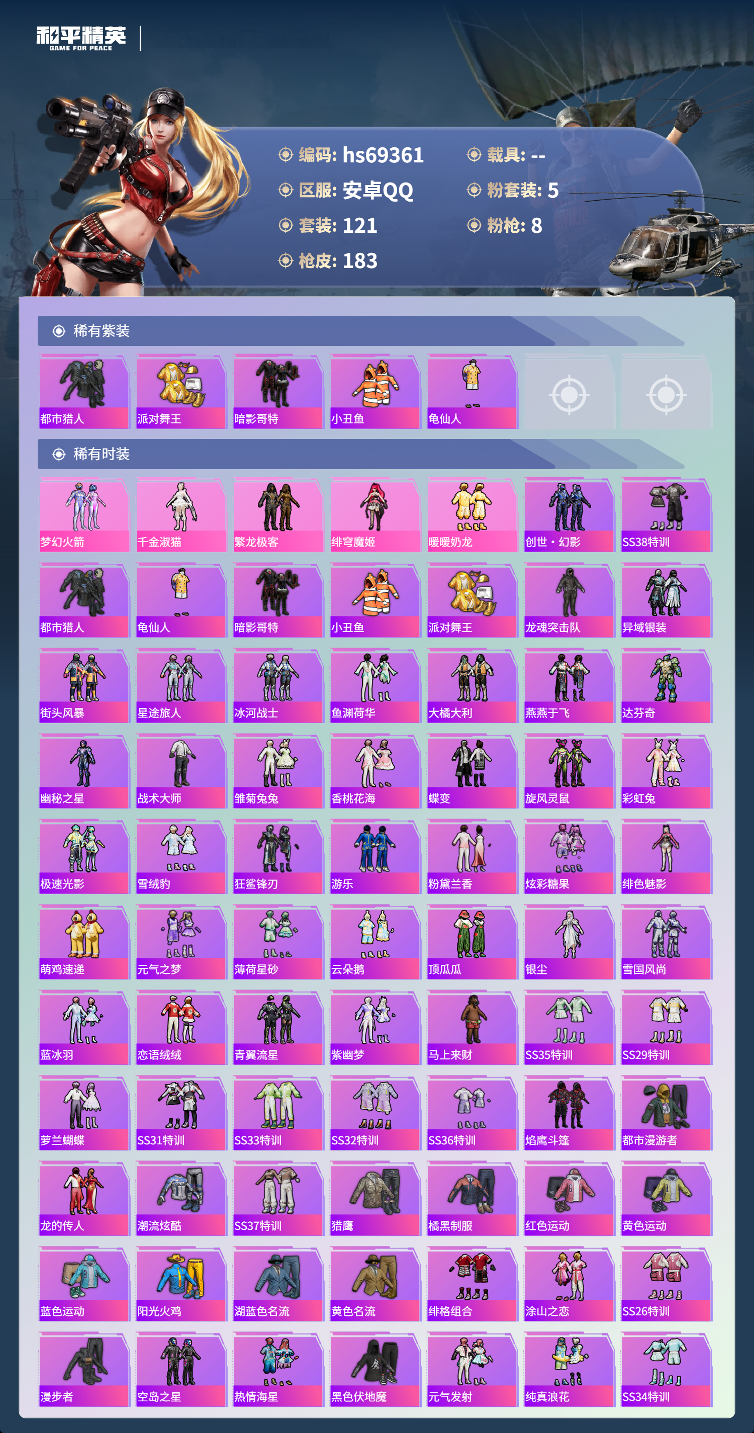 PX_2563366-,安卓手Q-5王牌印记-5粉装-8特效枪-51576热力值-121套装-183枪皮-1卓越印记