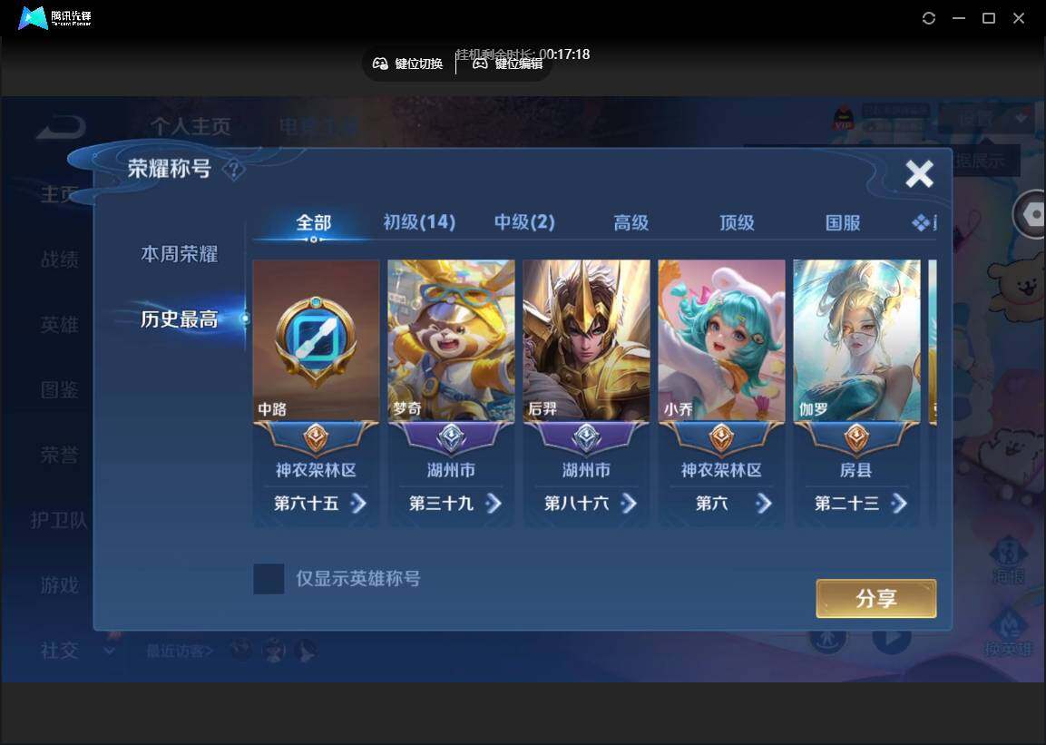 W10005,【安卓QQ】,V8,英雄84,皮肤93,典藏:全息碎影,凤求凰,(