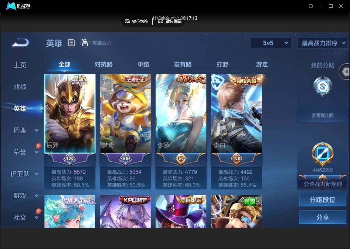 W10022【安卓区V8】可二次实名,英雄104,皮肤161,典藏:李白鸣剑.曳