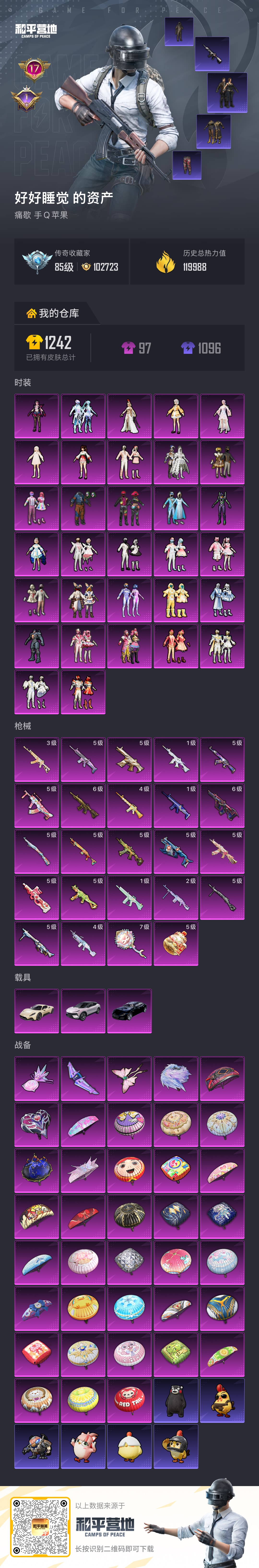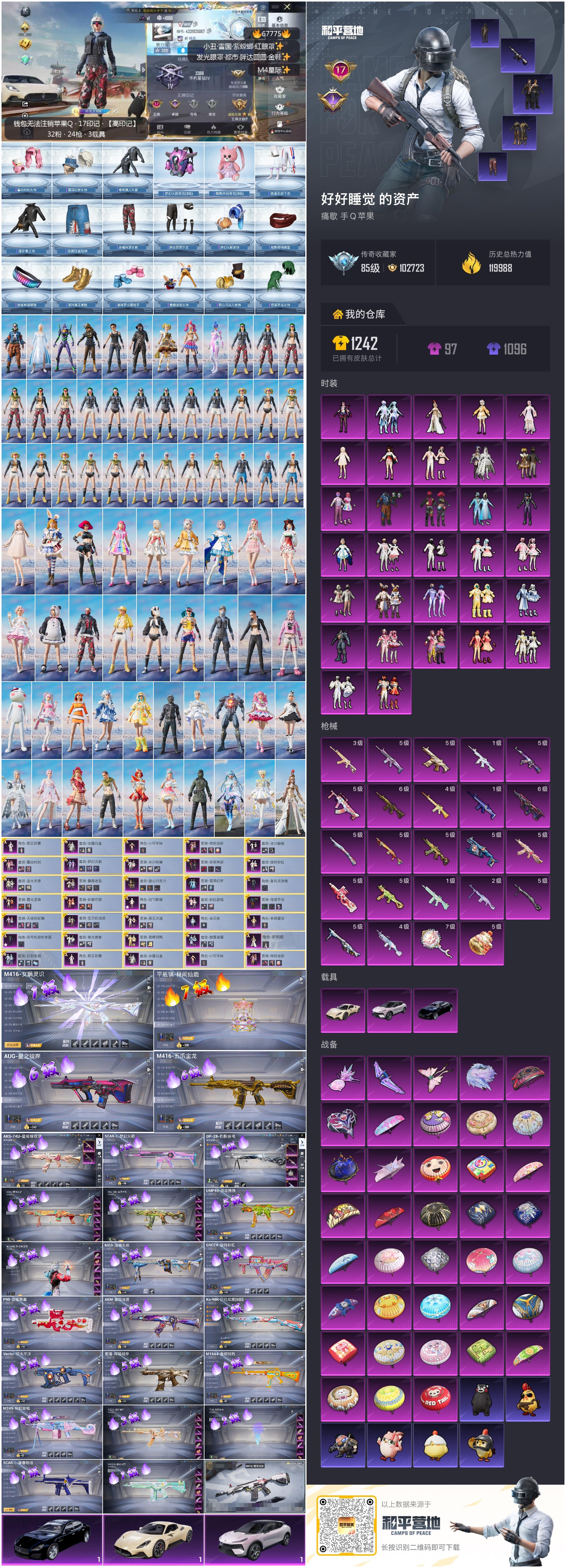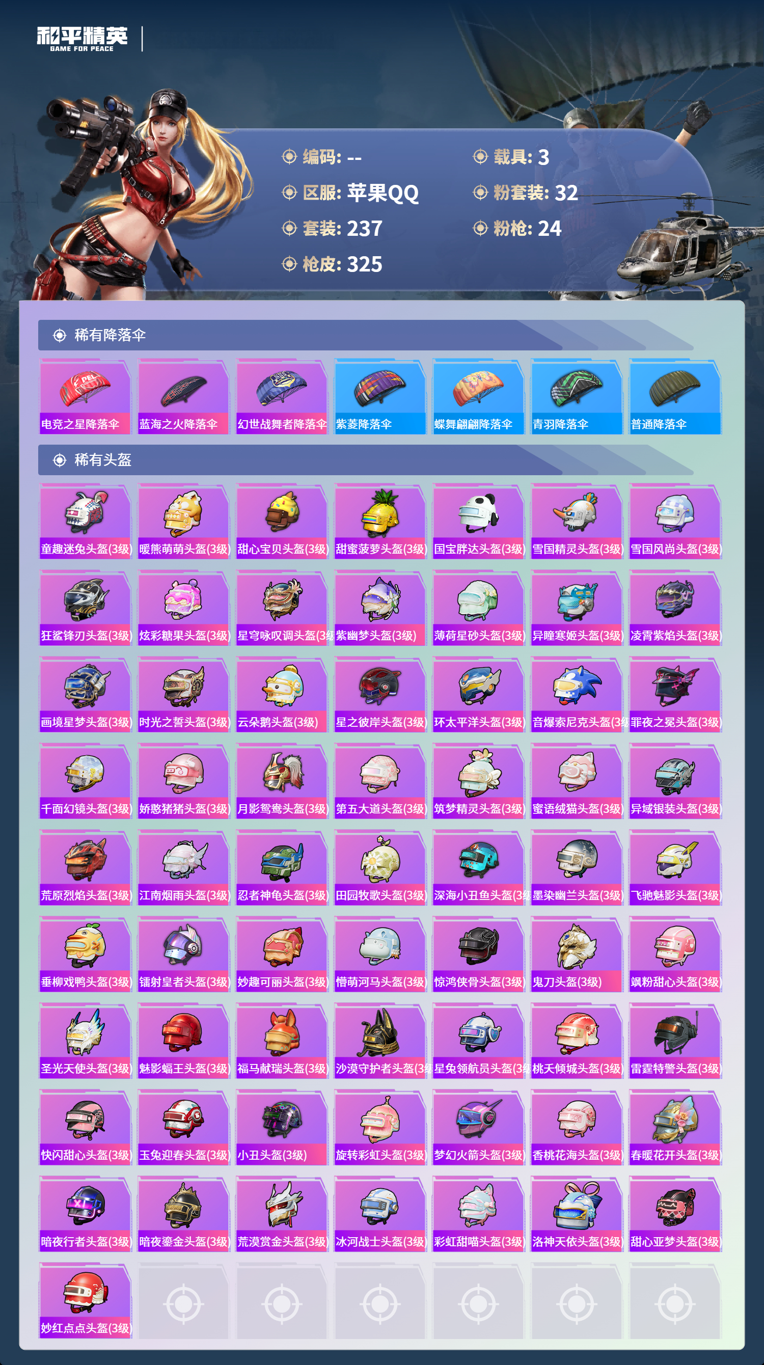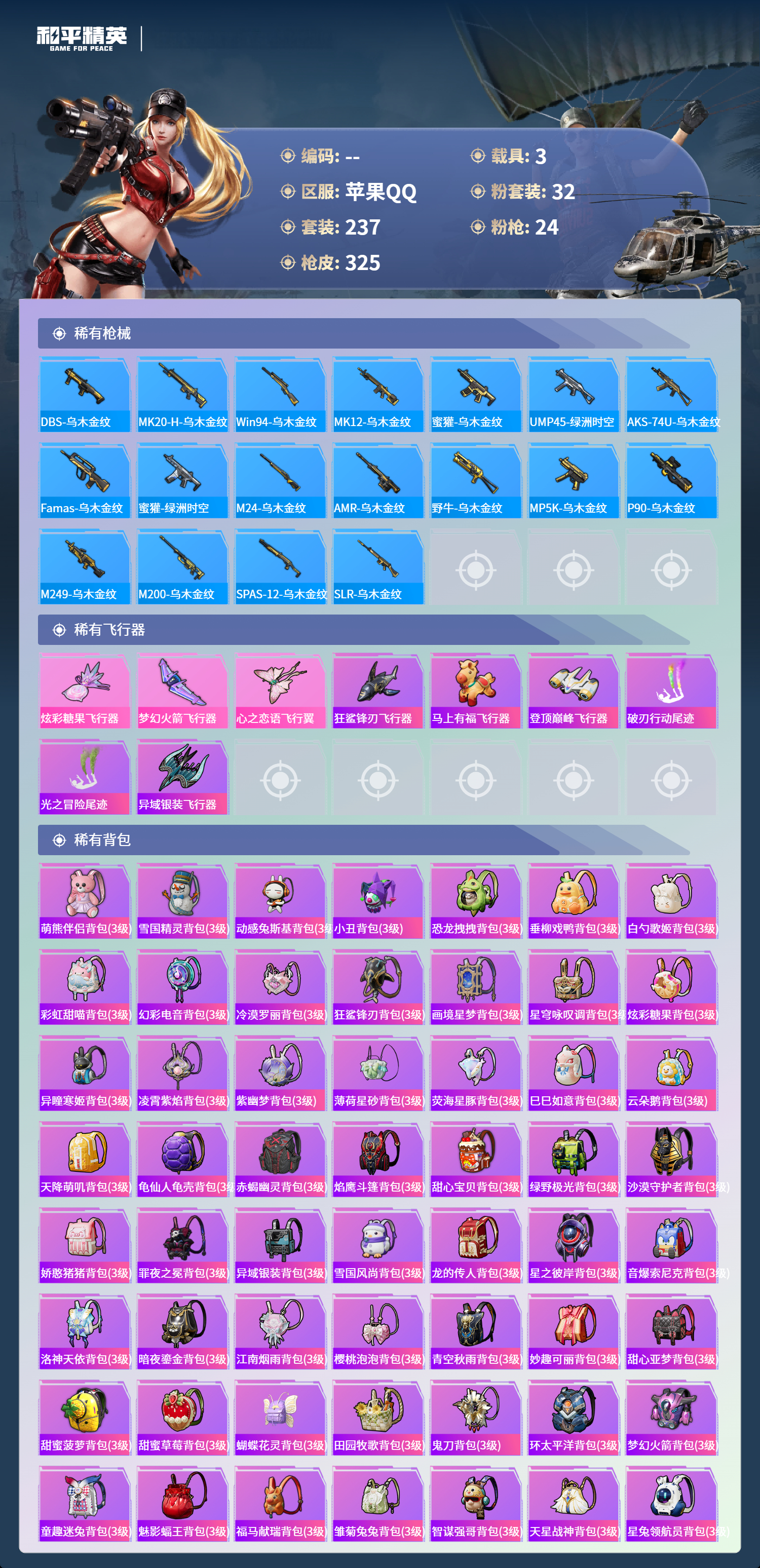 PX_2543124-苹果手Q-17王牌印记-32粉装-24特效枪-3载具-热力值-237套装-325枪皮-1卓越印记
