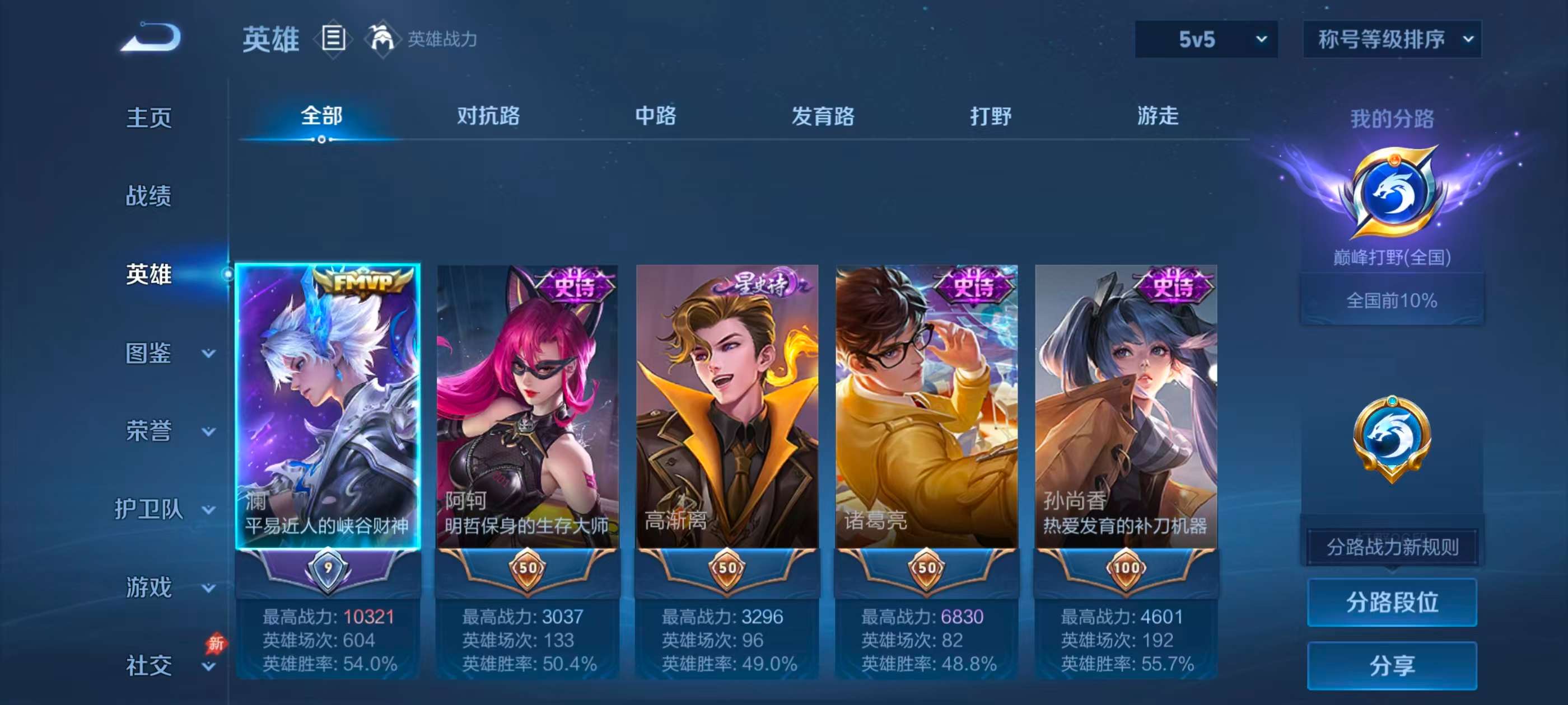 【9,稀有英雄】敖隐,嬴政,不知火舞,橘右京,夏洛特,娜可露露,韩信,艾琳,赵云,
