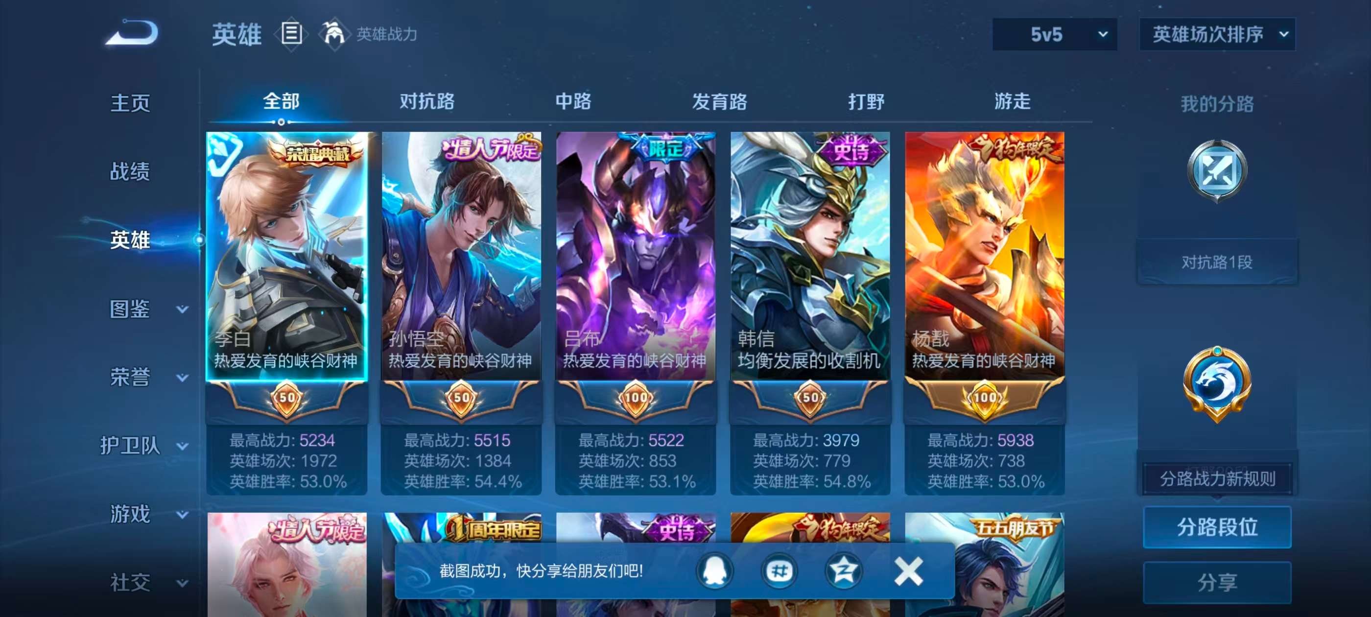【8,稀有英雄】嬴政,不知火舞,橘右京,夏洛特,娜可露露,韩信,艾琳,赵云,