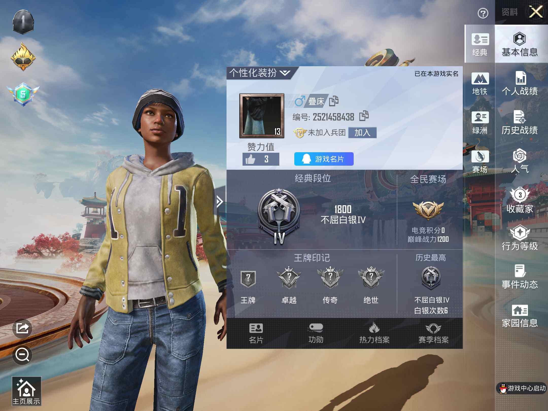 PX_2563489-Q-V6【和平双字极品ID叠床,无装备】-尊贵铂金IV段位-119英雄-136皮肤-2传说-31史诗