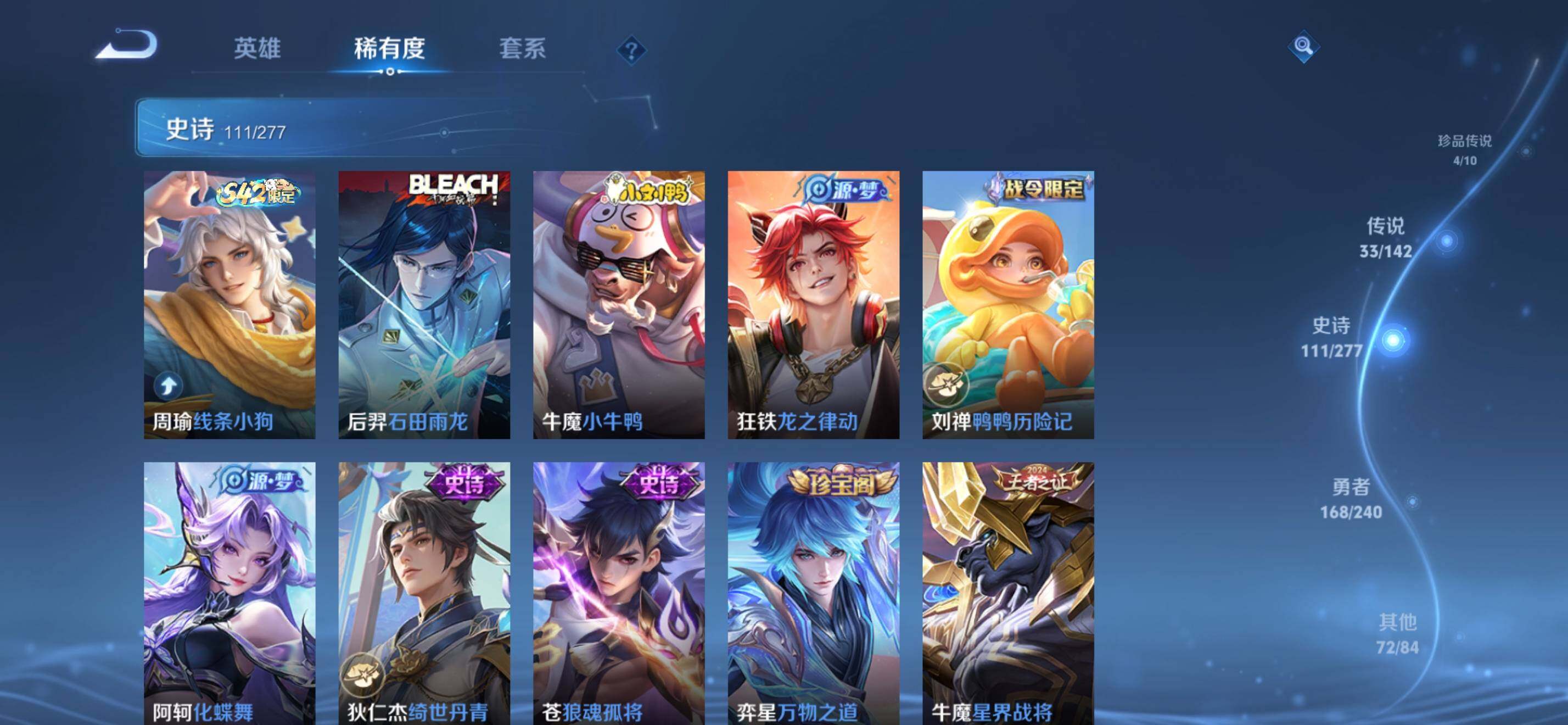 【英雄全皮】:马可波罗全皮,刘邦全皮,苍全皮,敖隐全皮,鲁班大师全皮,夏洛特全皮,司空震全皮,戈娅全皮