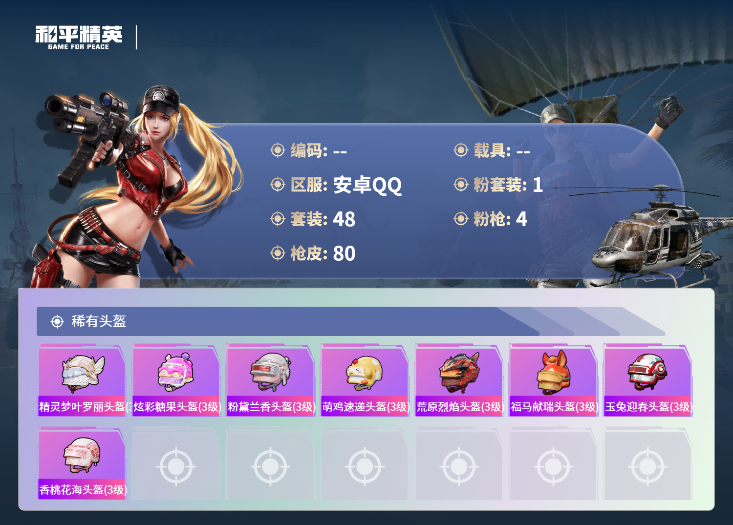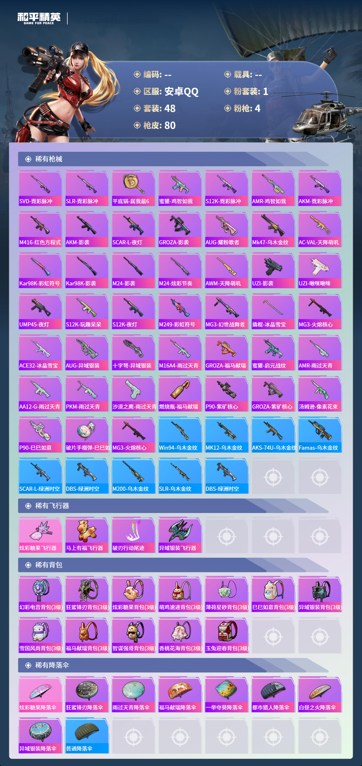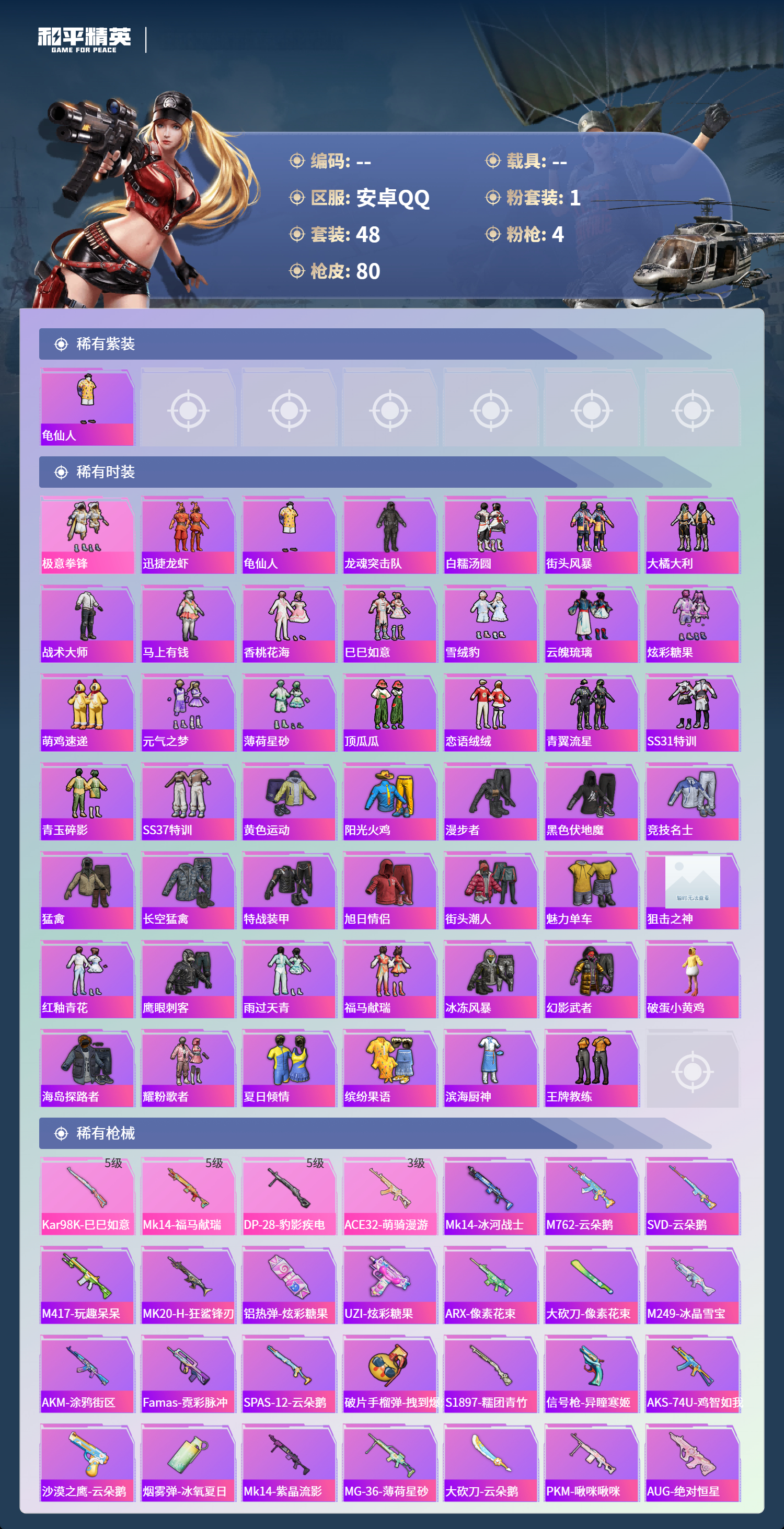 PX_2551234-安卓手Q-0王牌印记-1粉装-4特效枪-17466热力值-48套装-80枪皮