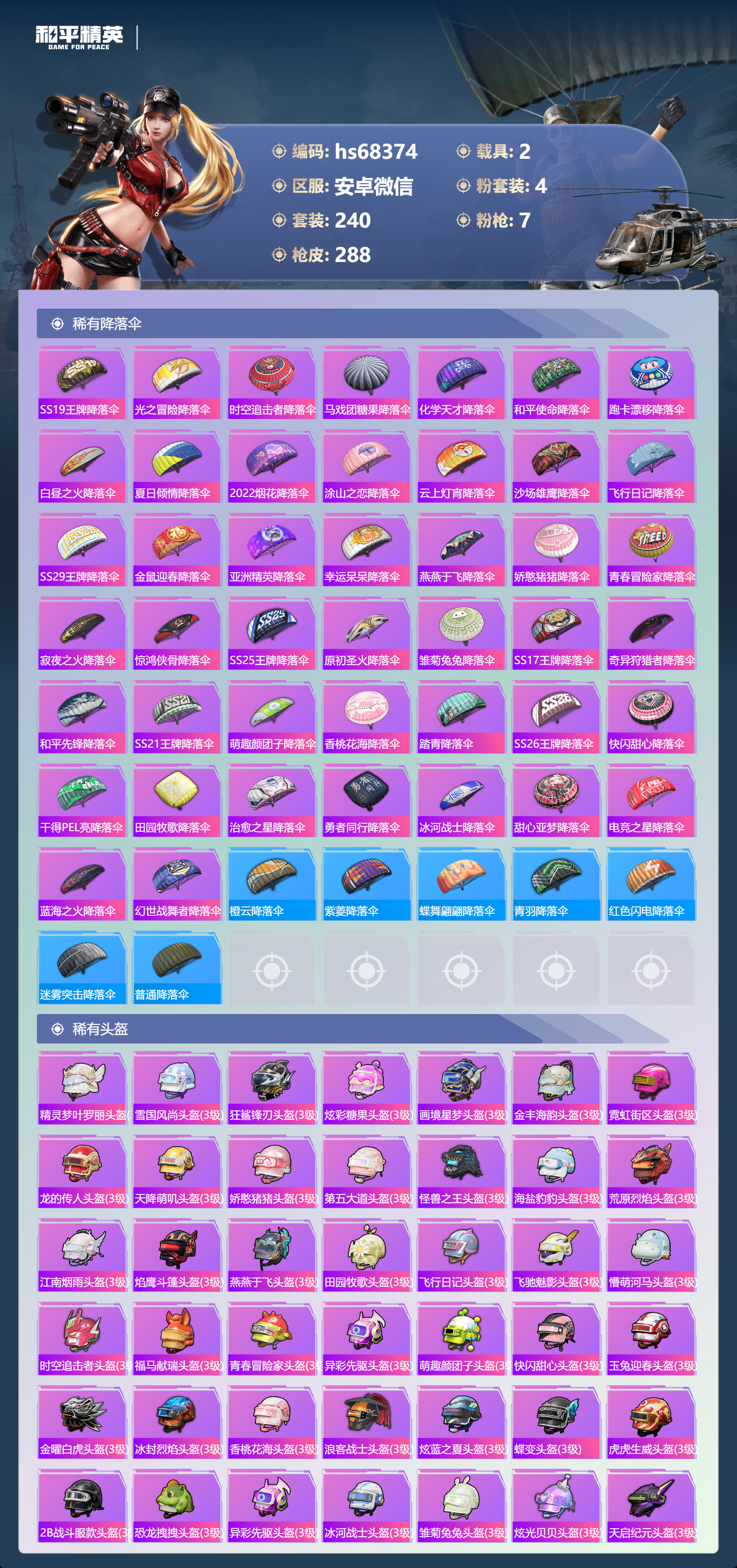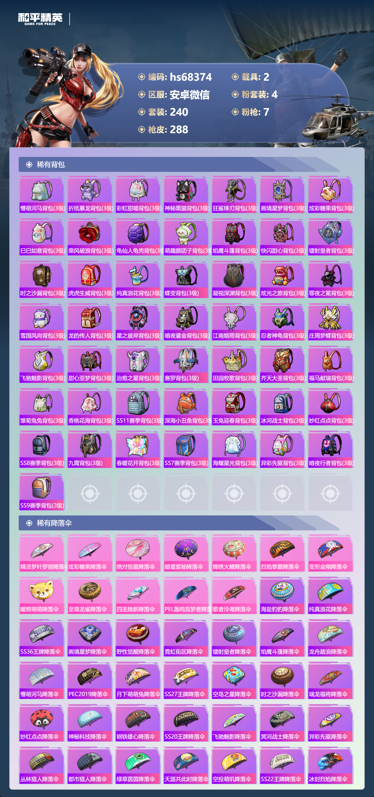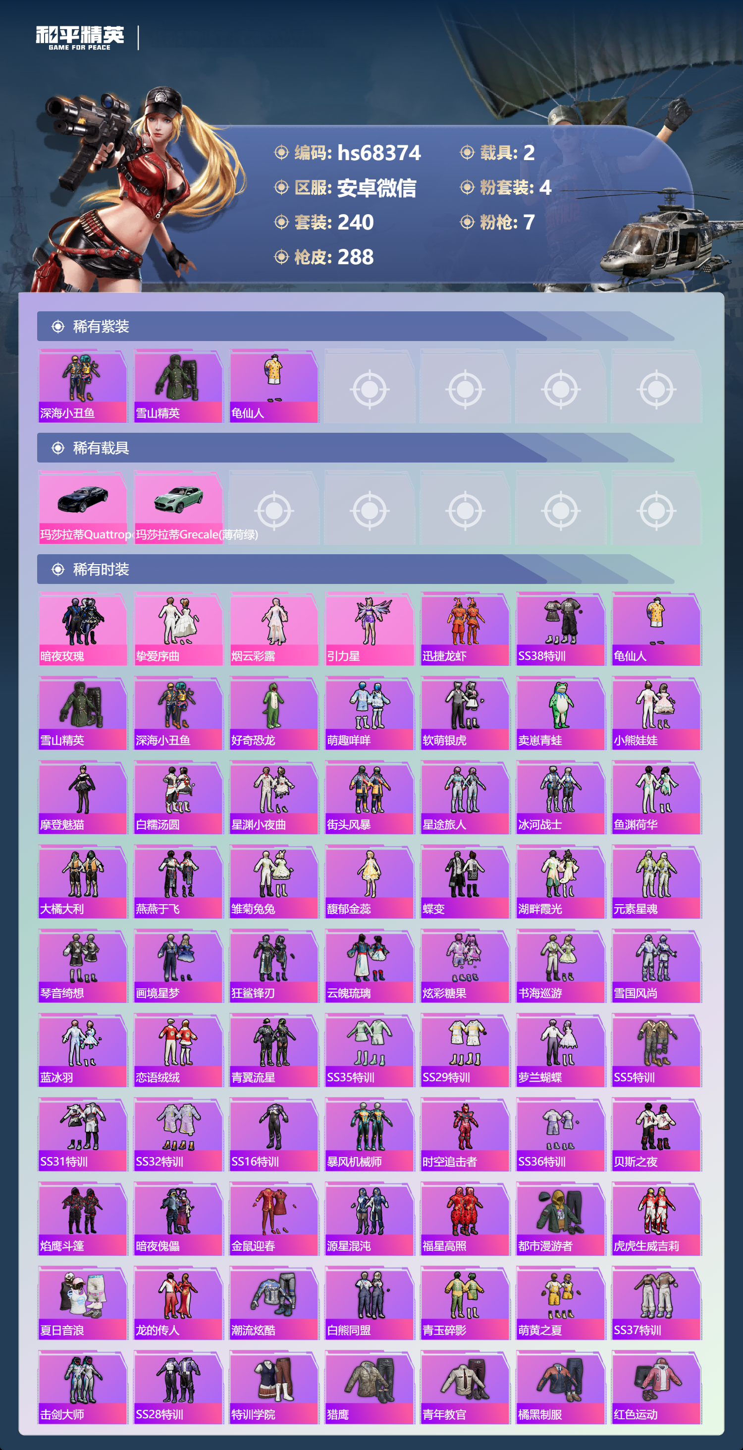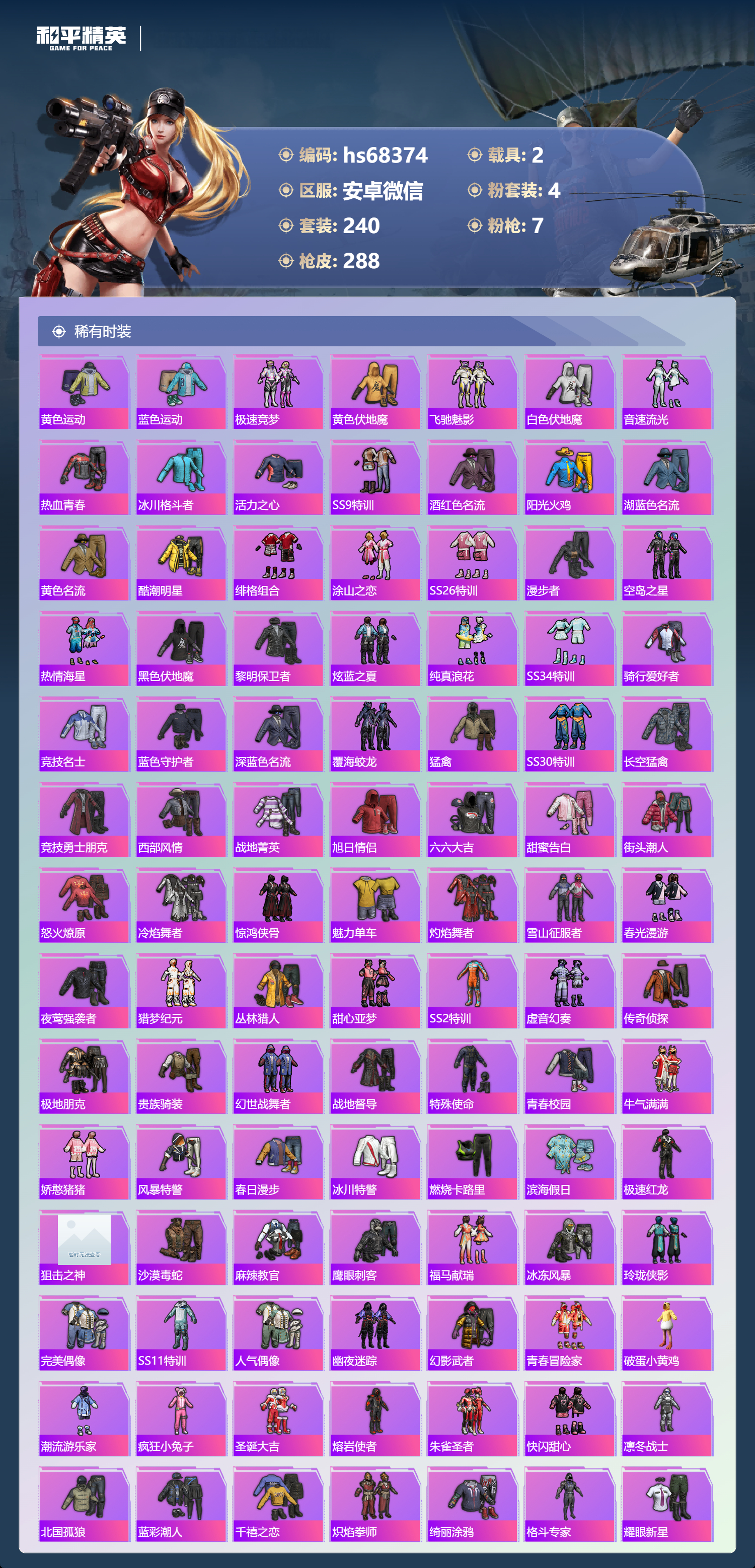 PX_2554269-,安卓微信-12王牌印记-4粉装-7特效枪-2载具-94081热力值-240套装-288枪皮-2卓越印记
