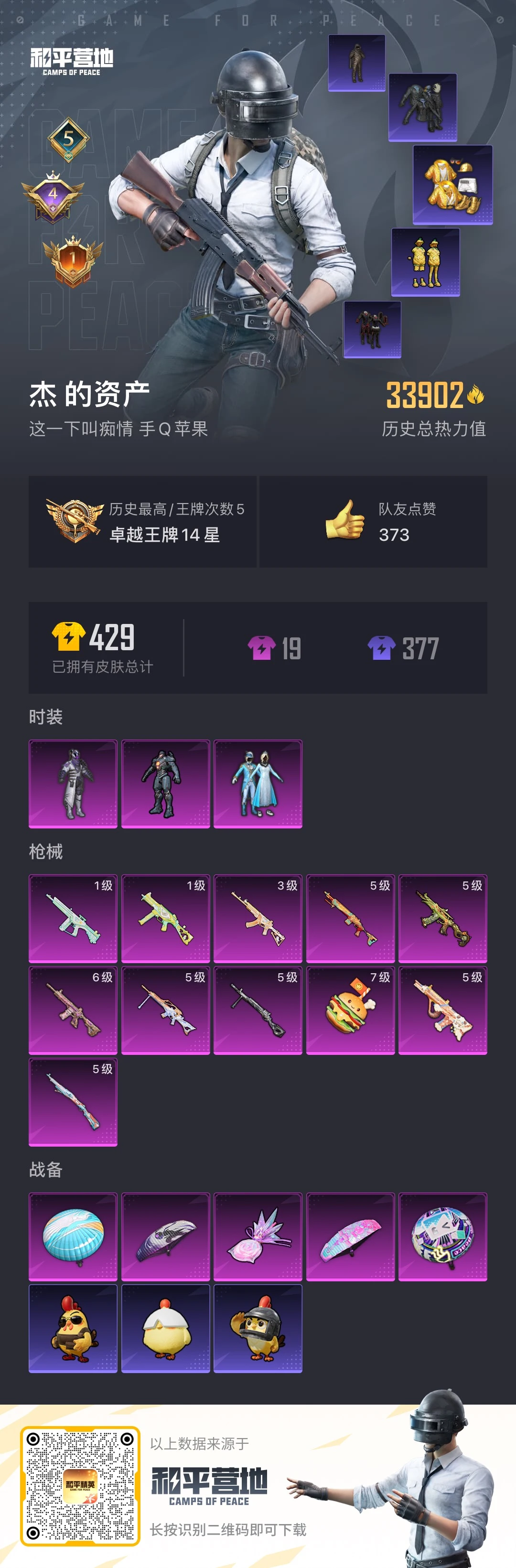 PX_2558281-,苹果手Q-5王牌印记-3粉装-11特效枪-33907热力值-72套装-122枪皮-4卓越印记-1传奇印记