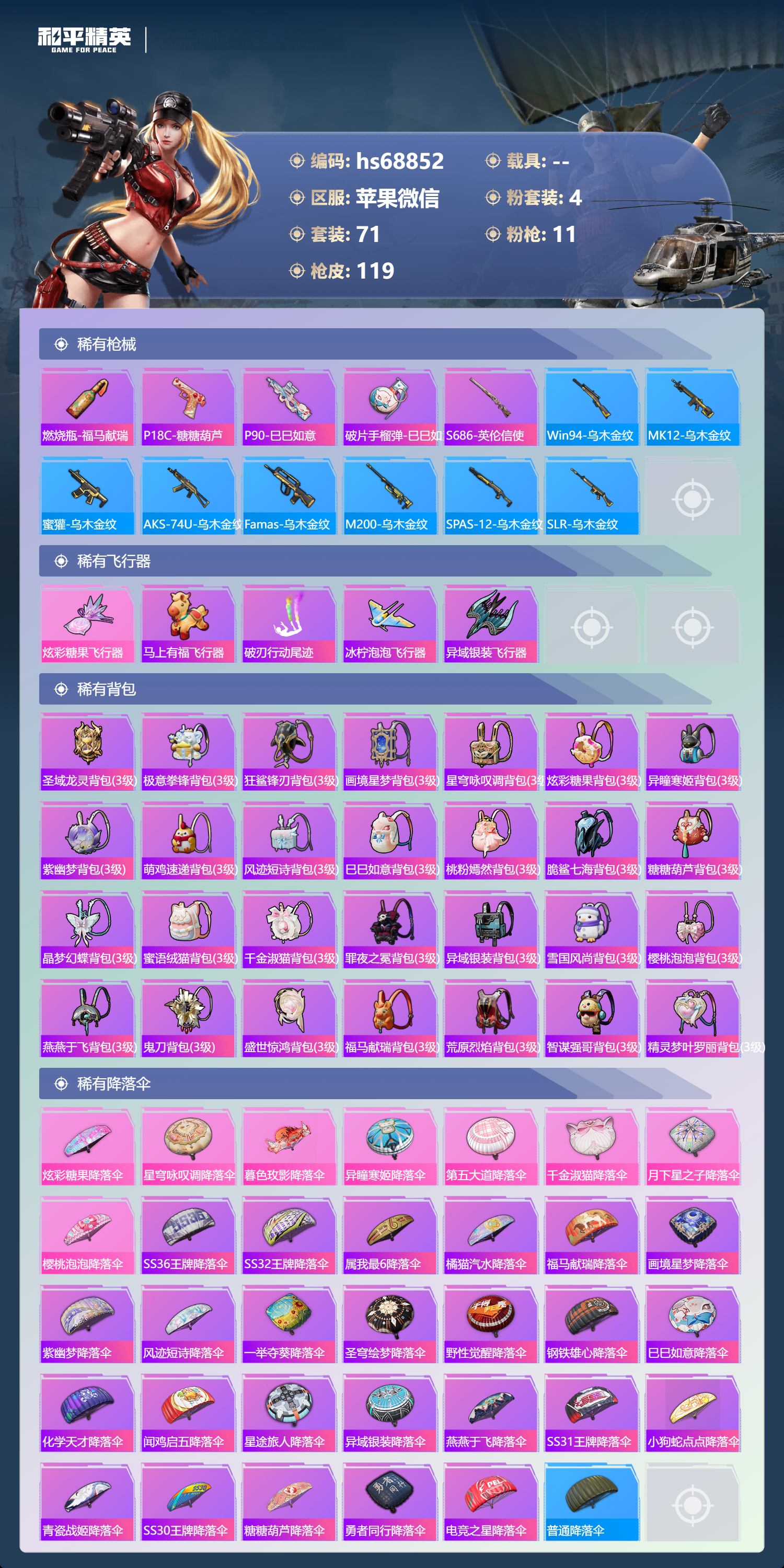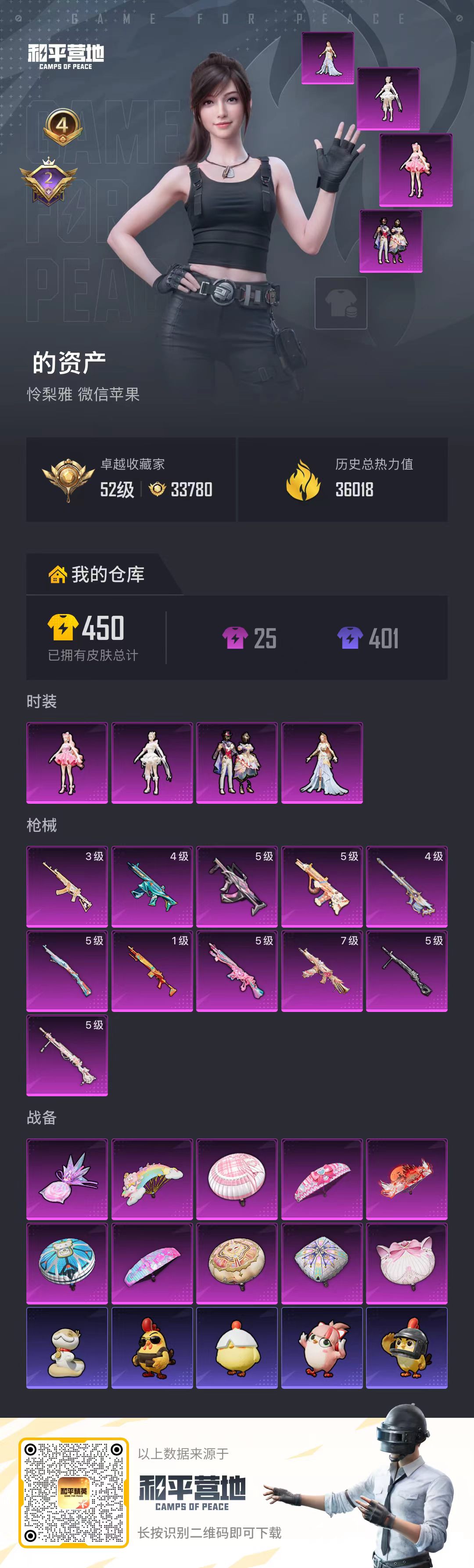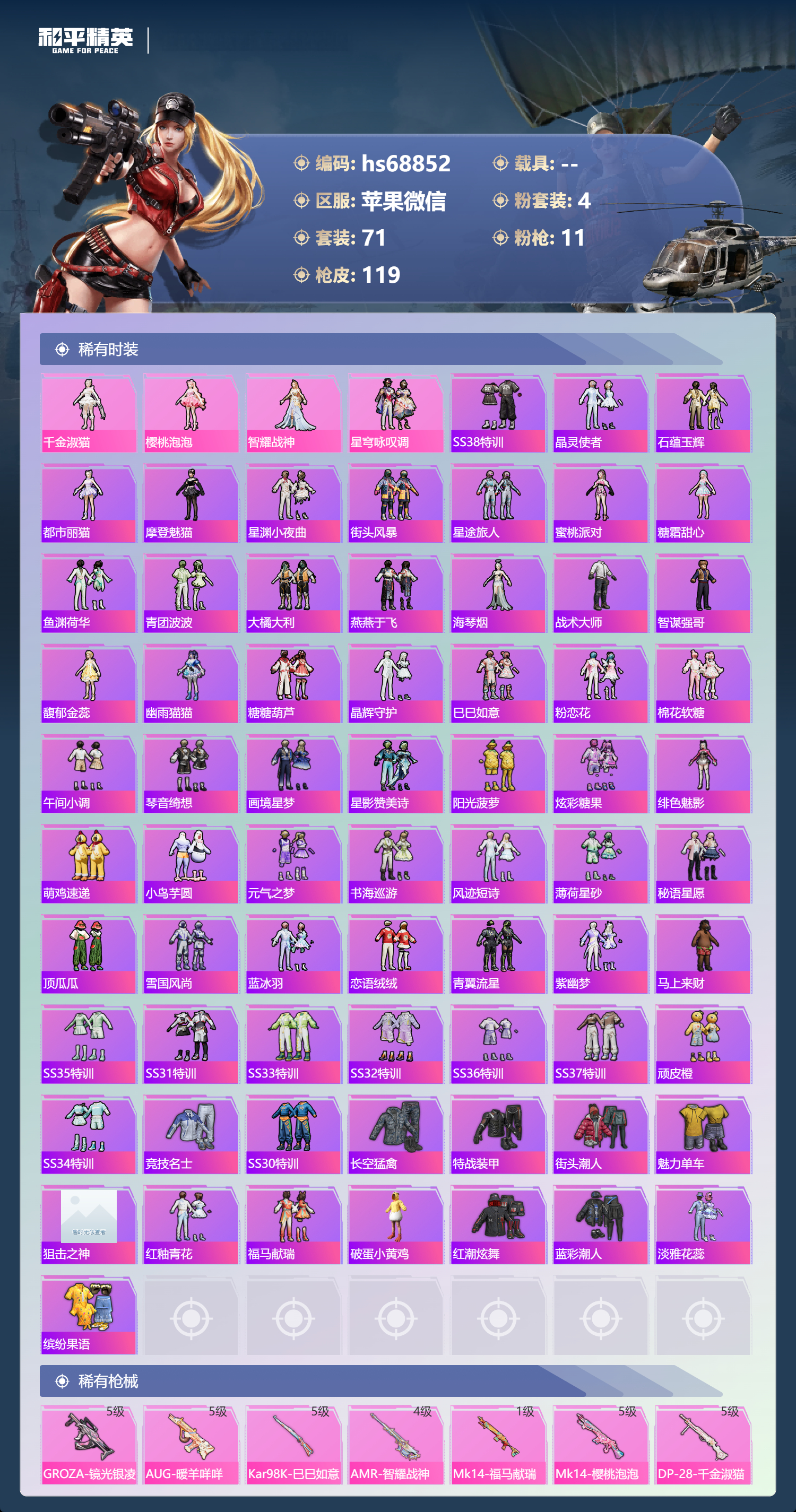 PX_2551779-,苹果微信-4王牌印记-4粉装-11特效枪-36018热力值-71套装-119枪皮-2卓越印记