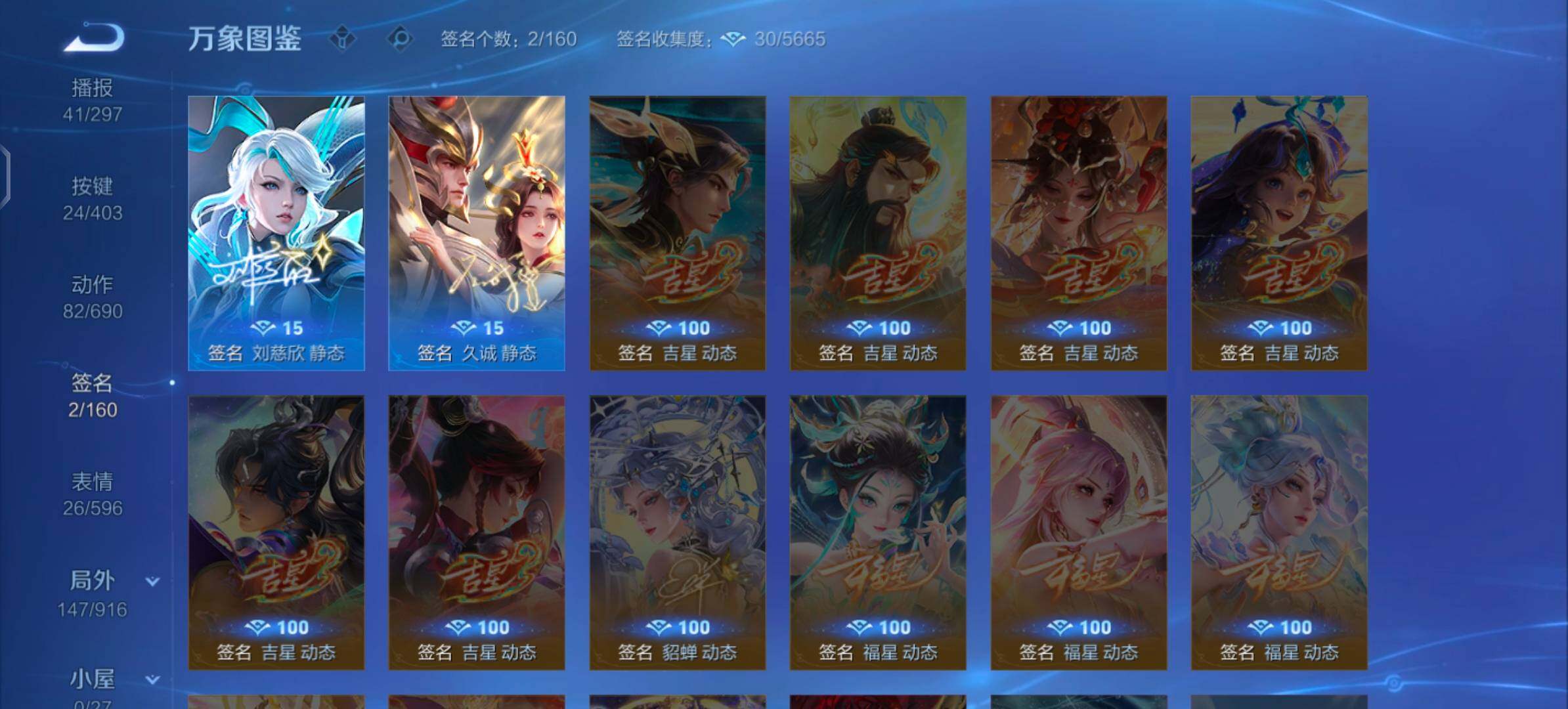 【战令限定】:典韦蓝屏警告,马可波罗暗影游猎,亚瑟潮玩骑士王,米莱狄胡桃异想国,暃星界游侠,嫦娥暖冬兔眠,扁鹊奇幻香踪,杨戬潮玩骑兵,戈娅驭风魔法,西施玲珑珍味,司空震地狱燃心,艾琳流音漫舞,高渐离燃音魔法,妲己灵卜魔法,鲁班七号蔬乡物语,李元芳蔬乡物语,镜青焰无极,项羽苍威无极,蔡文姬夏日便利店,虞姬夏日便利店,亚连破空之剑,廉颇撼地雄心,孙悟空神迹守卫,孙膑茶境仙,马超访茗客,周瑜百相守梦,孙策百相守梦,莱西奥光弋星穹,明世隐往忆晖光,周瑜线条小狗