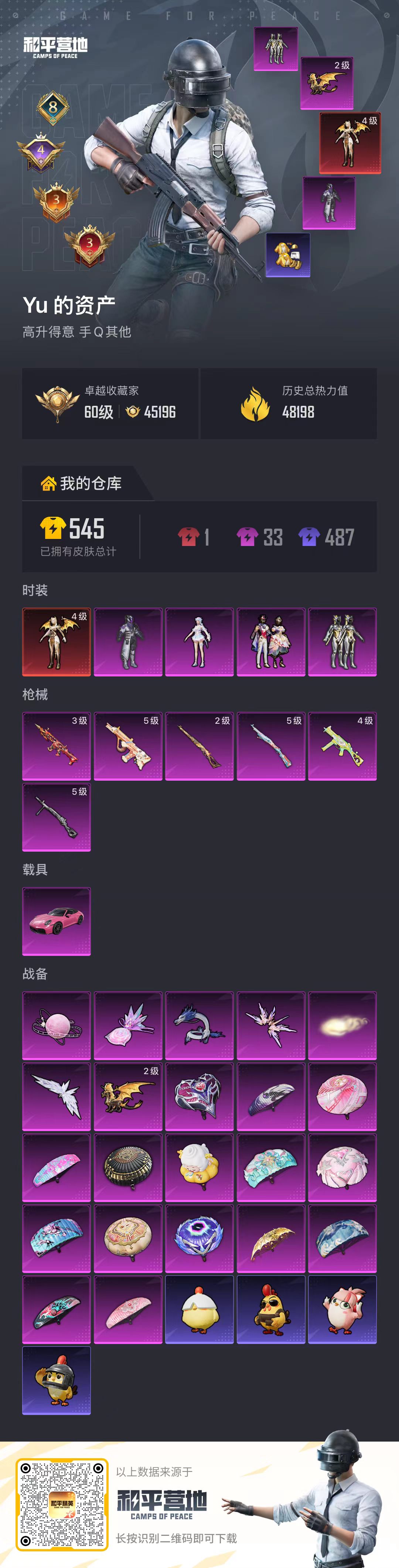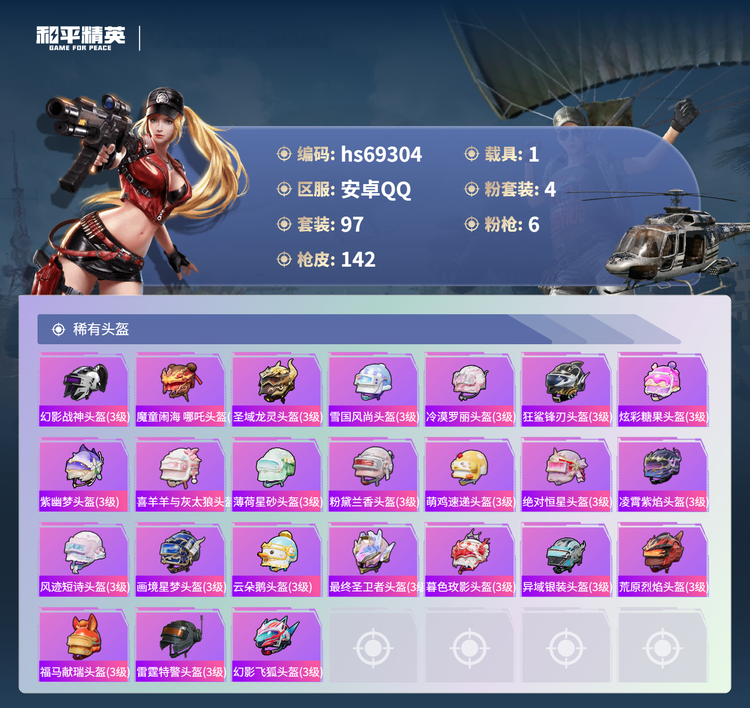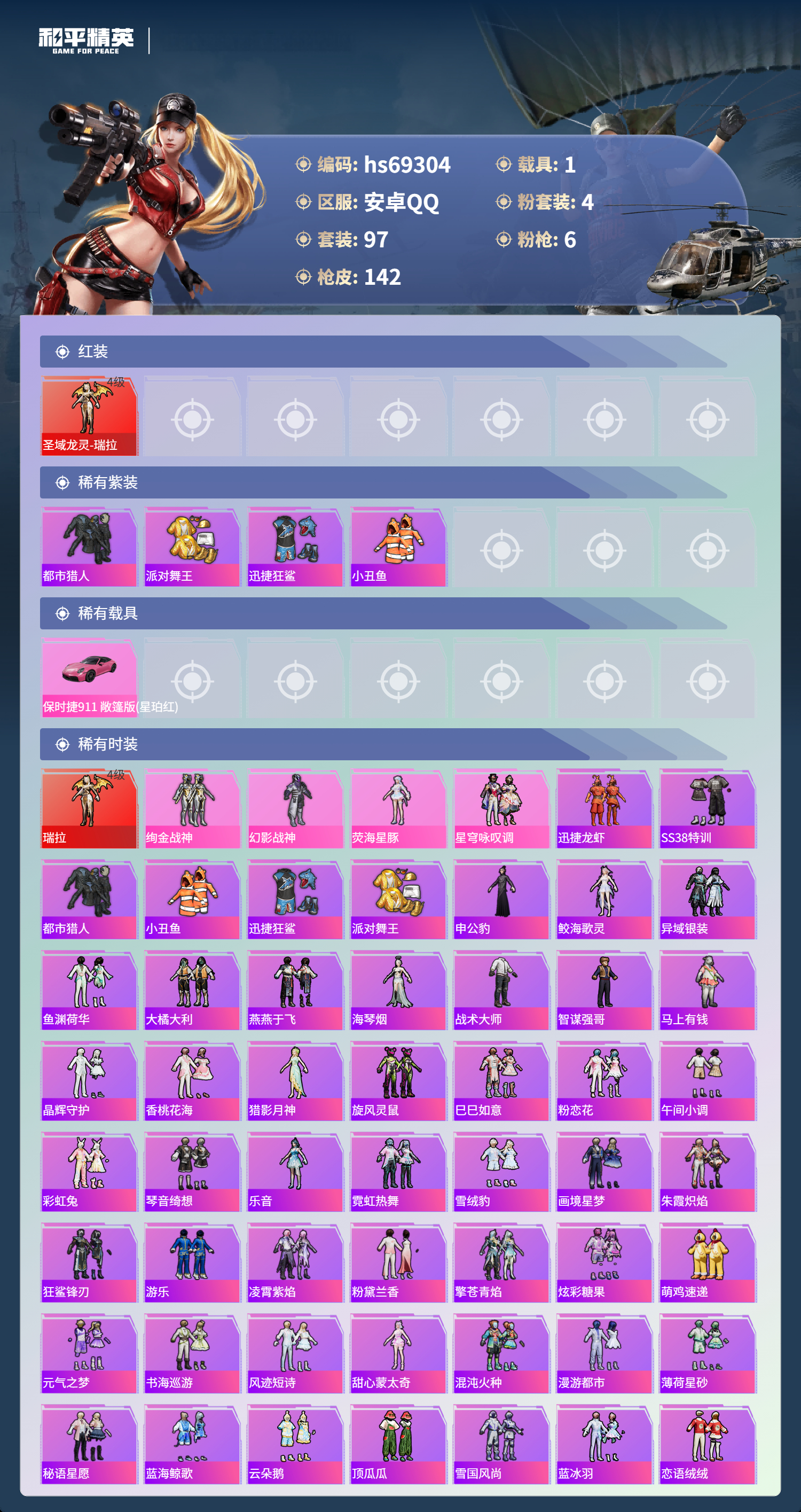 PX_2563886-,安卓手Q-8王牌印记-有战神框-1红装-4粉装-6特效枪-1载具-48198热力值-97套装-142枪皮-4卓越印记-3传奇印记