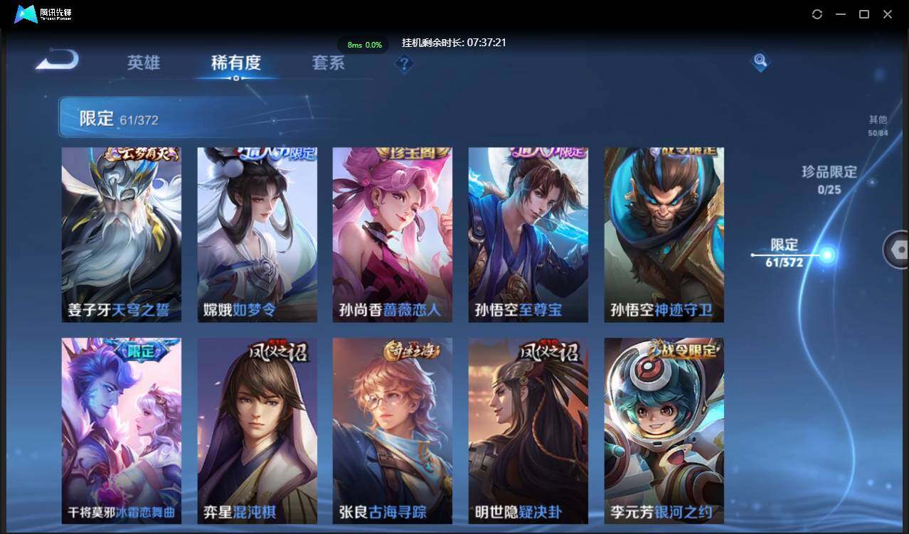W10005,【安卓QQ】,V8,英雄84,皮肤93,典藏:全息碎影,凤求凰,(