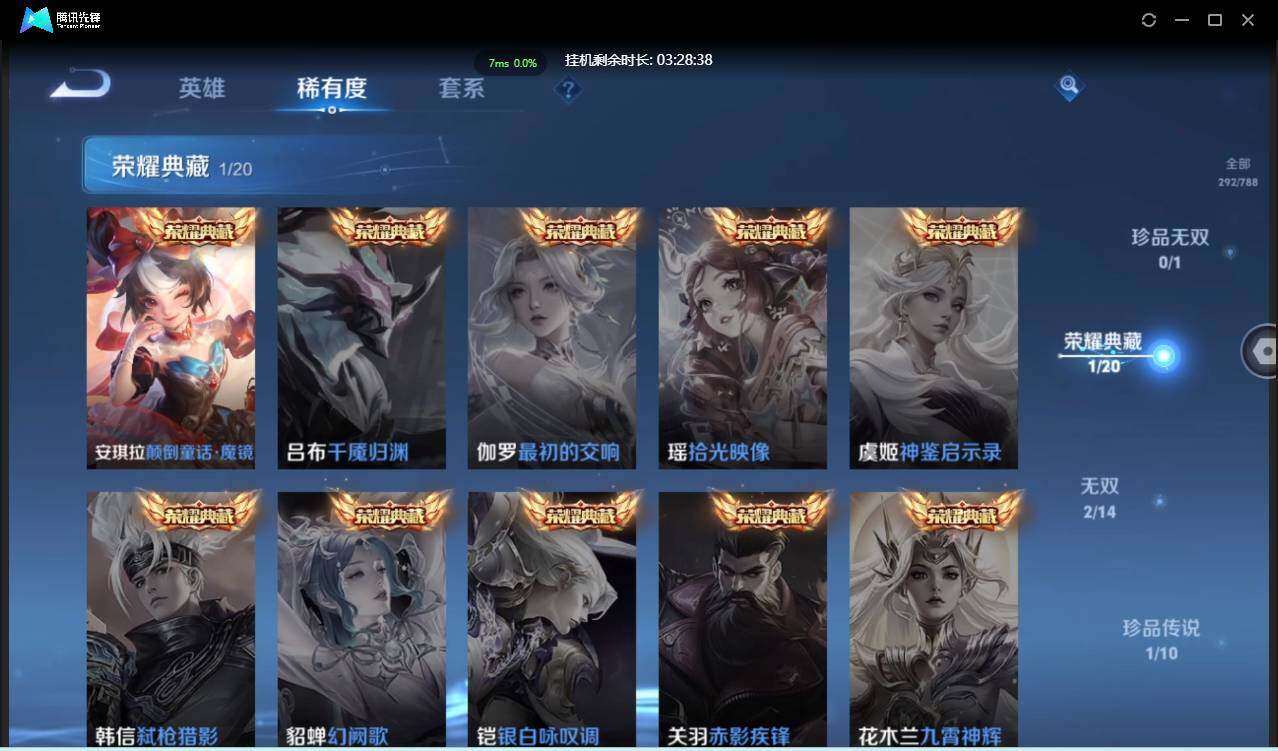 PX_2555959-【W6703】【亮点:7.6K场次质量精品号-怪盗基德天幕-江户川柯南天幕】安卓Q-可二次-贵8-129英雄-292皮肤-1典藏-1星元-2无双-1珍品传说-15传说-88限定-2天幕-4按键-贵族积分56313-营地ID:1708618365(热门:安琪拉颠倒童话魔镜-公孙离离恨烟,韩信群星魔术团-马可波罗怪盗基德-朵莉亚神骥鸣幻洲-澜逐花归海)