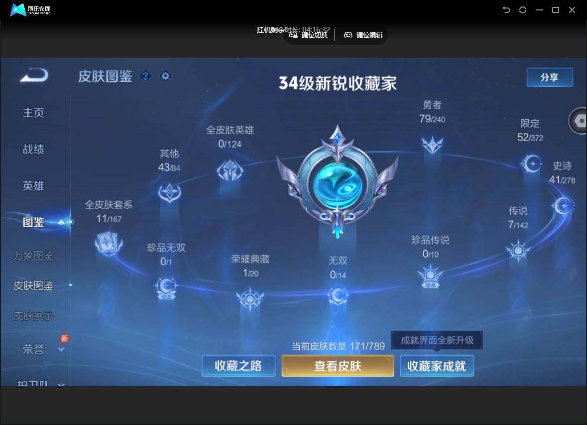 W10022【安卓区V8】可二次实名,英雄104,皮肤161,典藏:李白鸣剑.曳