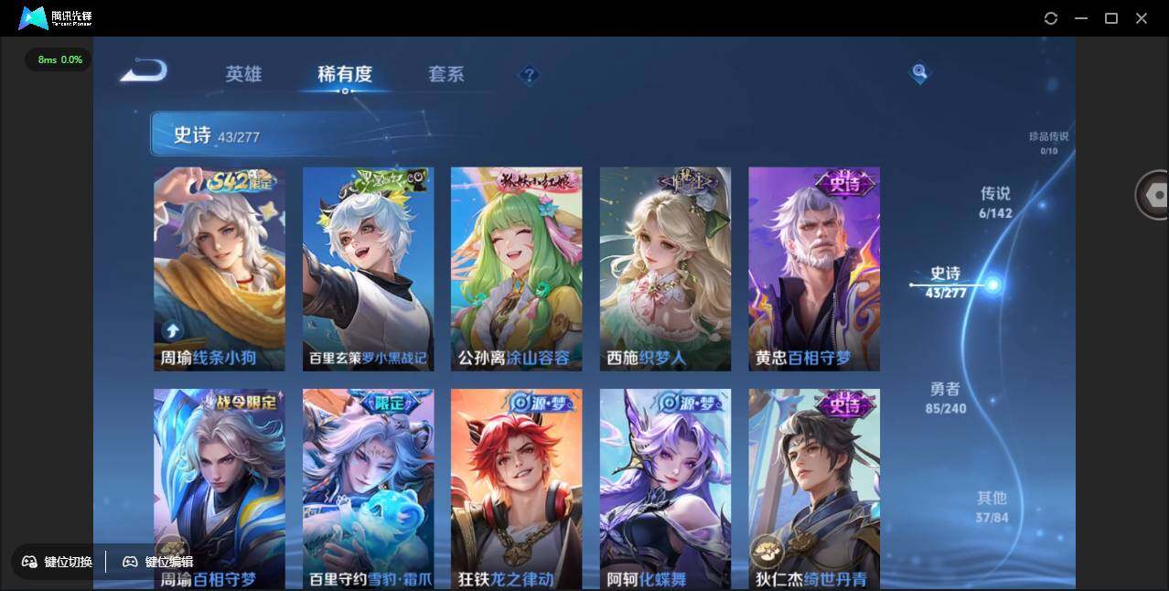 W10005,【安卓QQ】,V8,英雄84,皮肤93,典藏:全息碎影,凤求凰,(