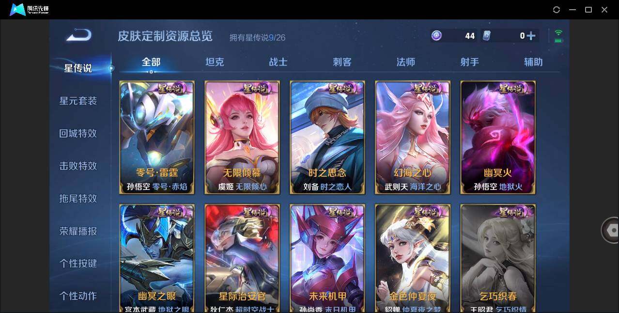 【星元皮肤】:孙悟空零号雷霆,虞姬无限倾慕,刘备时之思念,武则天幻海之心,孙悟空幽冥火,宫本武藏幽冥之眼,狄仁杰星际治安官,孙尚香未来机甲,貂蝉金色仲夏夜